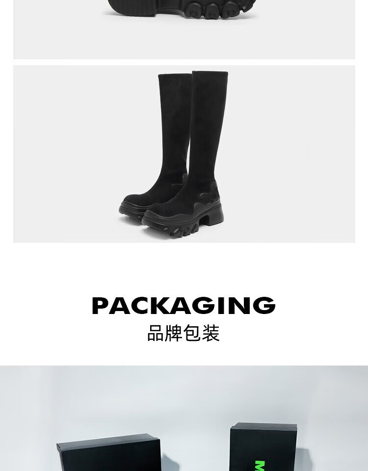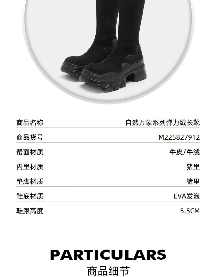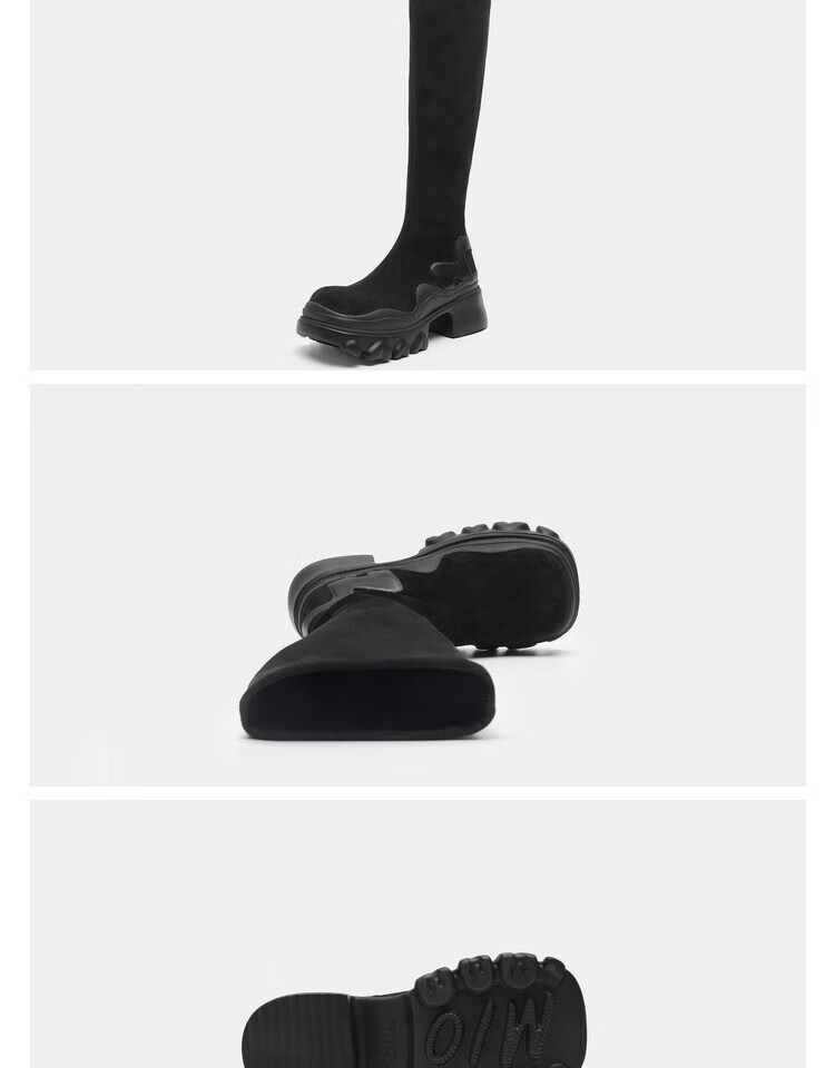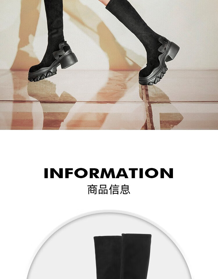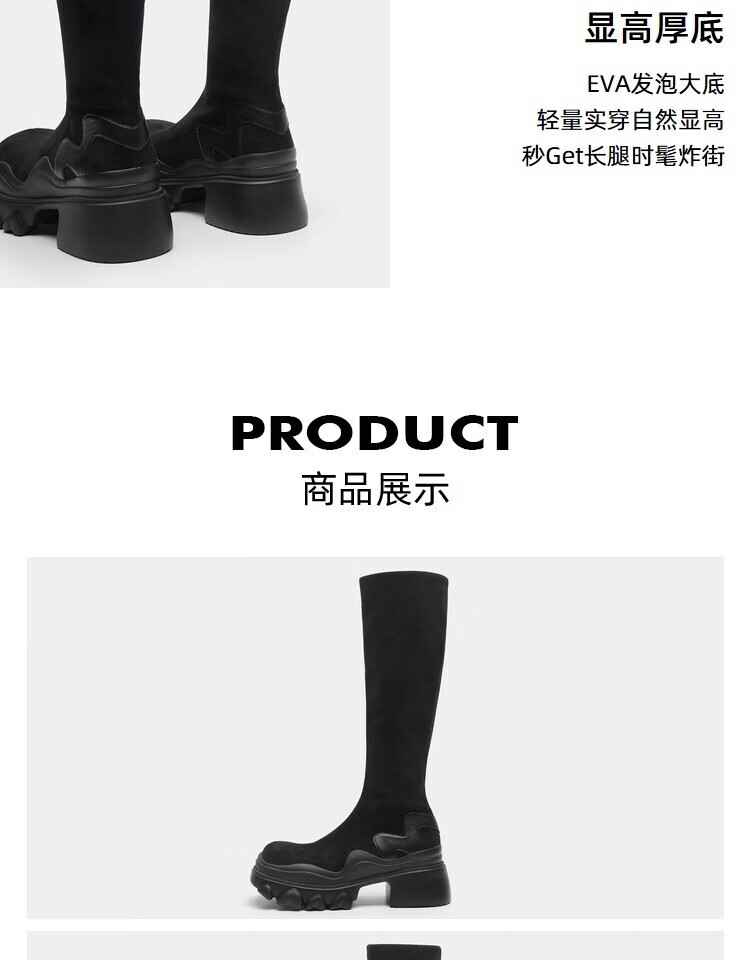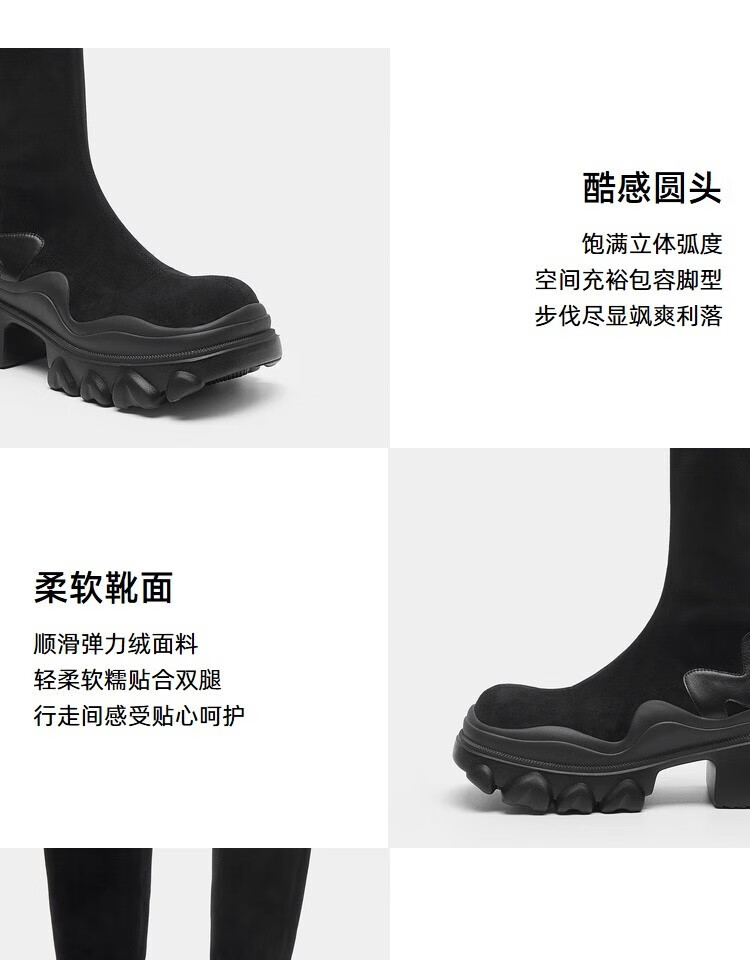 MIO【清仓】白鹿同款米奥冬长筒靴子女靴显瘦高筒靴绒面弹力骑士靴 黑色 34