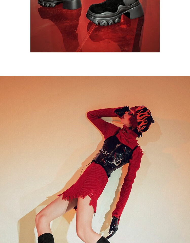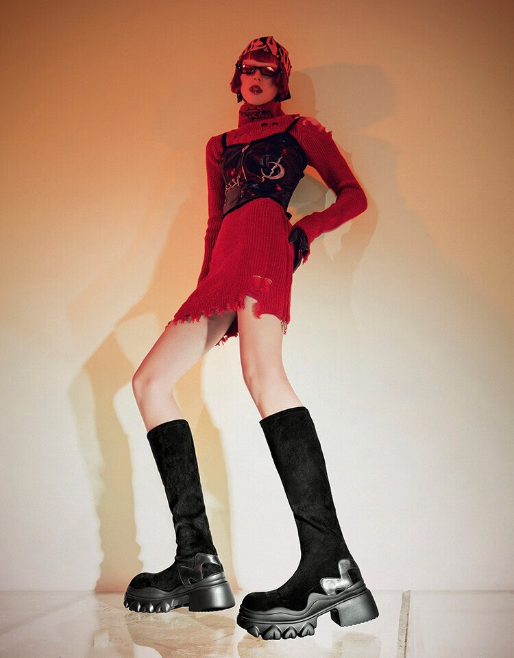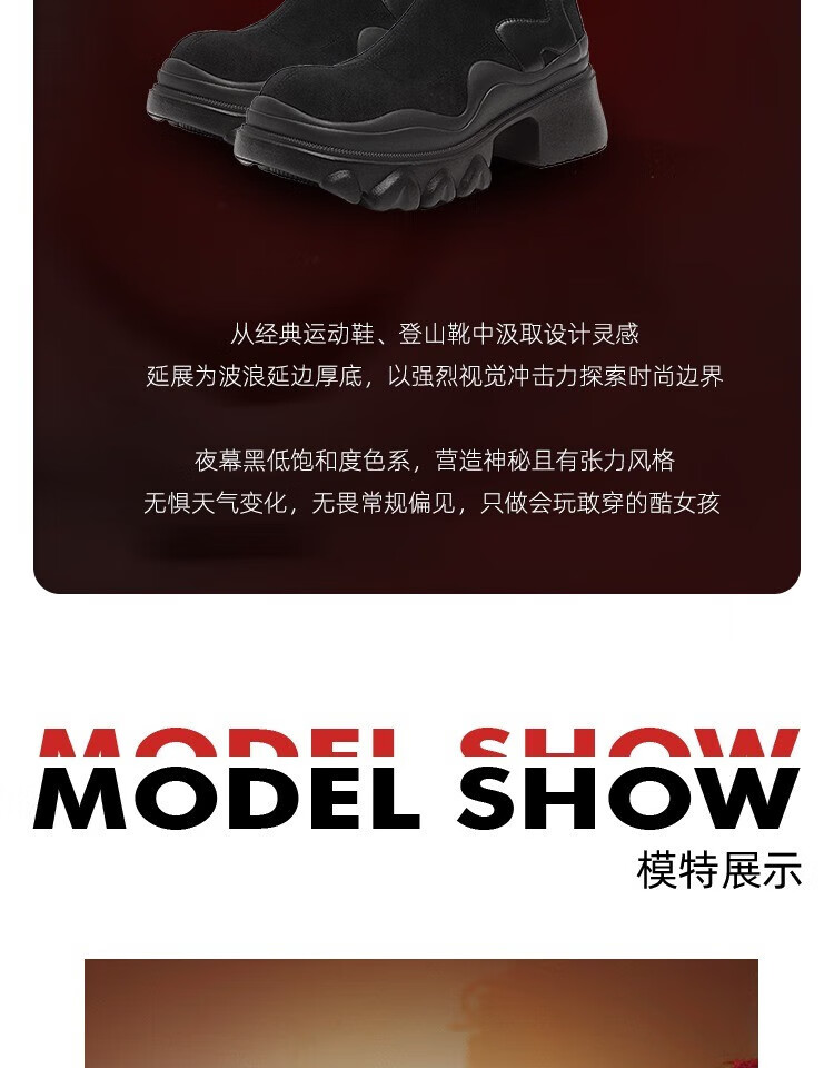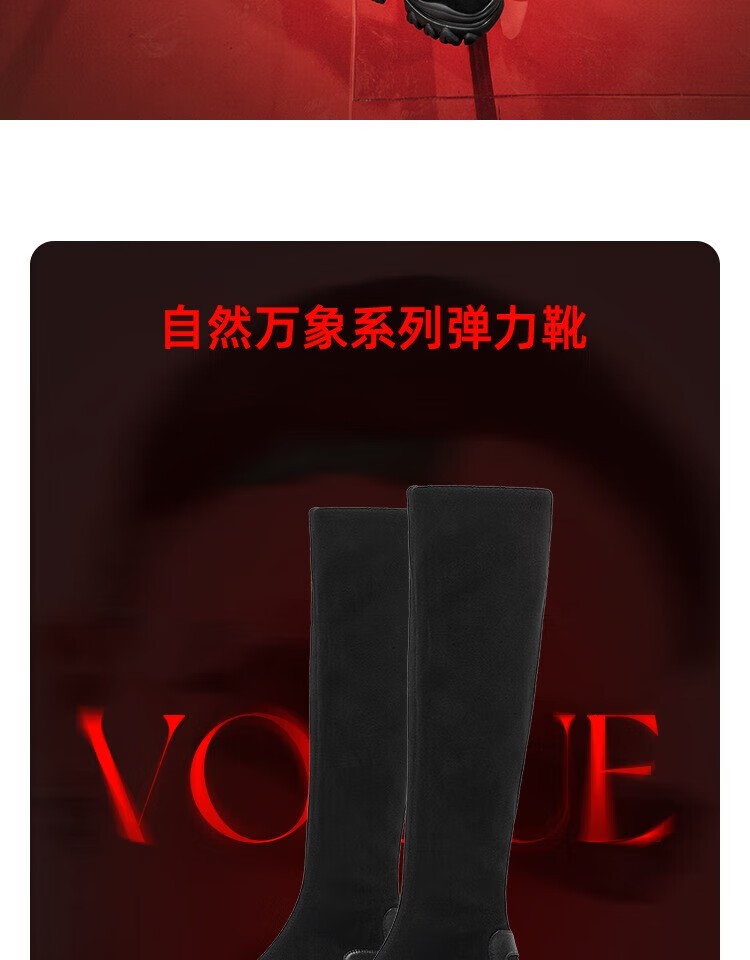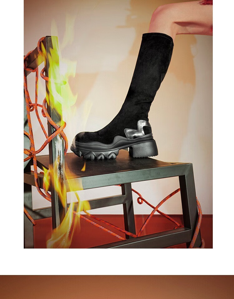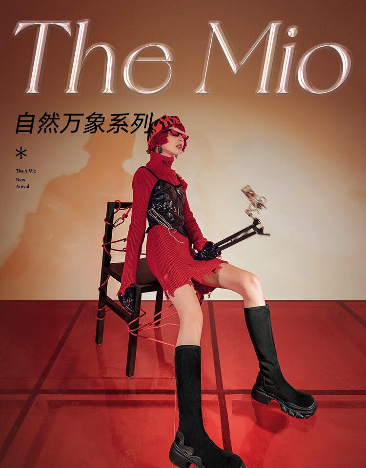 MIO【清仓】白鹿同款米奥冬长筒靴子女靴显瘦高筒靴绒面弹力骑士靴 黑色 34