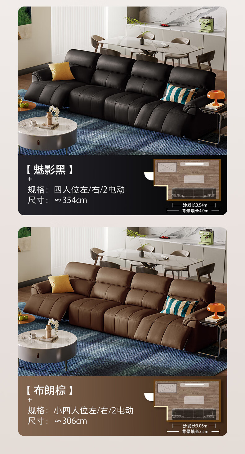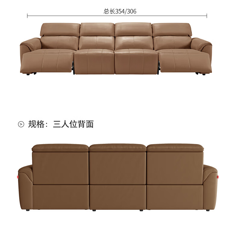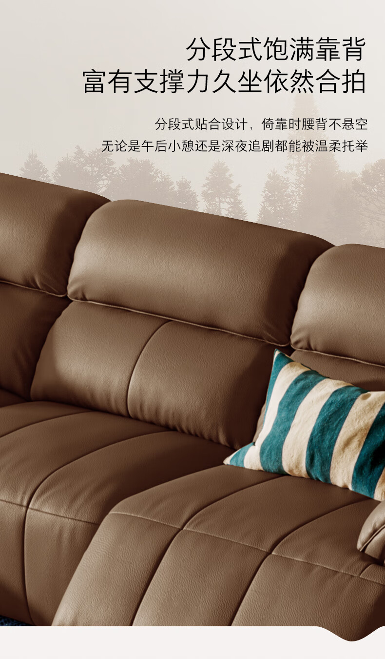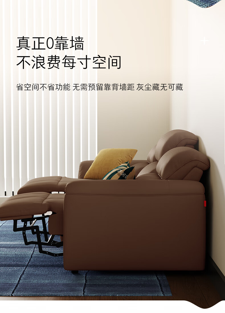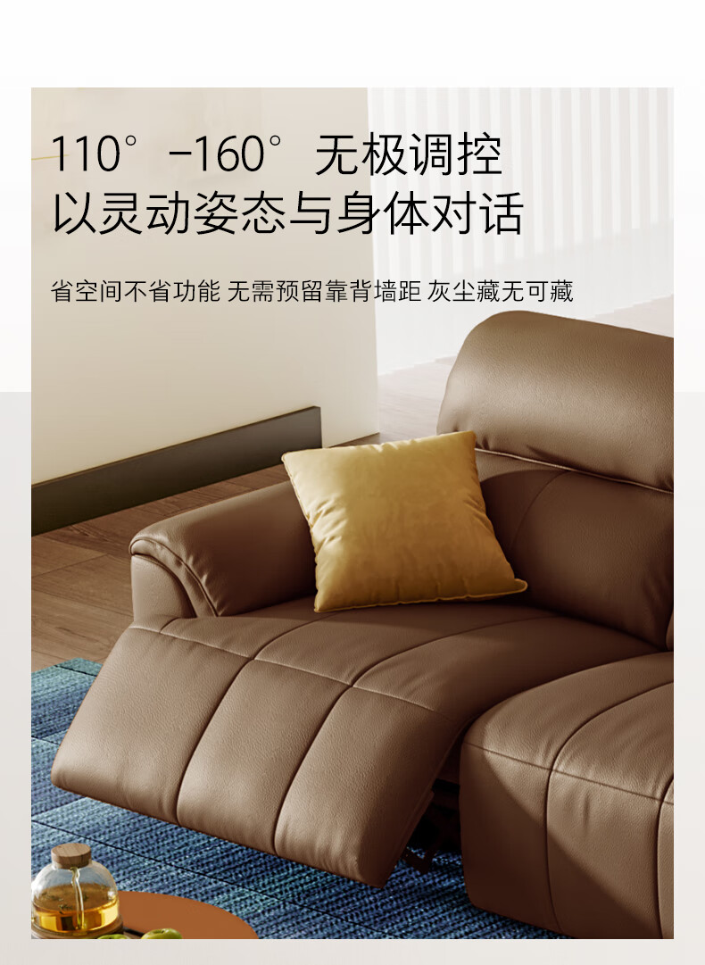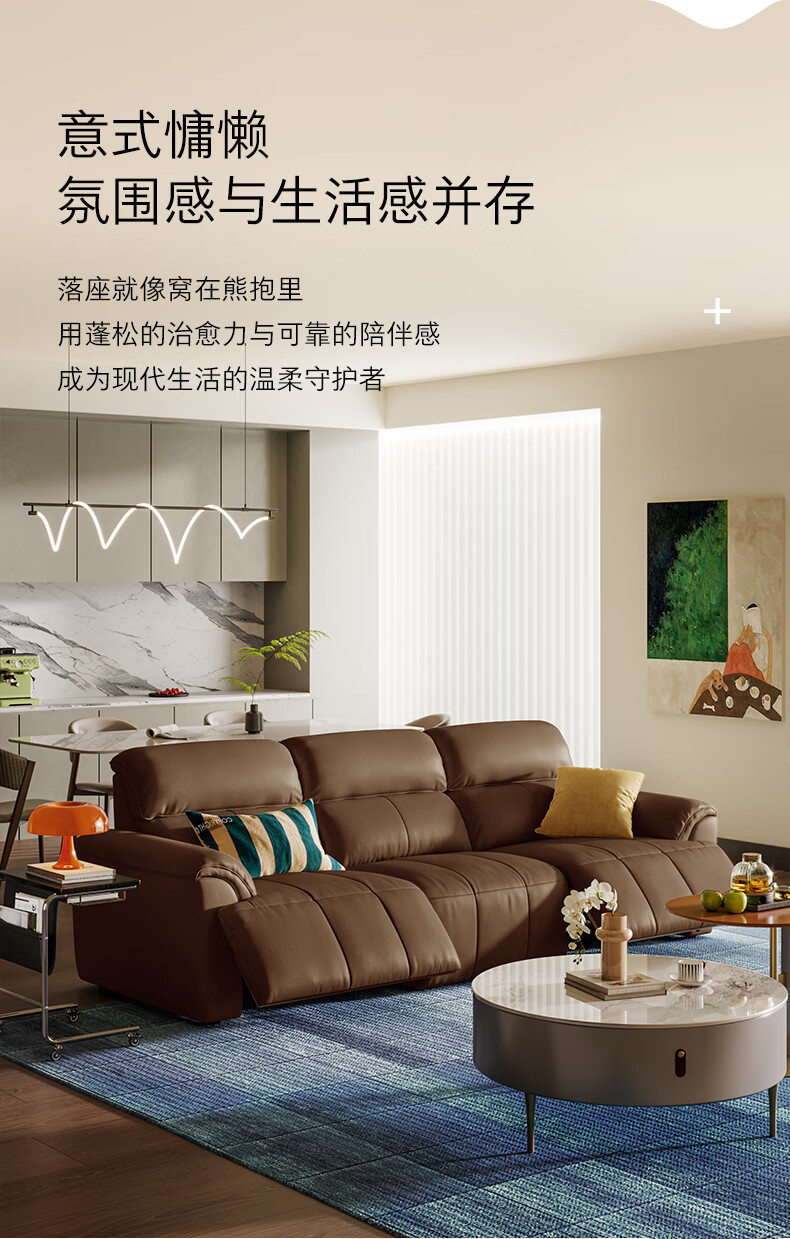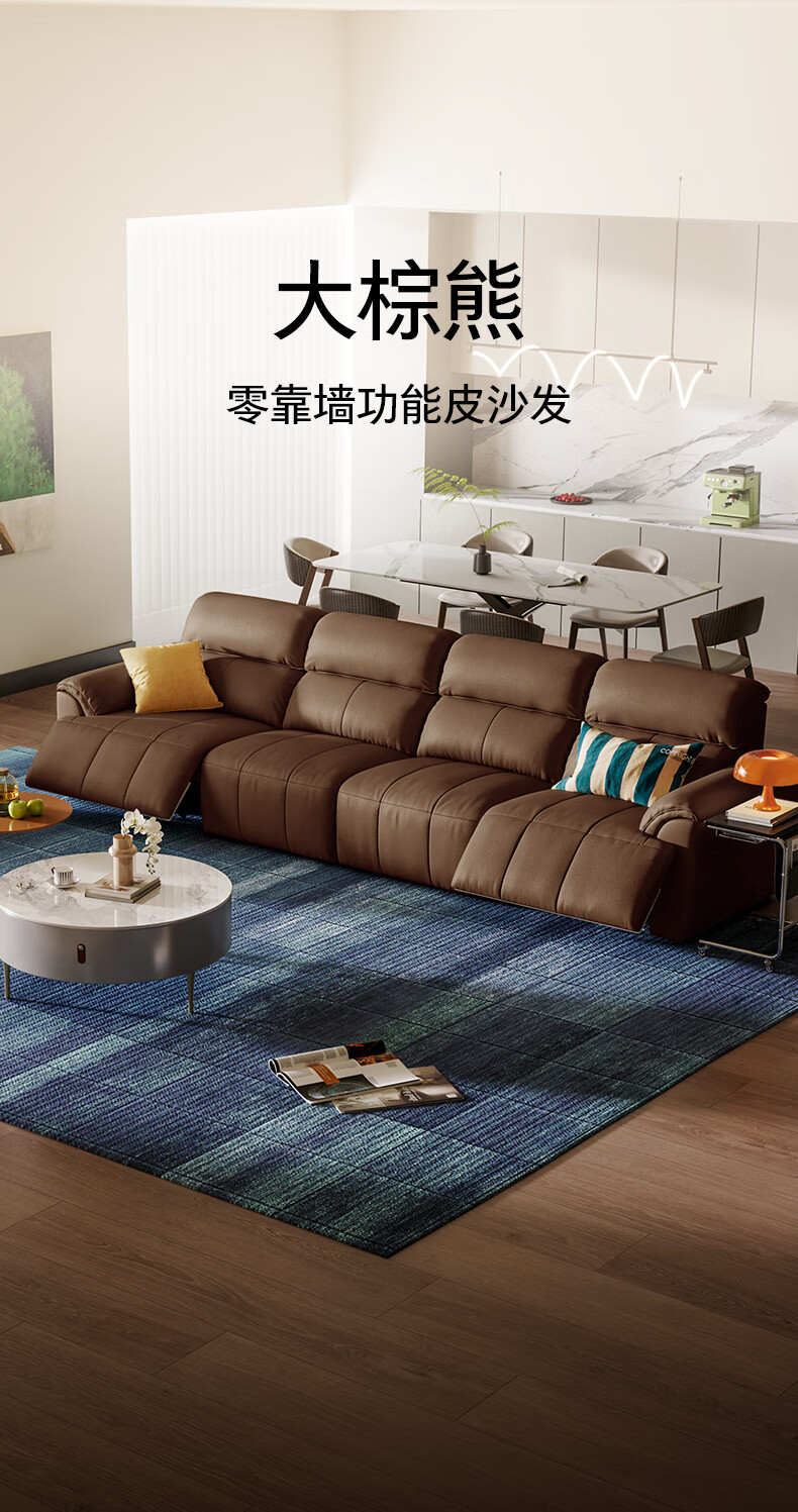 顾家家居(KUKA)意式轻奢风头层牛皮大棕熊零靠墙功能沙发客厅搭配沙发 布朗棕四人位2电动3.54M