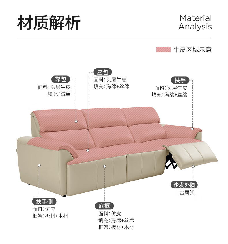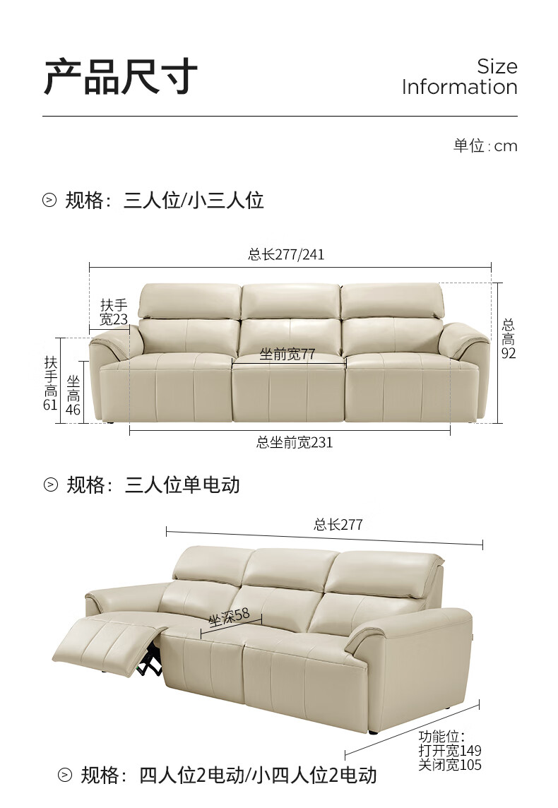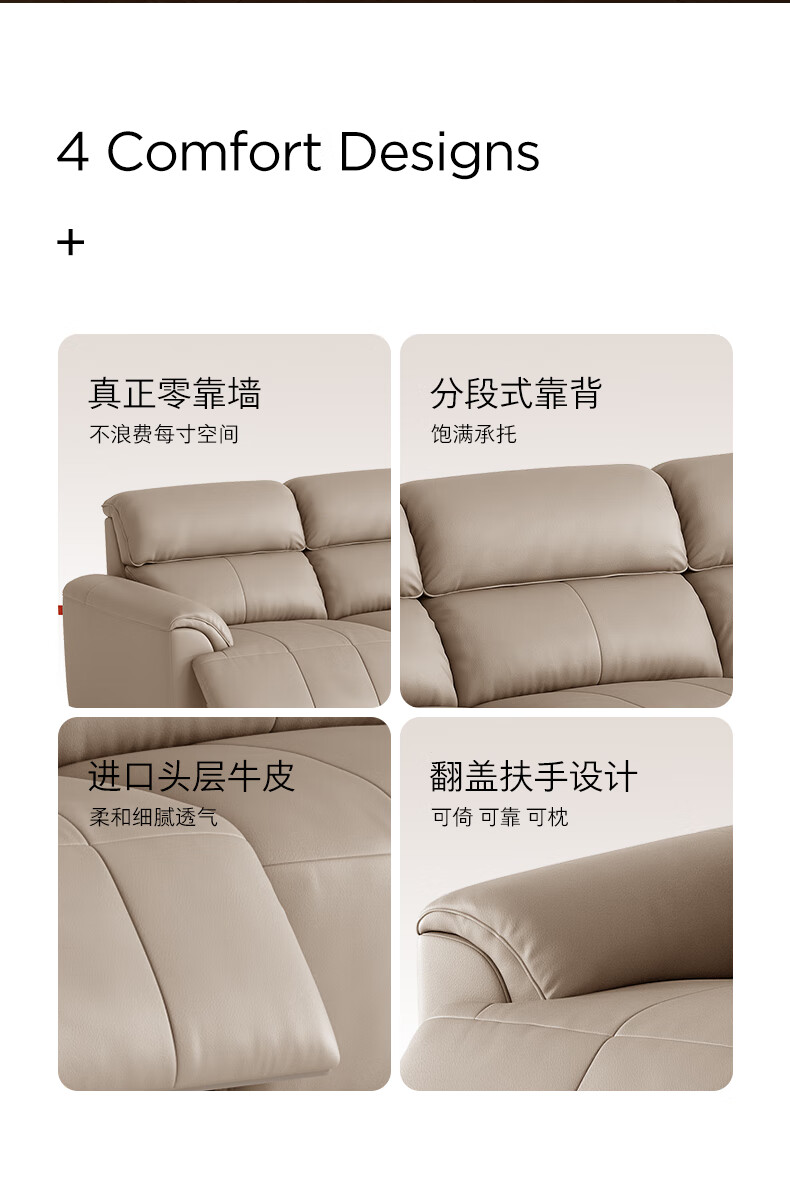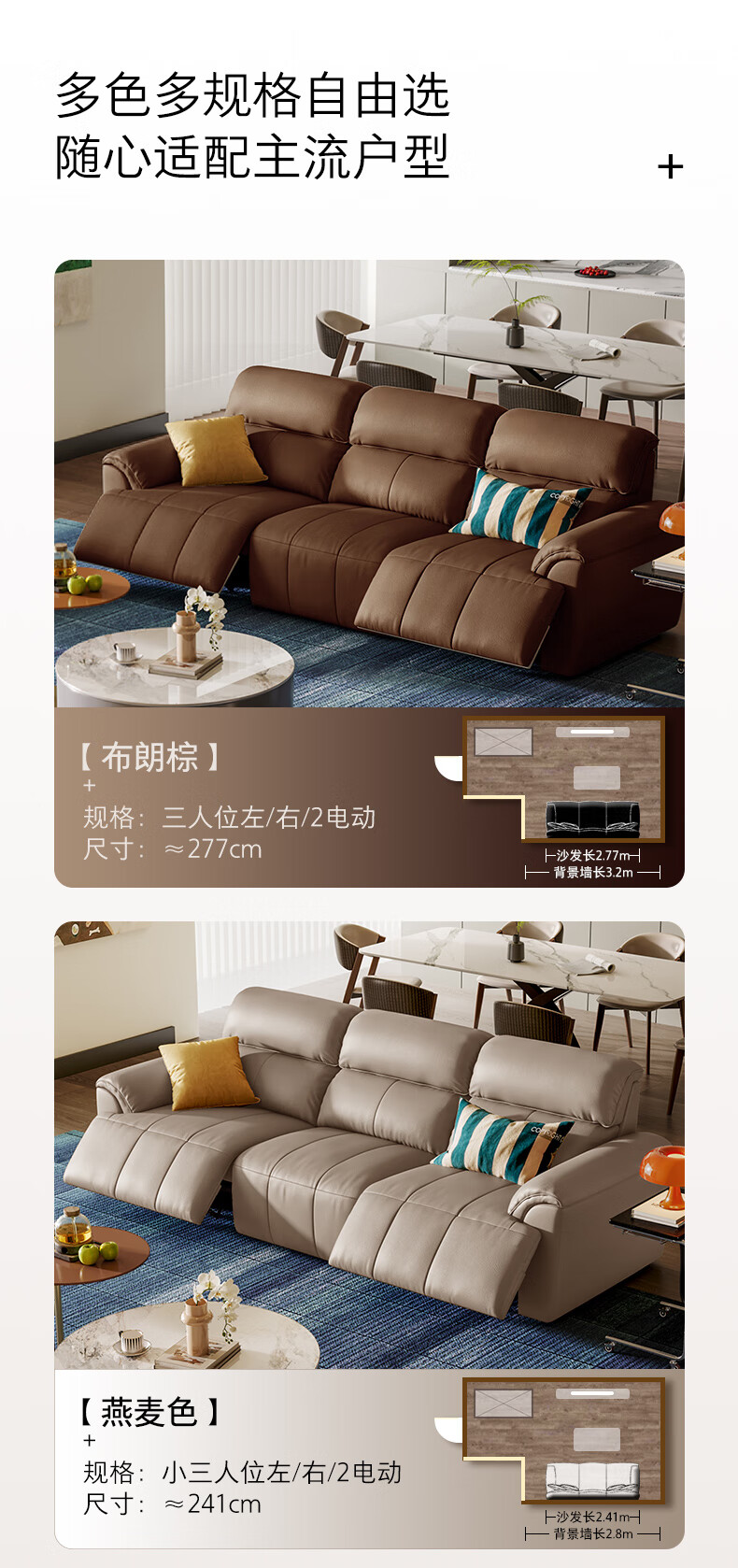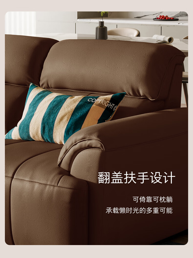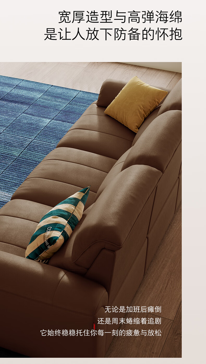 顾家家居(KUKA)意式轻奢风头层牛皮大棕熊零靠墙功能沙发客厅搭配沙发 布朗棕四人位2电动3.54M