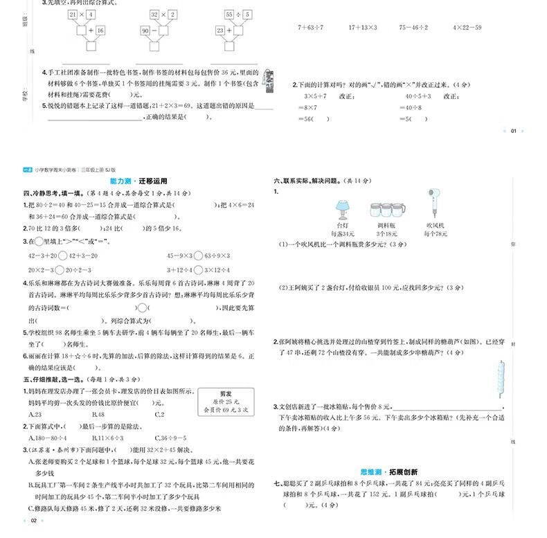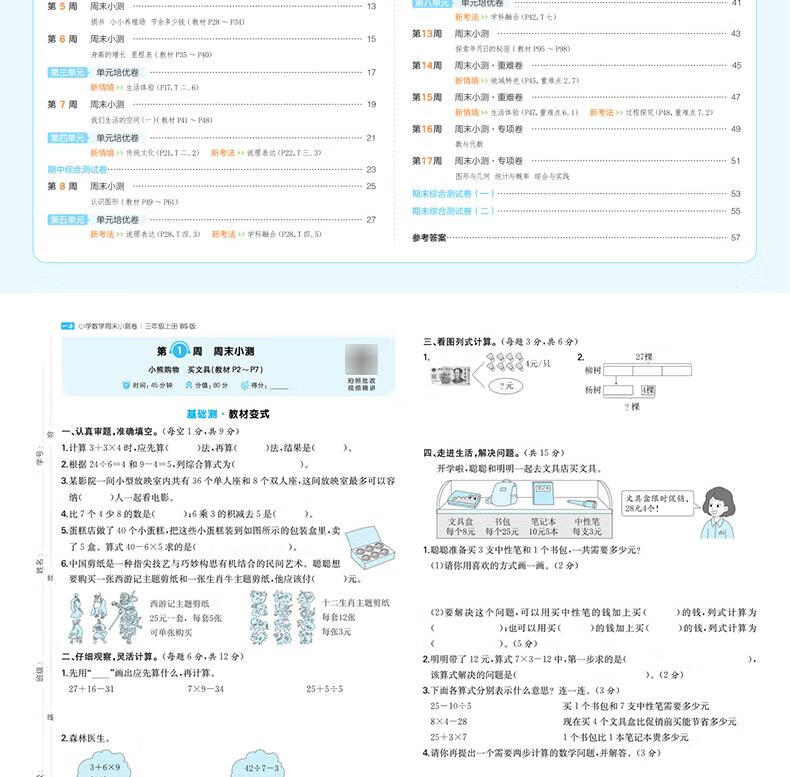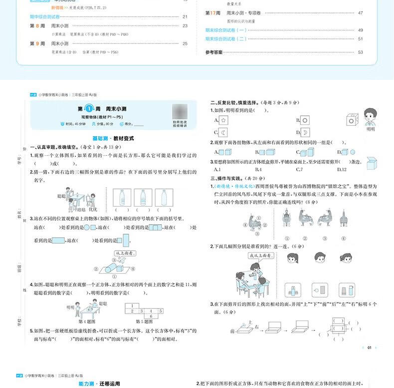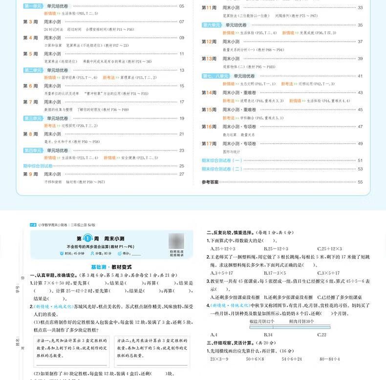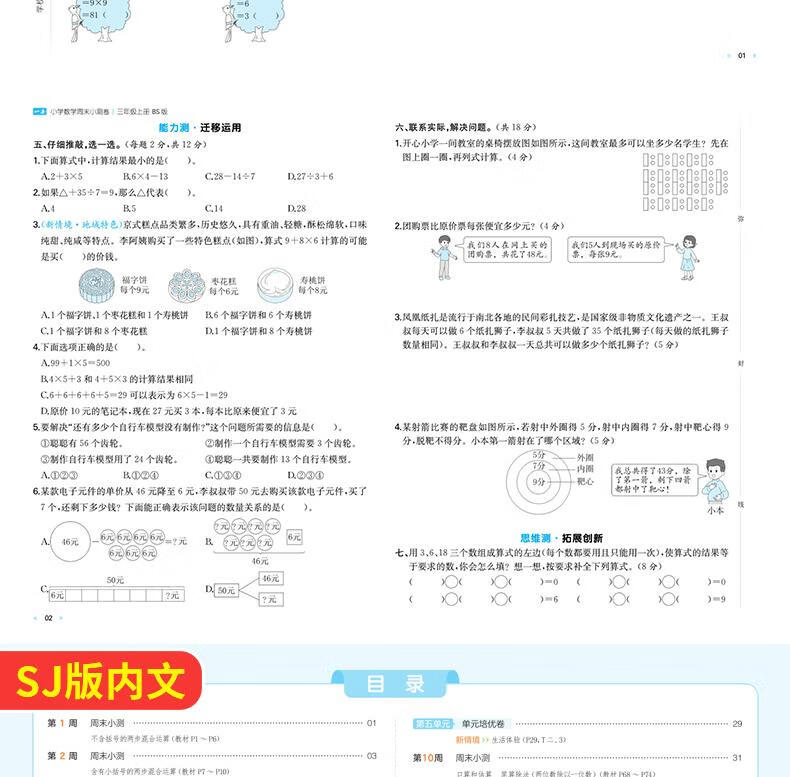 2025秋一本小学数学周末小测卷三年级上册数学RJ人教版 3年级数学同步考点周末检测卷单元培优卷期中期末模拟考测试卷