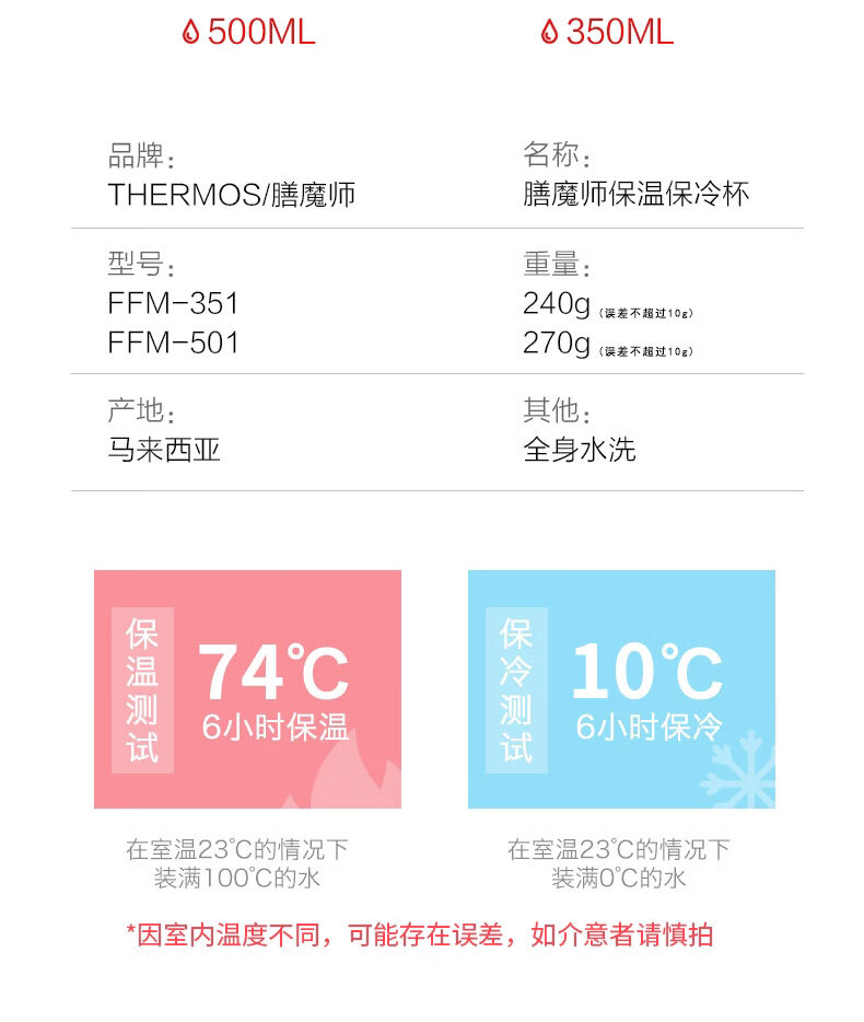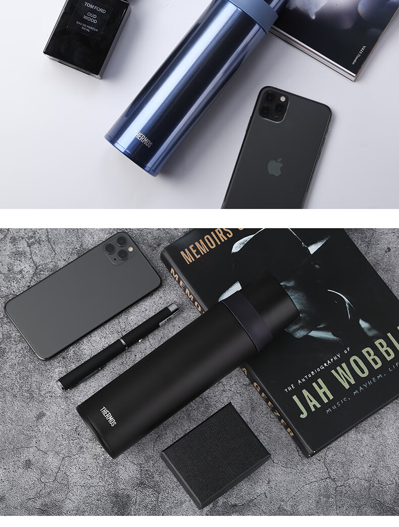 膳魔师(THERMOS)保温杯不锈钢水杯磨砂黑500ml男女保冷杯子双盖FFM-501双十一送礼