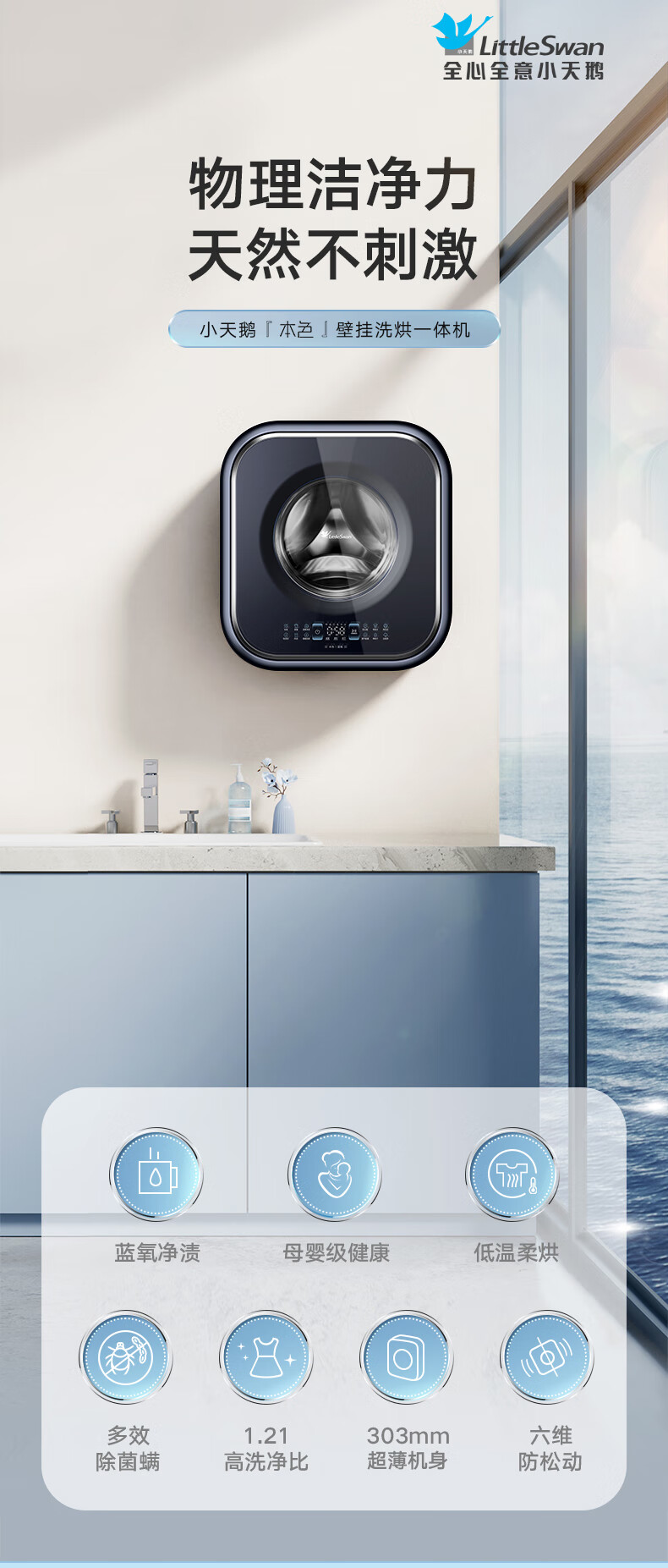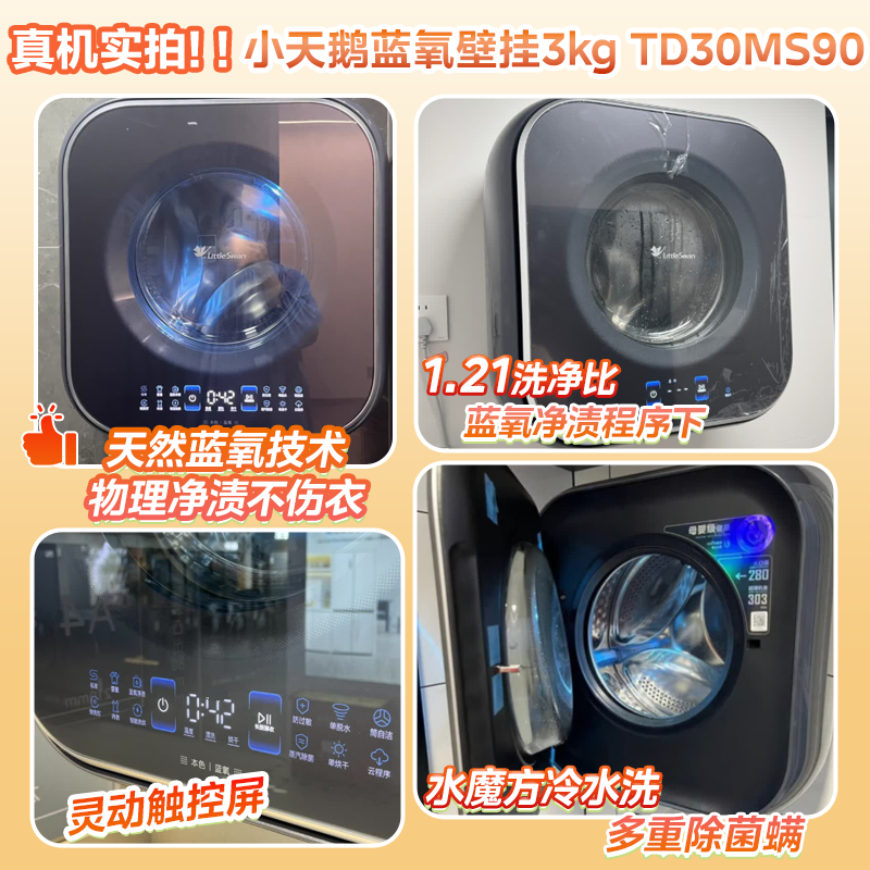 小天鹅(LittleSwan)本色蓝氧mini壁挂洗烘一体机 3kg内衣裤婴儿儿童迷你挂壁式小型洗衣机全自动 一级能效变频节能 TD30MS90 蓝氧去渍 水魔方护色洗 低温柔烘