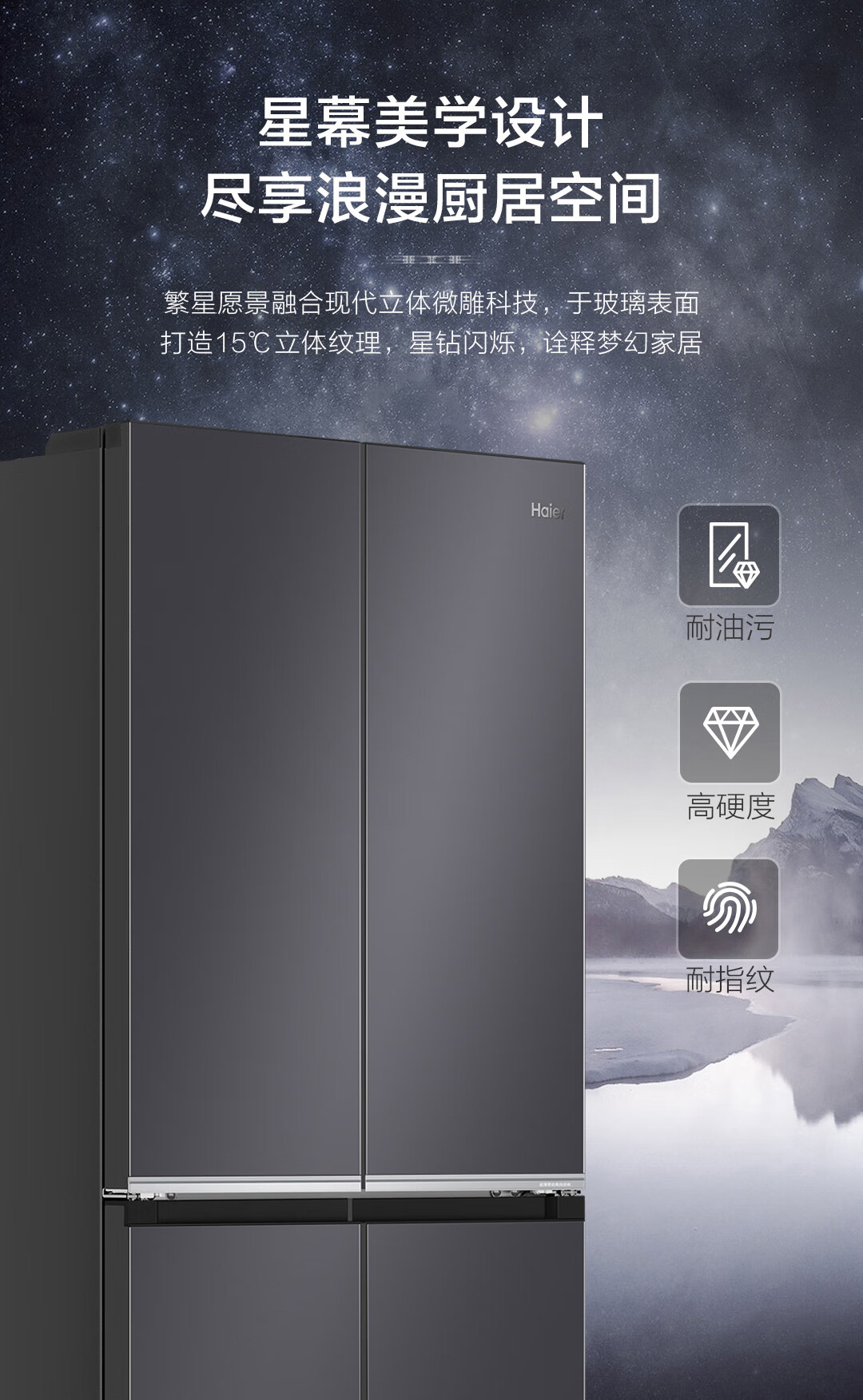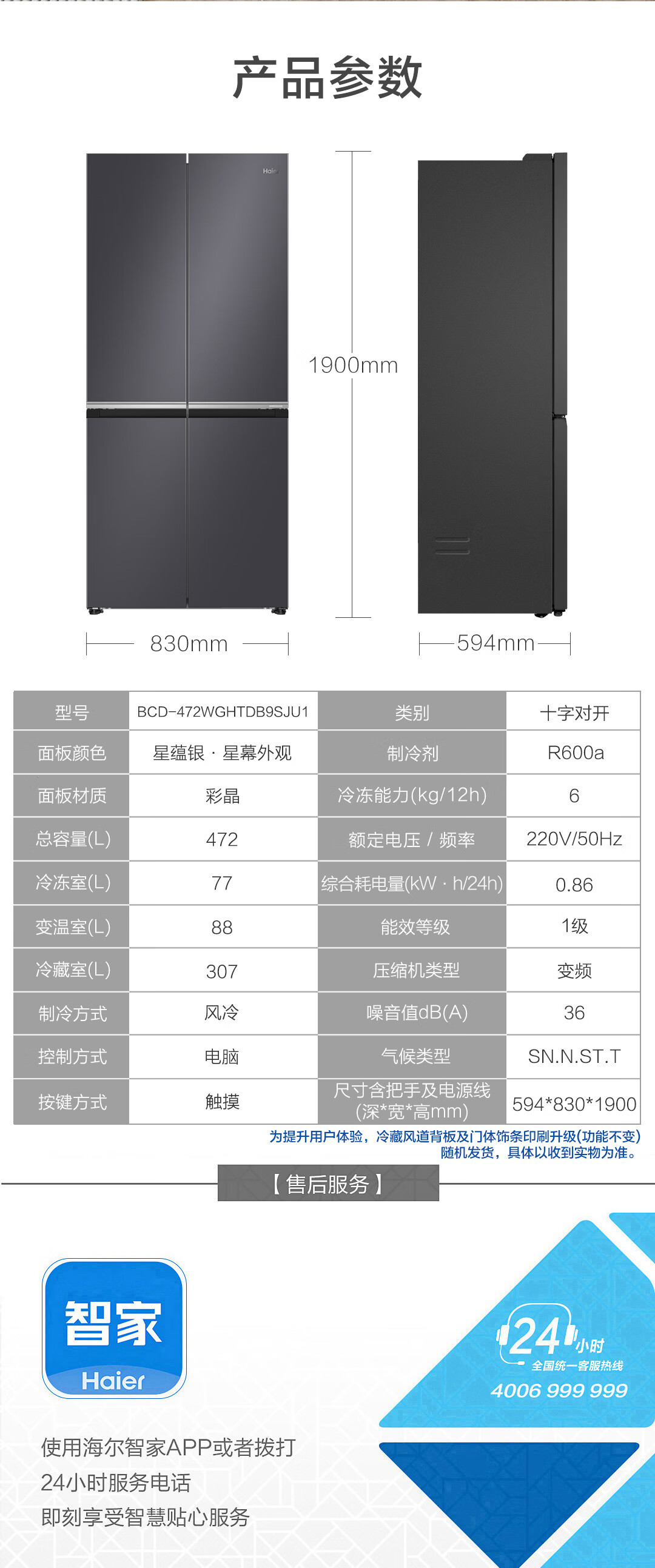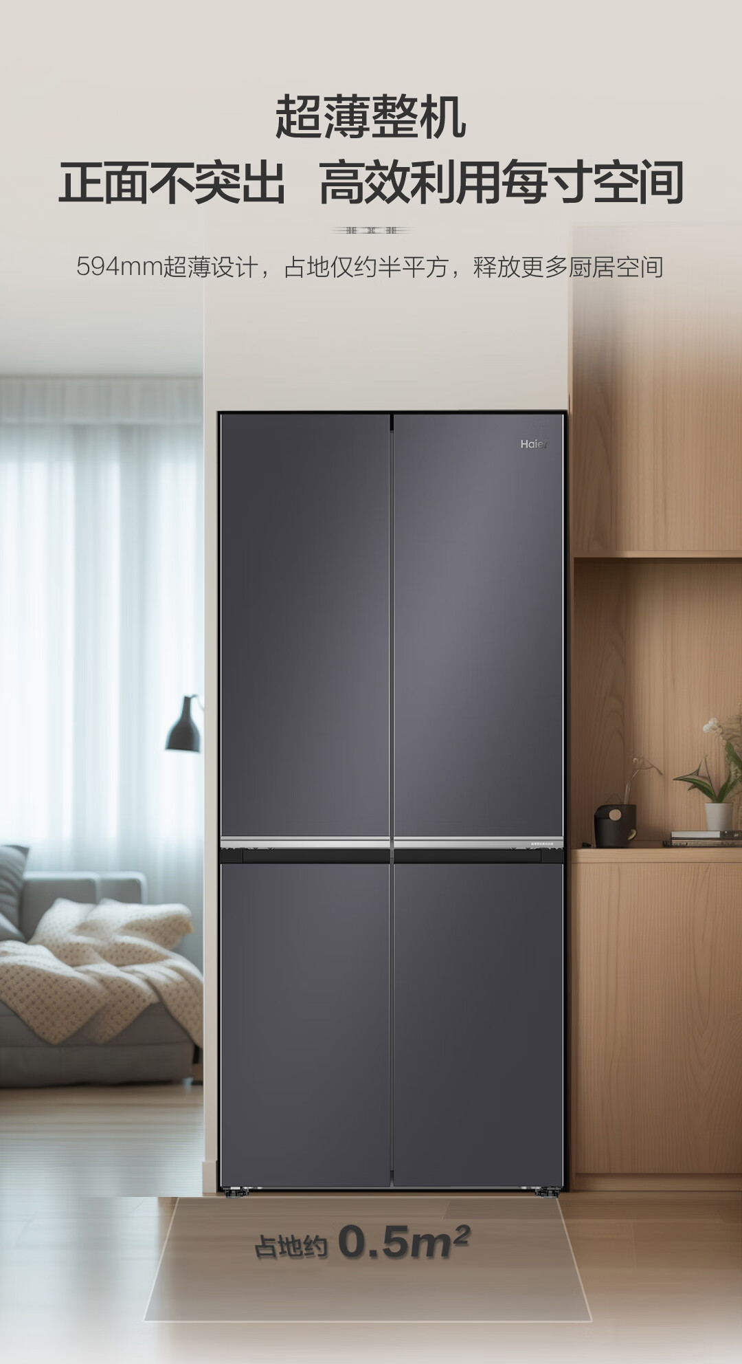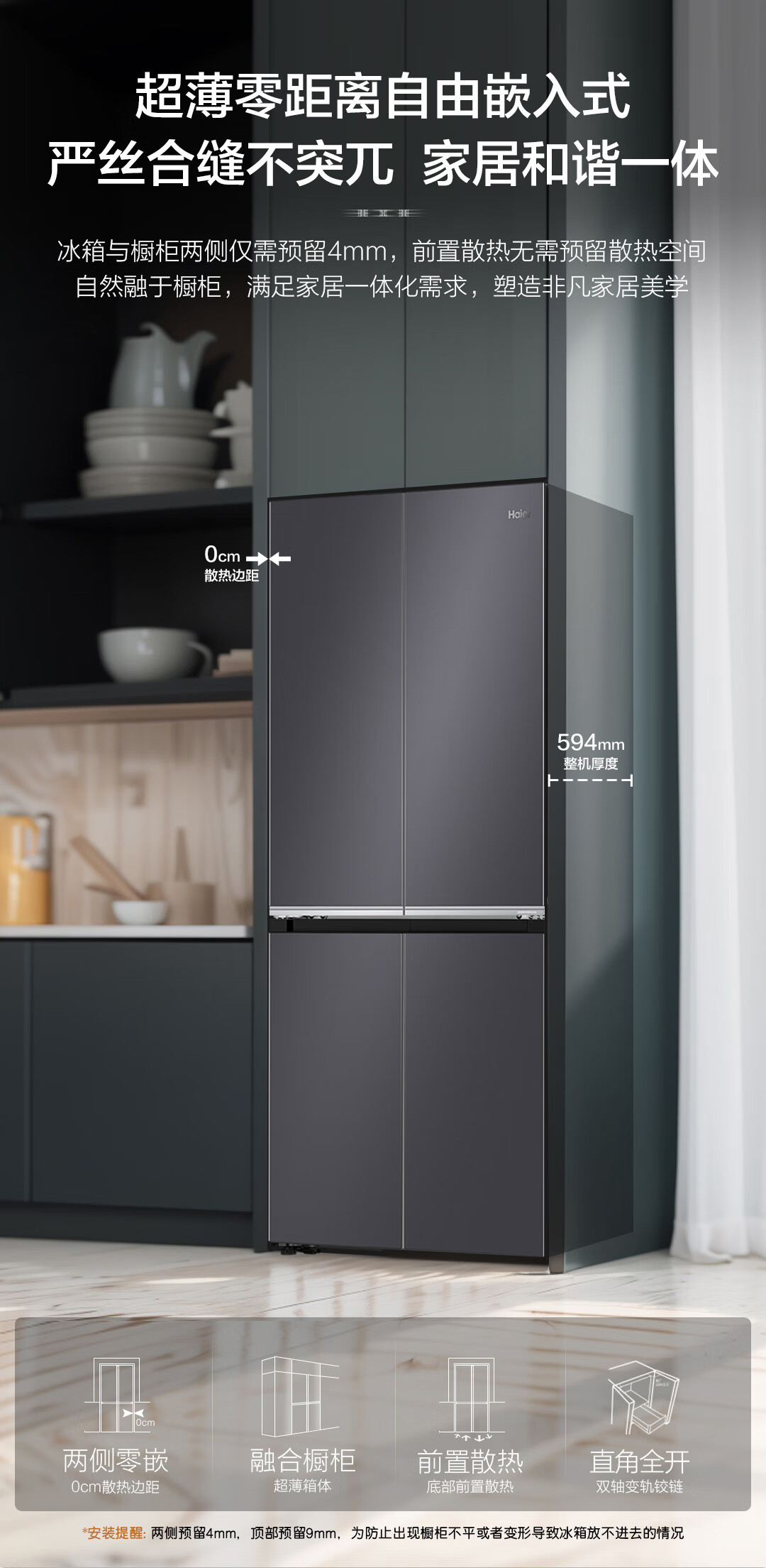 海尔(Haier)十字对开门594mm超薄零嵌入式全空间保鲜钢化玻璃面板双变频EPP超净家用冰箱BCD-472WGHTDB9SJU1