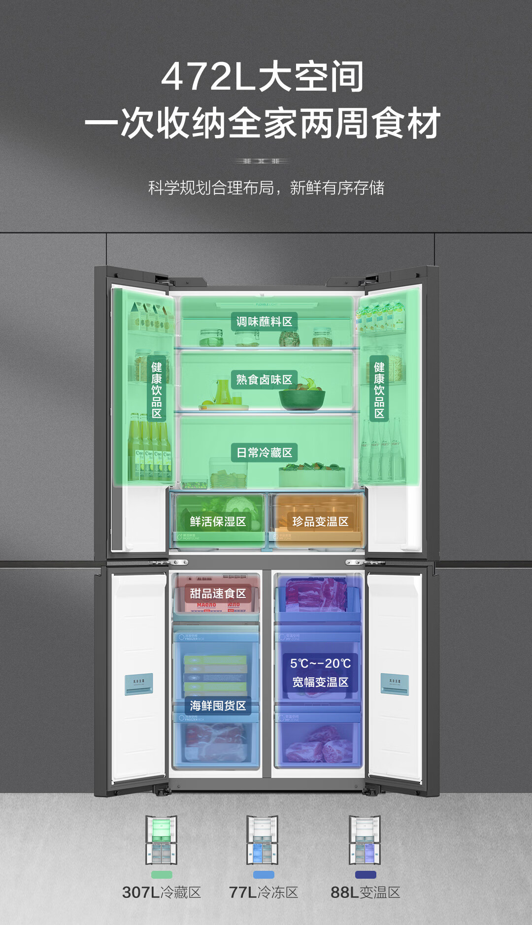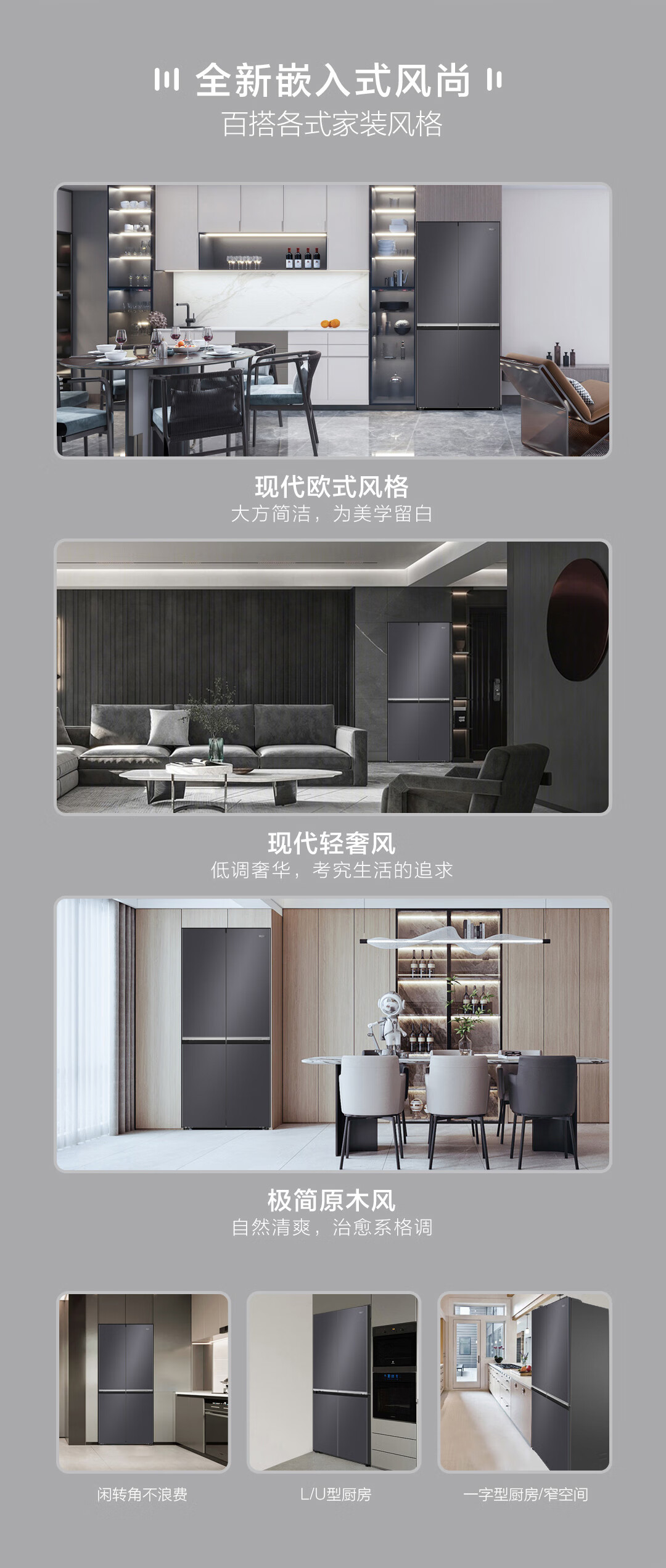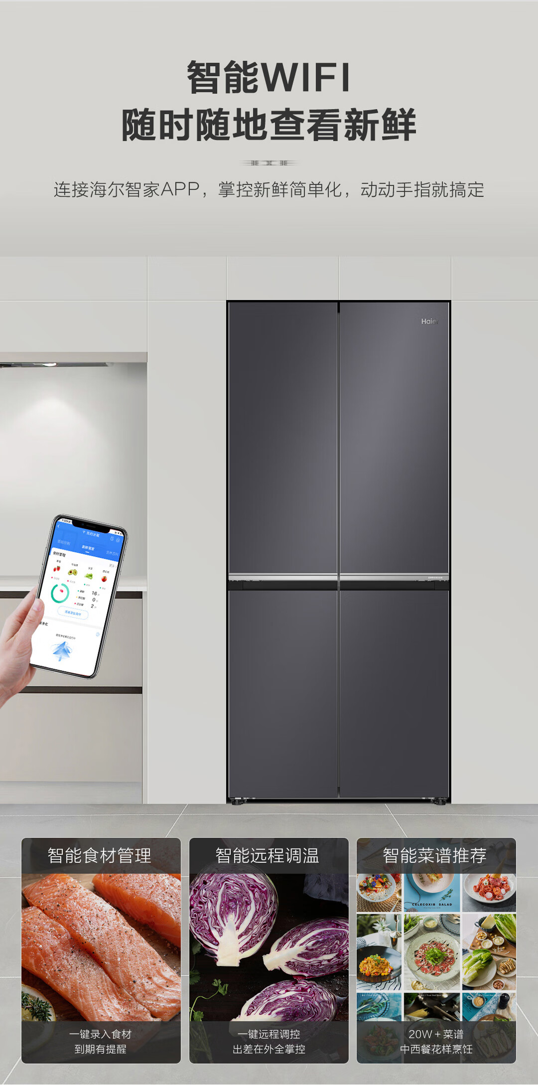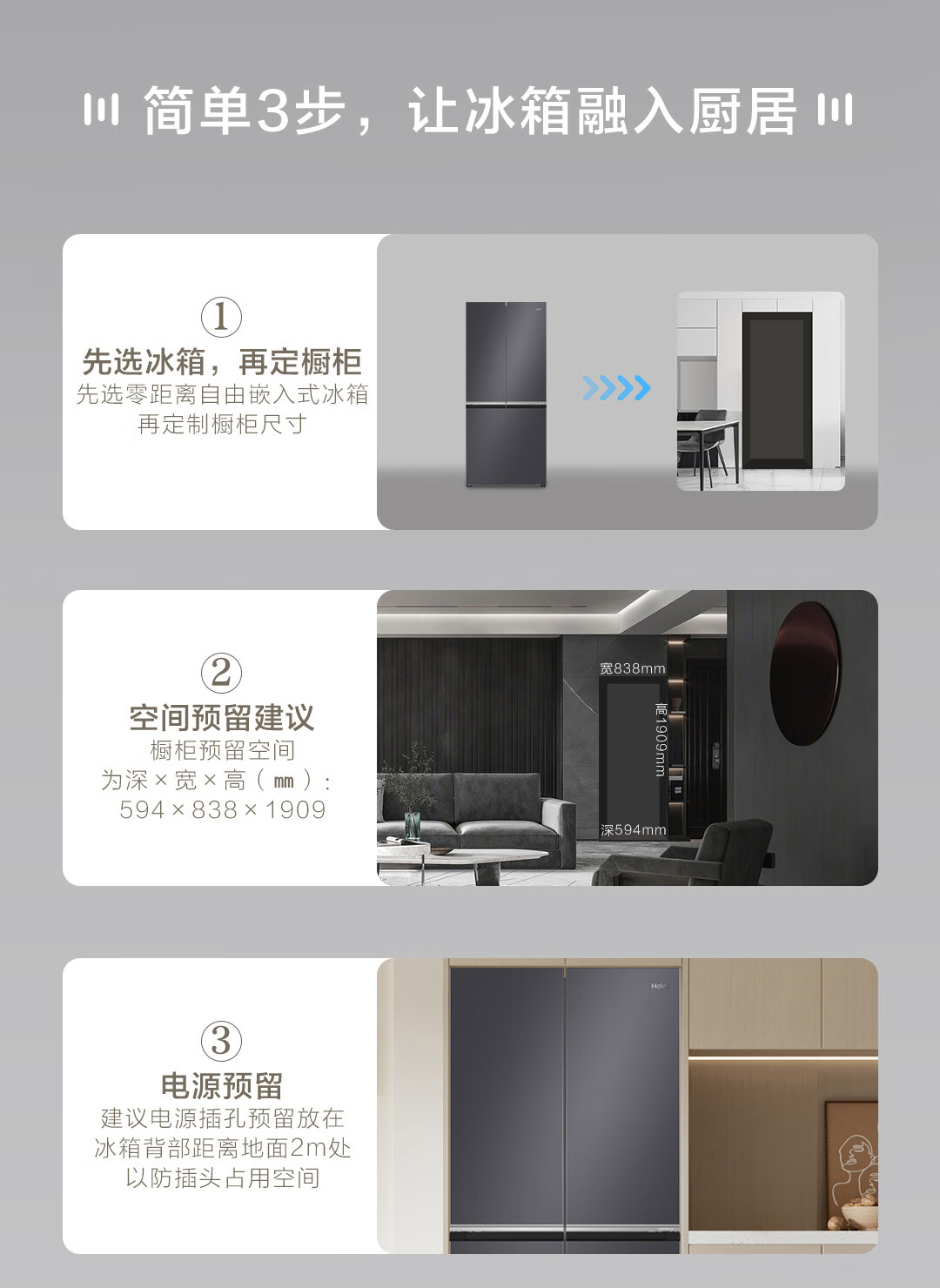 海尔(Haier)十字对开门594mm超薄零嵌入式全空间保鲜钢化玻璃面板双变频EPP超净家用冰箱BCD-472WGHTDB9SJU1