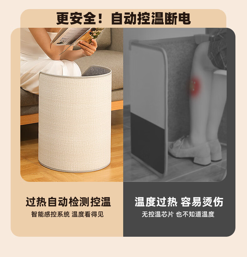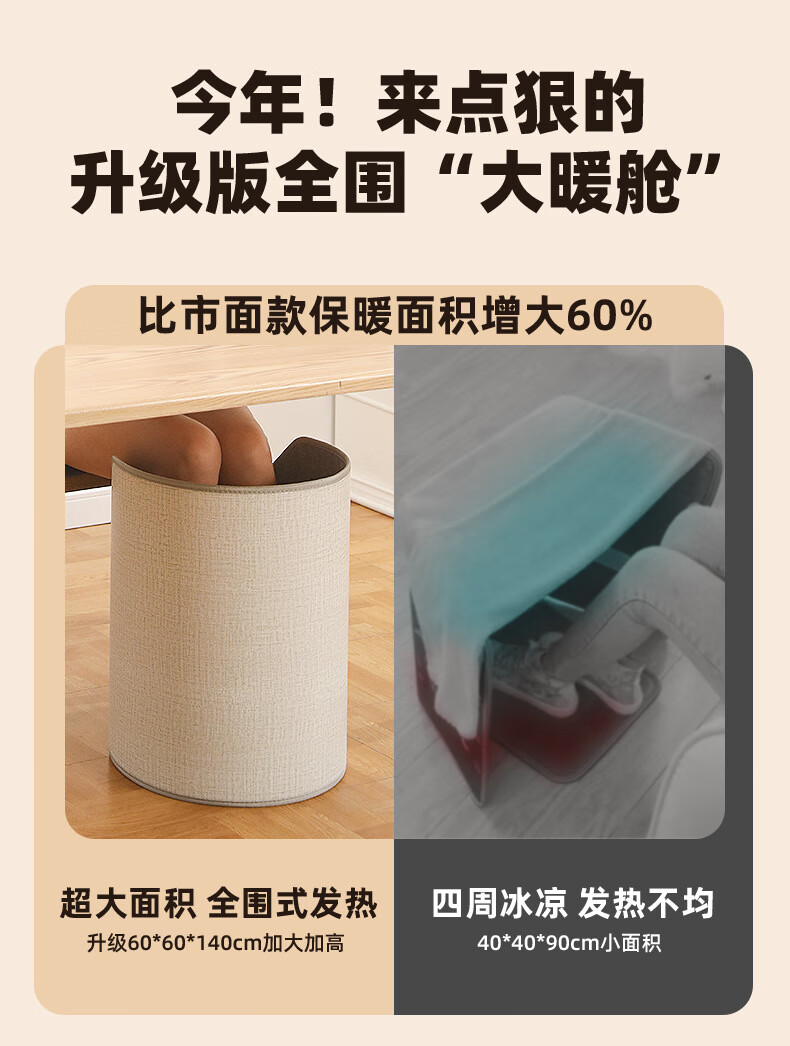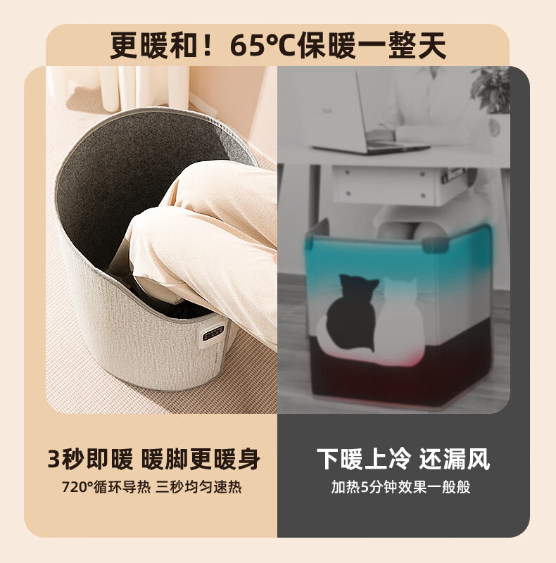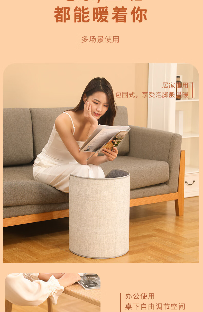 箱居取暖器冬天办公室桌下暖脚器速热家用圆形围脚暖脚宝暖腿暖脚 灰色/按键款