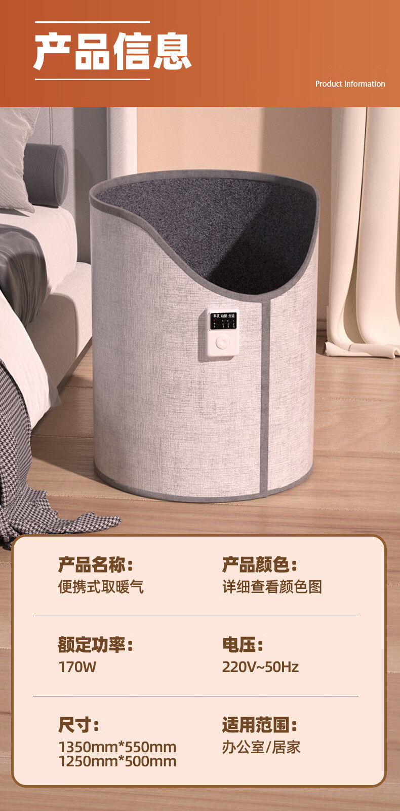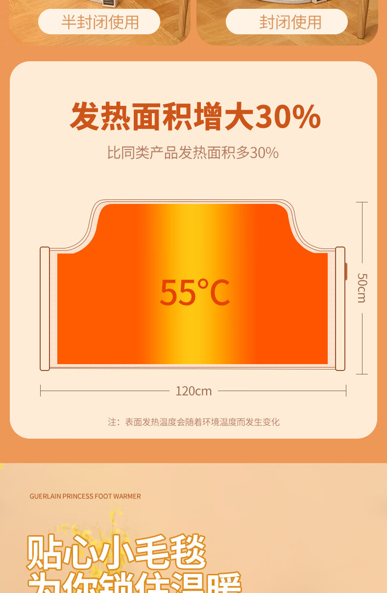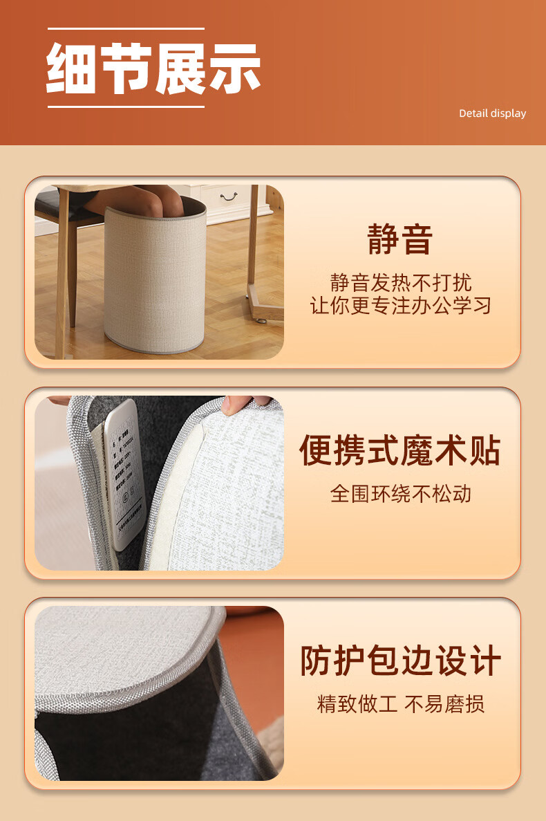 箱居取暖器冬天办公室桌下暖脚器速热家用圆形围脚暖脚宝暖腿暖脚 灰色/按键款