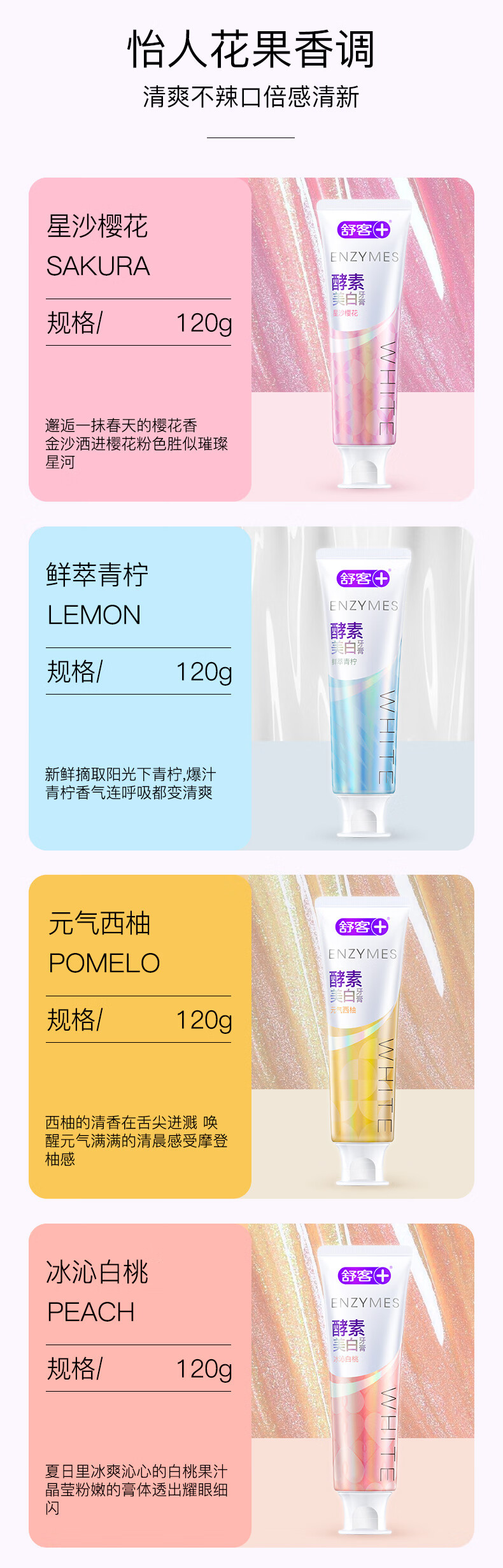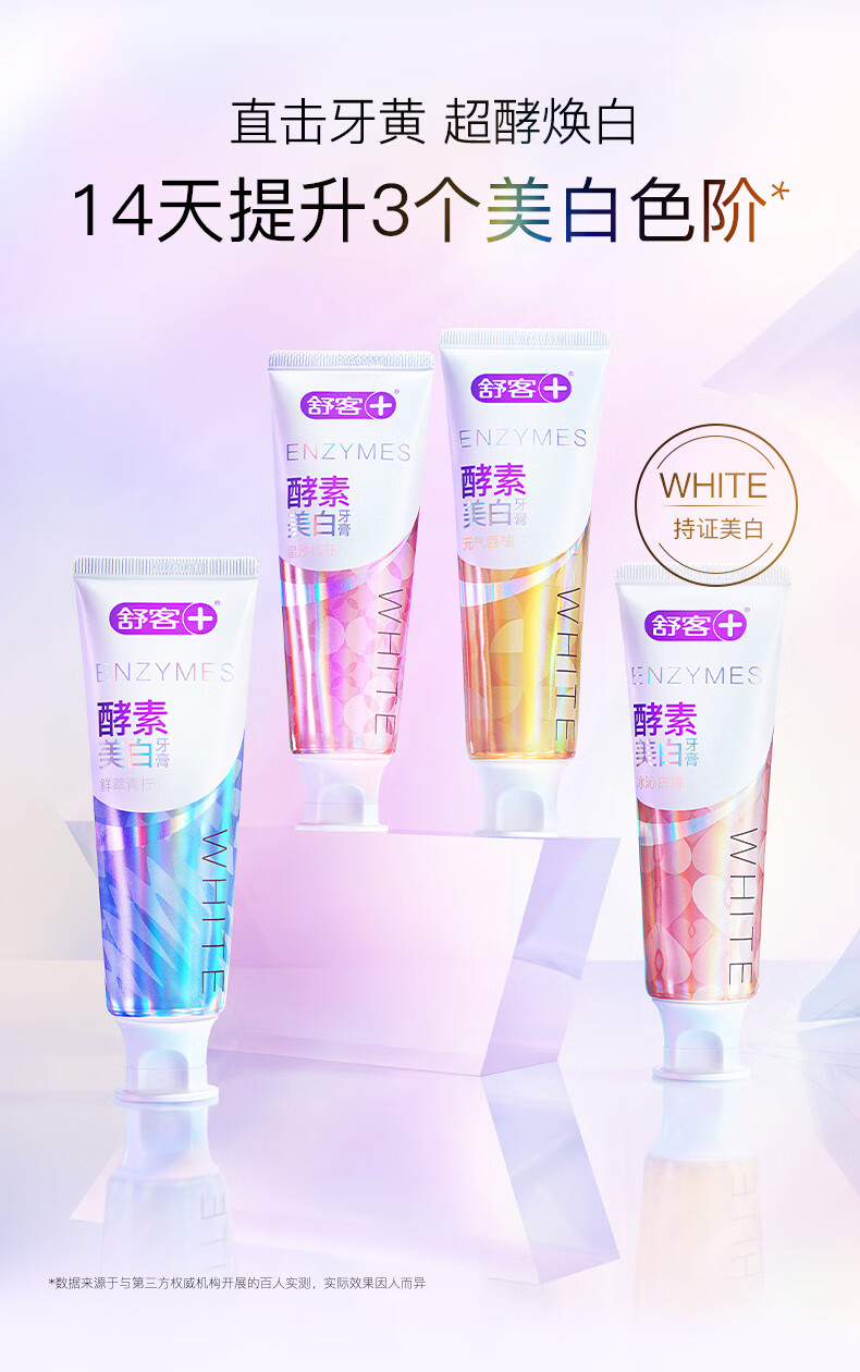 舒客爆款酵素牙膏去黄亮白清新口气护龈舒敏多种功效家庭装 多功效爆款酵素牙膏组合