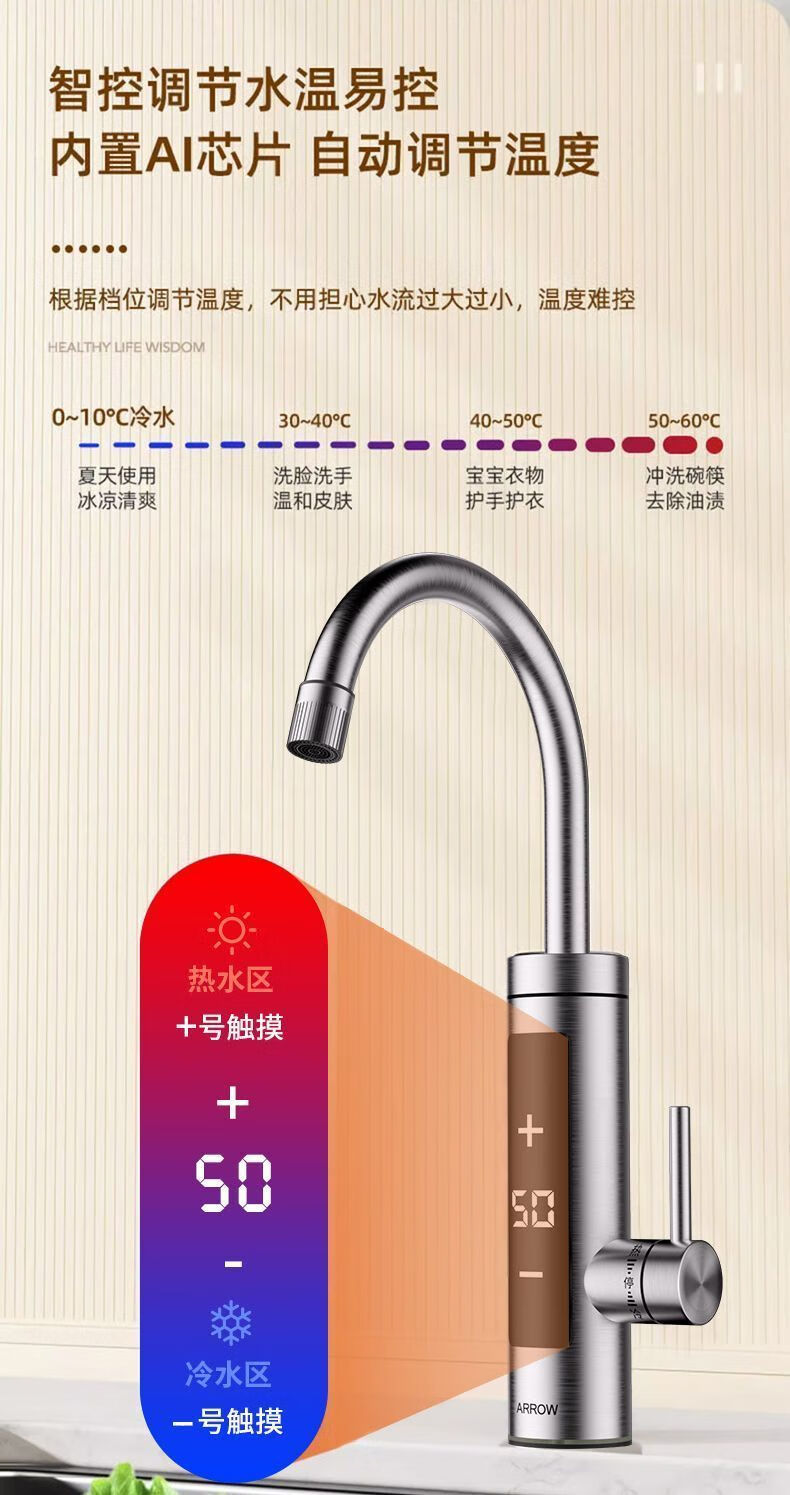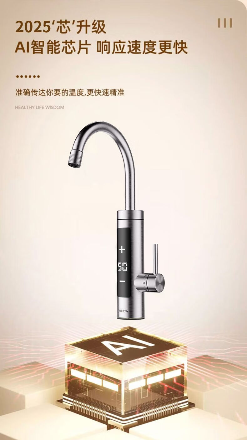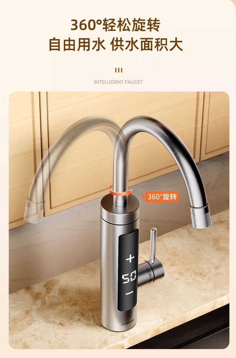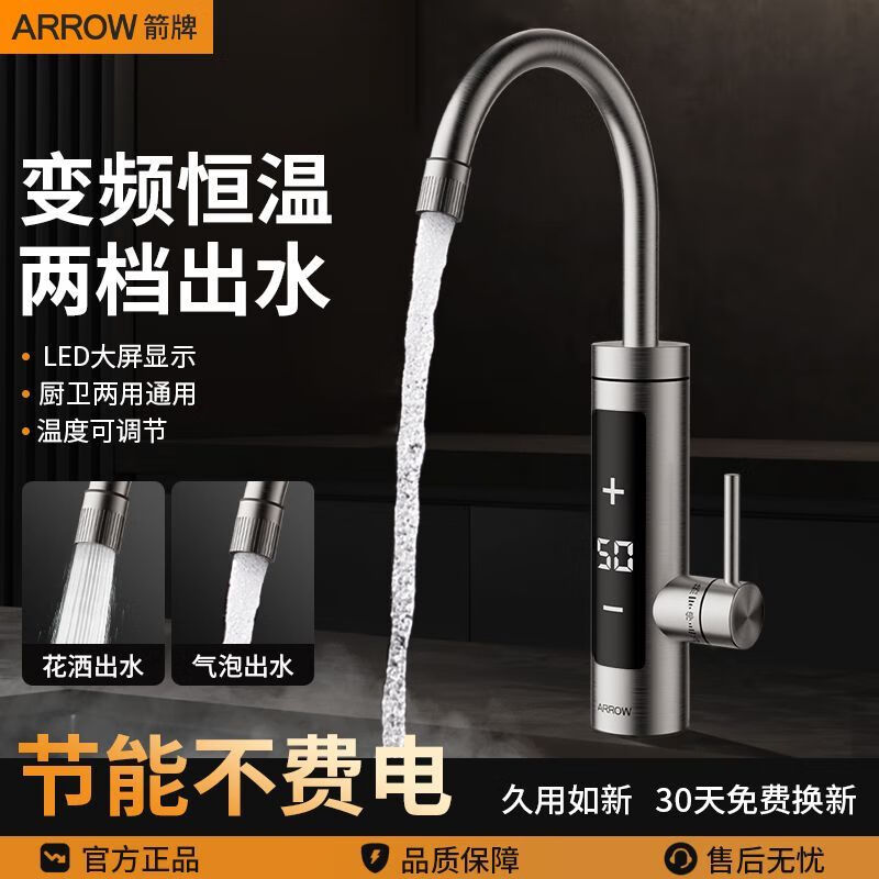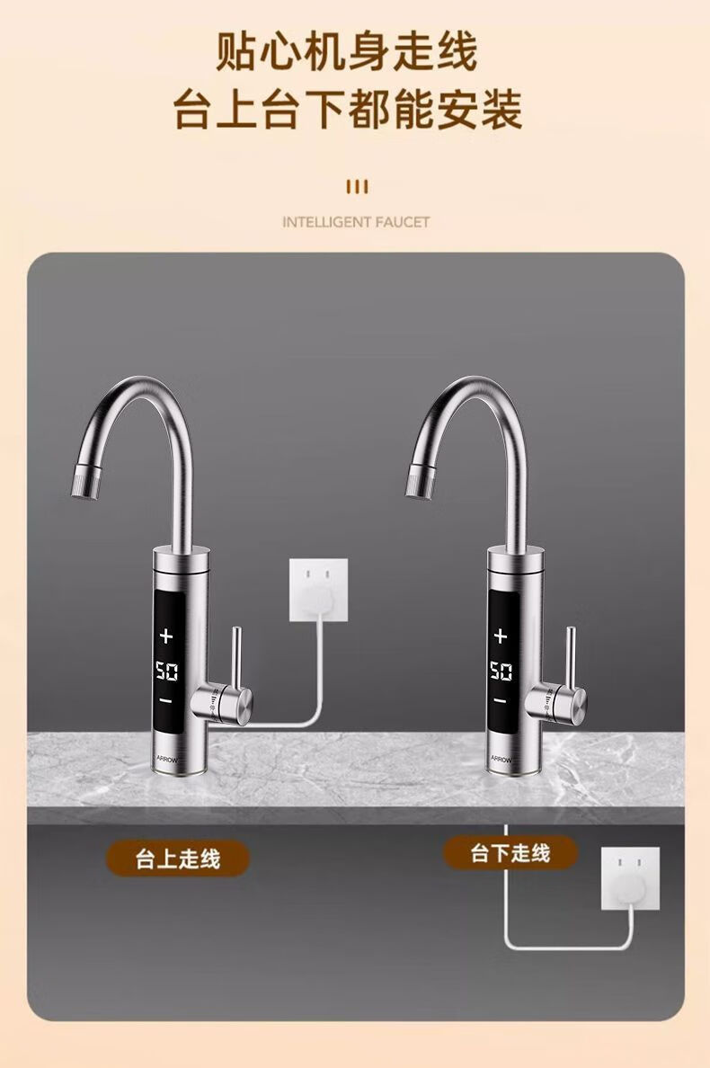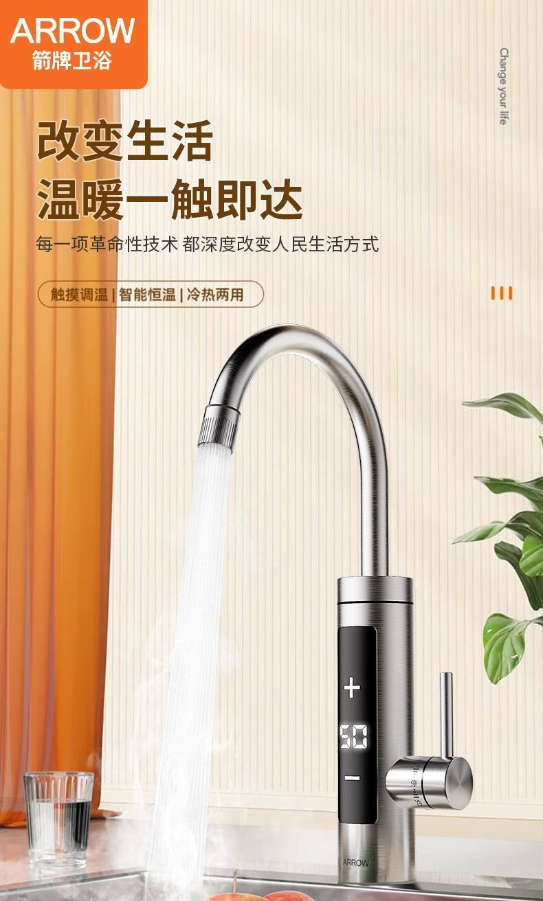 箭牌(ARROW)电热水龙头热水器即热式快速加热水龙头变频恒温厨房速热水龙头加热器 【即热款】白色+公牛插头