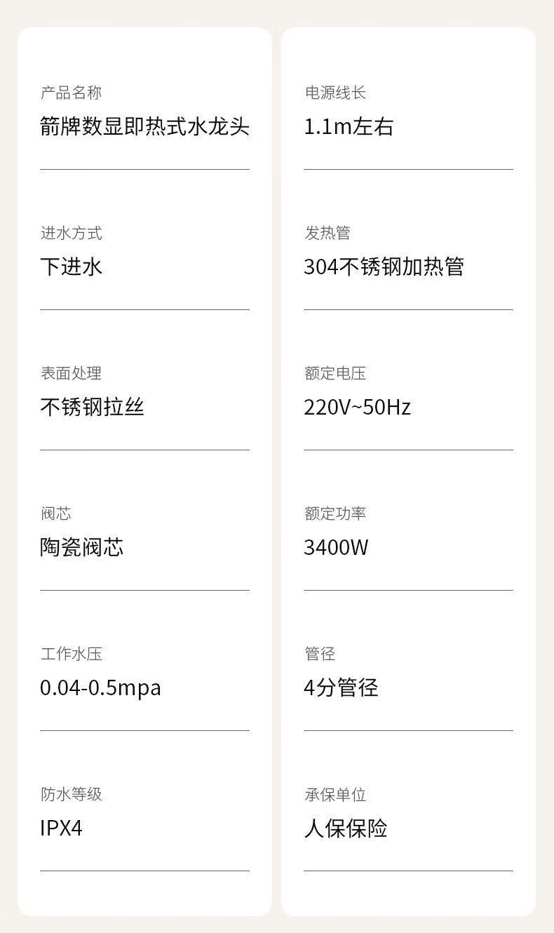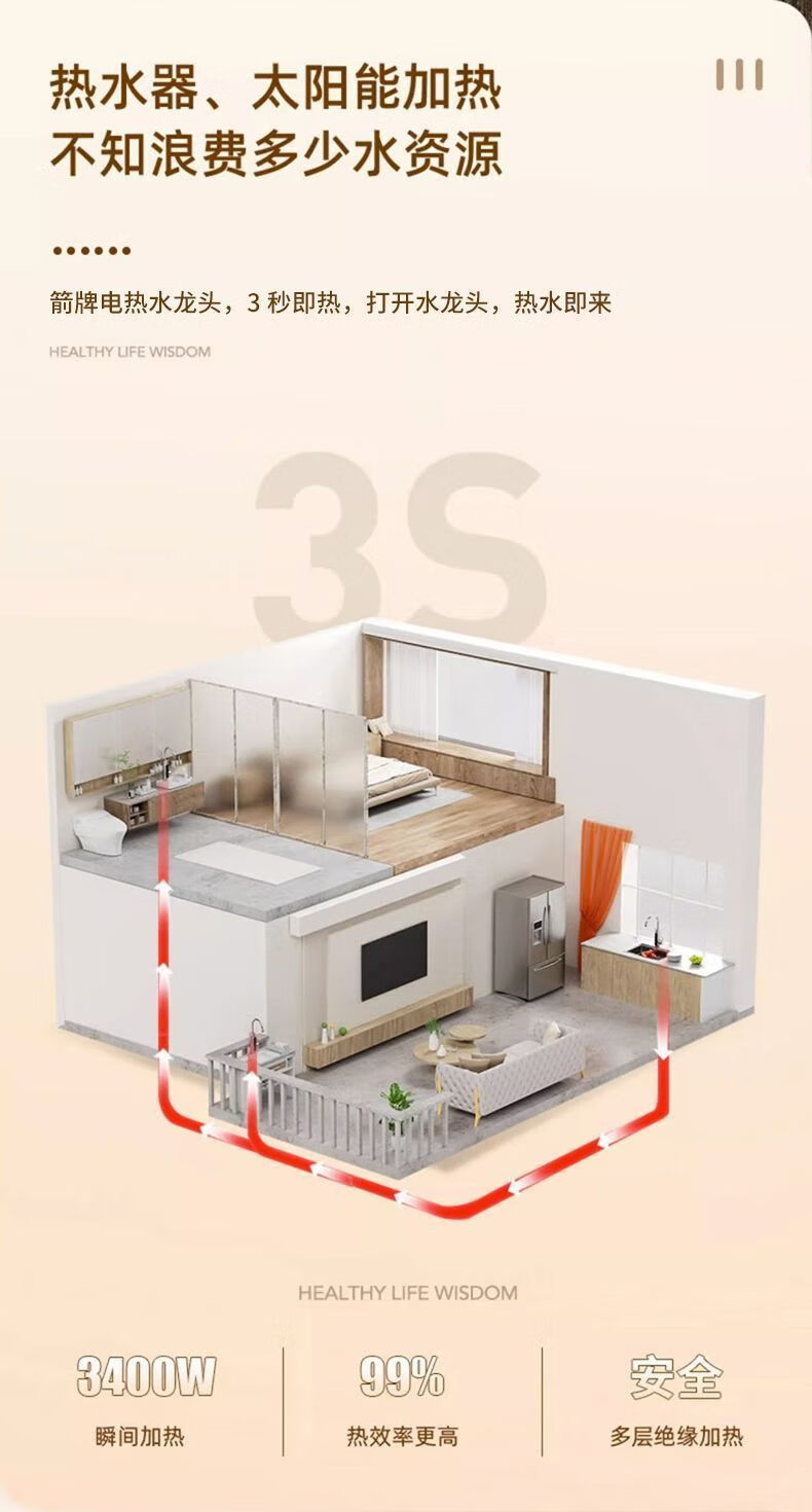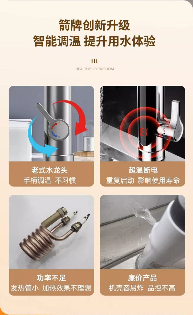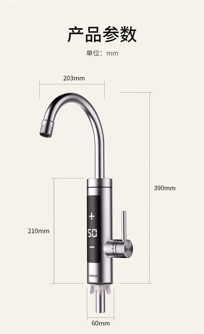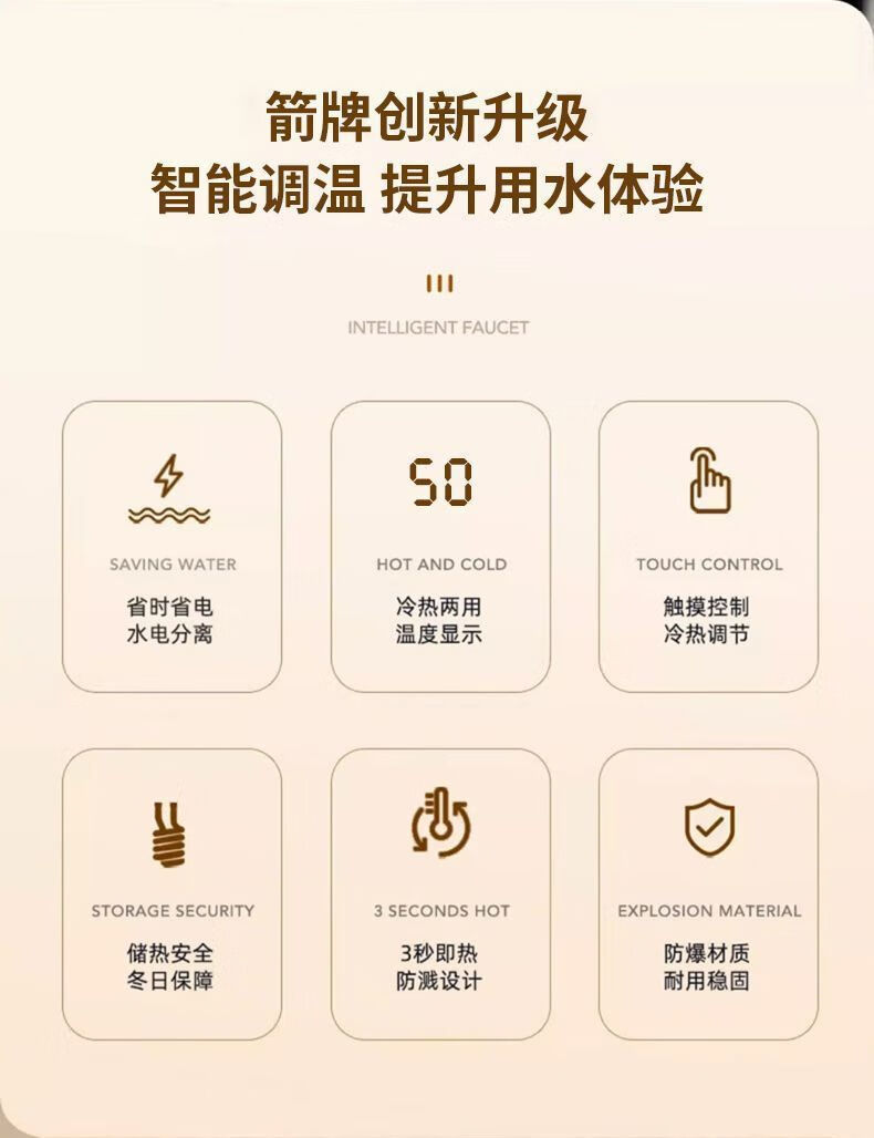 箭牌(ARROW)电热水龙头热水器即热式快速加热水龙头变频恒温厨房速热水龙头加热器 【即热款】白色+公牛插头
