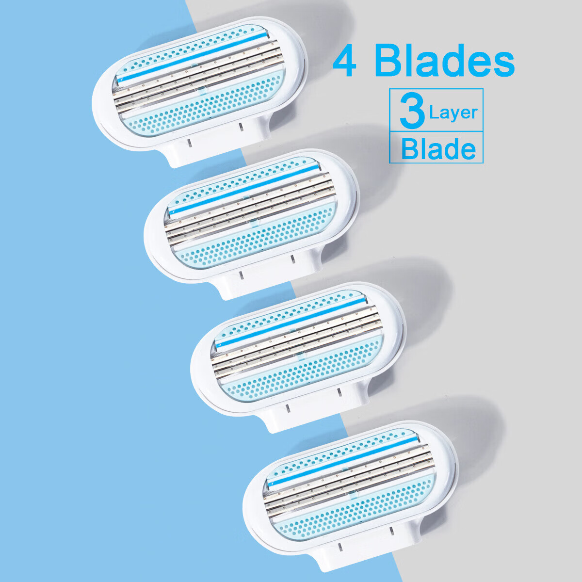 【严选】三层刮胡刀刀片手动刮胡刀男通用三风速3剃须刀片胡子刀 4刀头【不含刀架