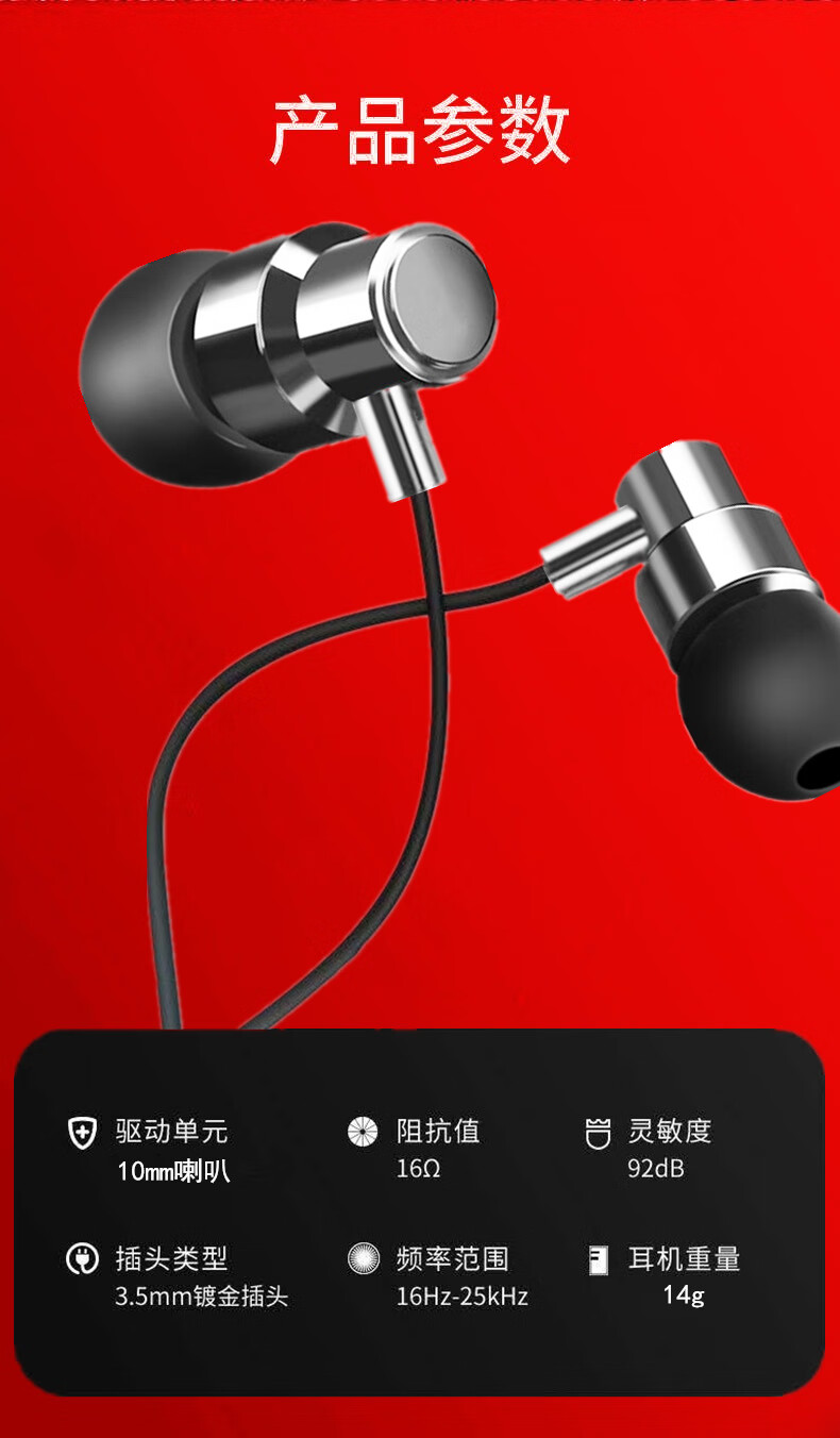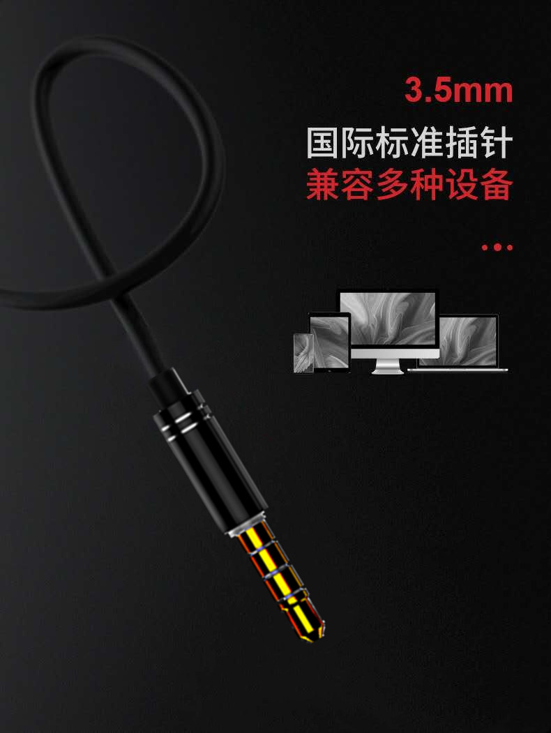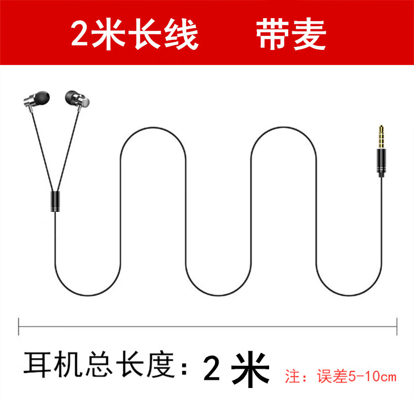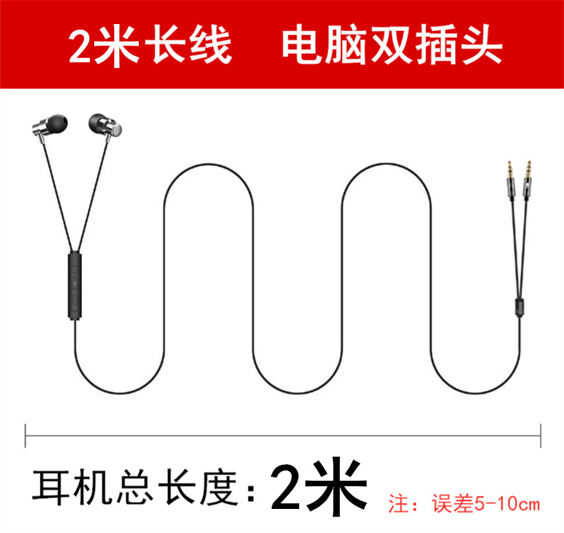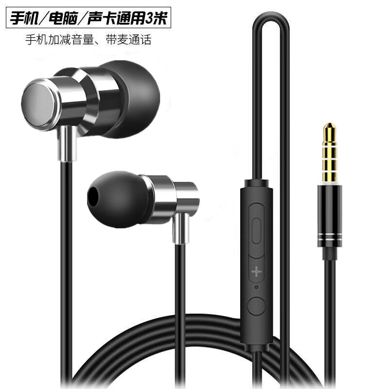 RSRDDY 台式电脑耳机 声卡吃鸡带麦风2米加长主播直播录音专用入耳式耳机 T-105包装银灰色(2米单插头带麦)