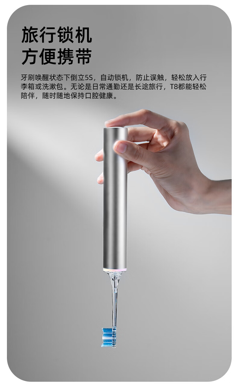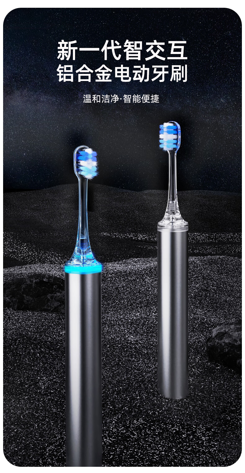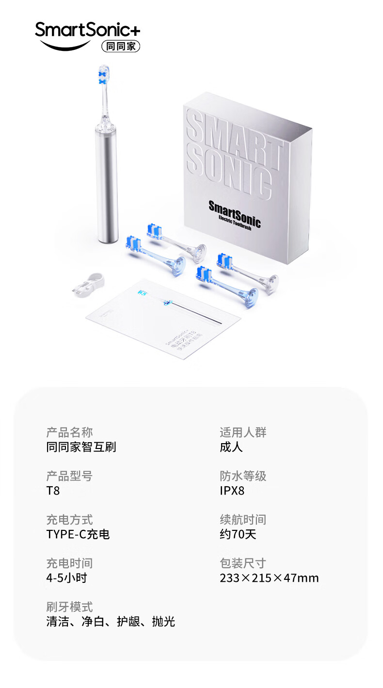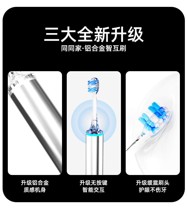 同同家(TTJ)铝合金柔频电动牙刷智能全自动声波护龈 男士女士专用情侣款套装礼盒装 生日礼物 教师节礼品T8 太空银 | 浅蓝刷头款