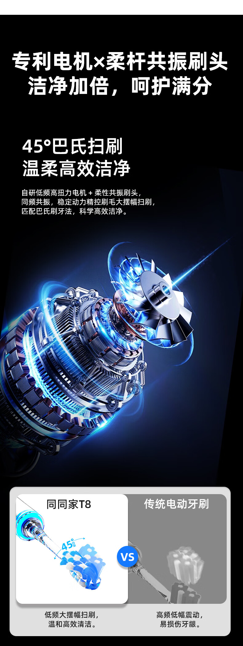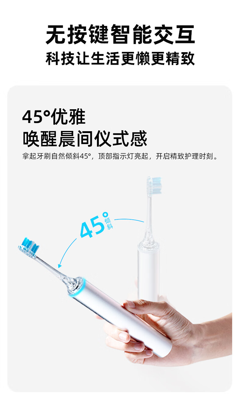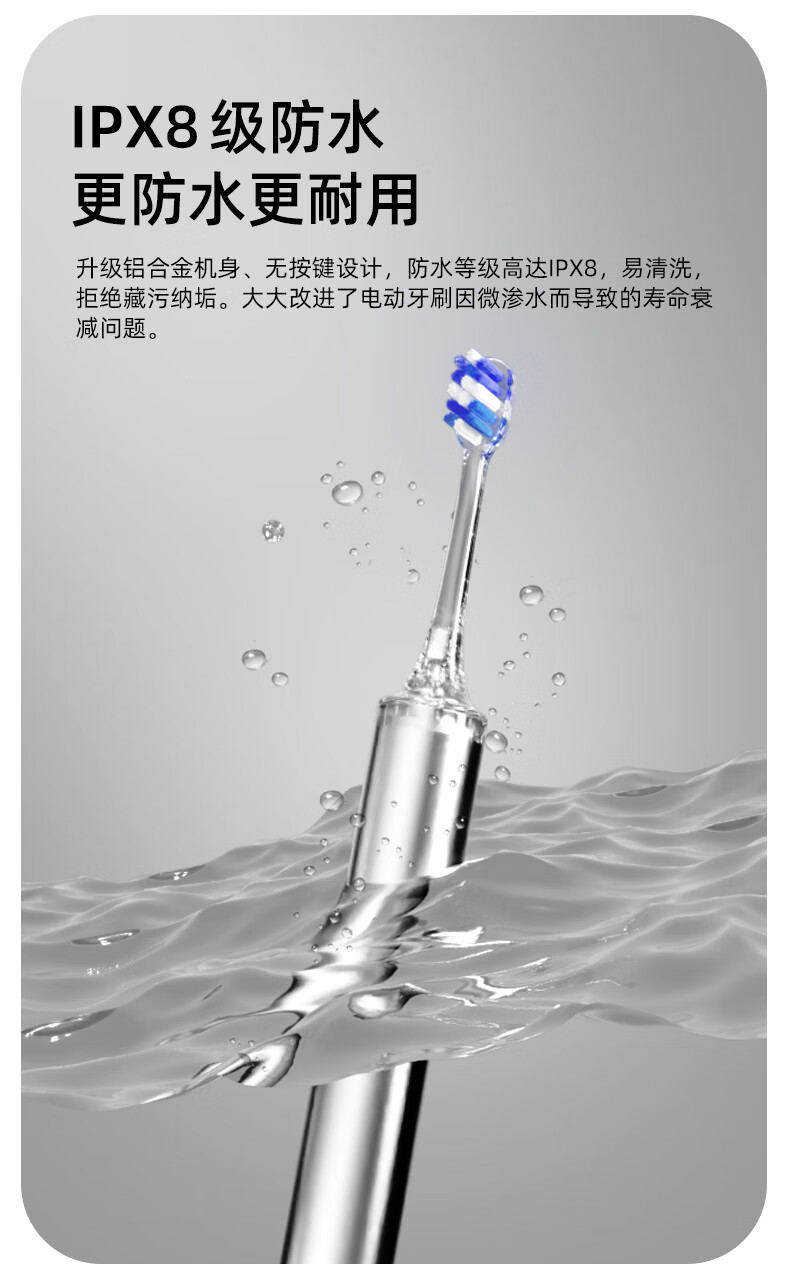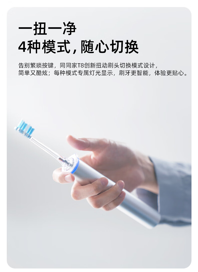 同同家(TTJ)铝合金柔频电动牙刷智能全自动声波护龈 男士女士专用情侣款套装礼盒装 生日礼物 教师节礼品T8 太空银 | 浅蓝刷头款