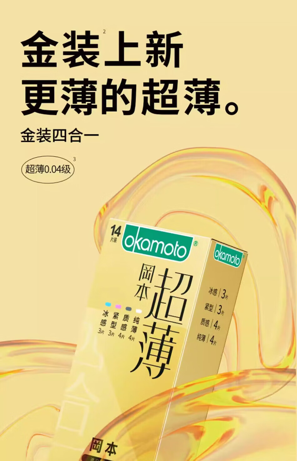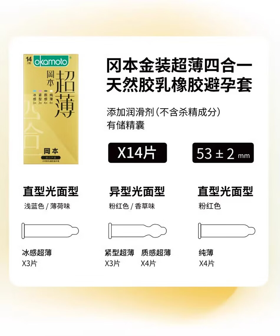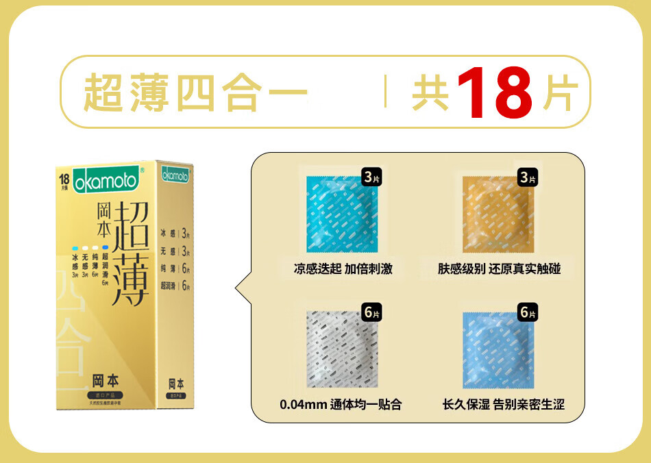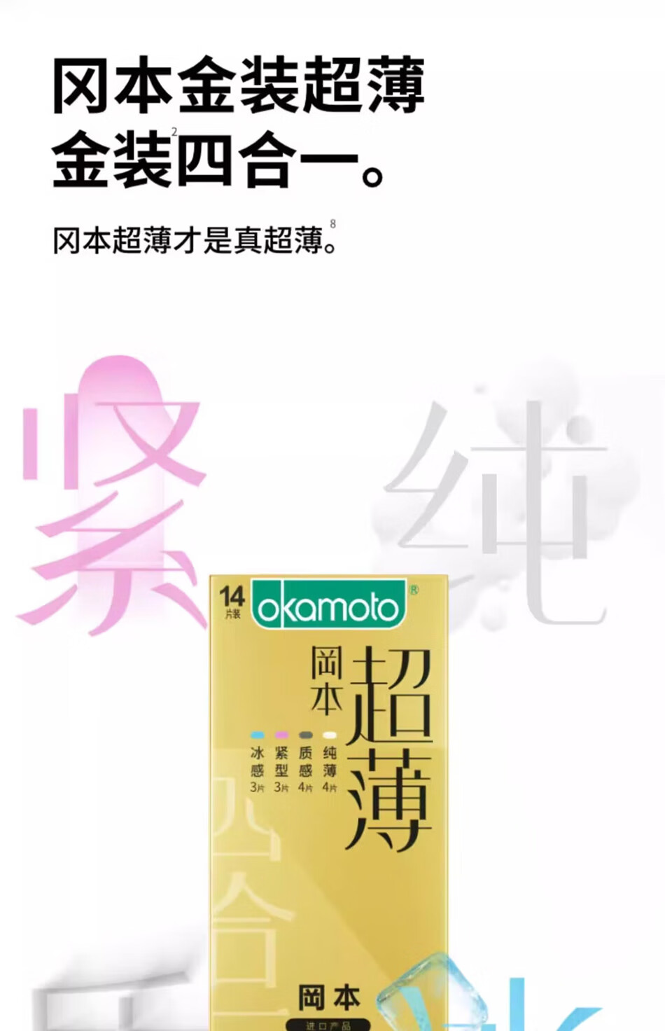 冈本超薄避孕套 纯薄裸感超润滑安全套 男女用空气套套 成人计生用品 銮金超薄组合22只