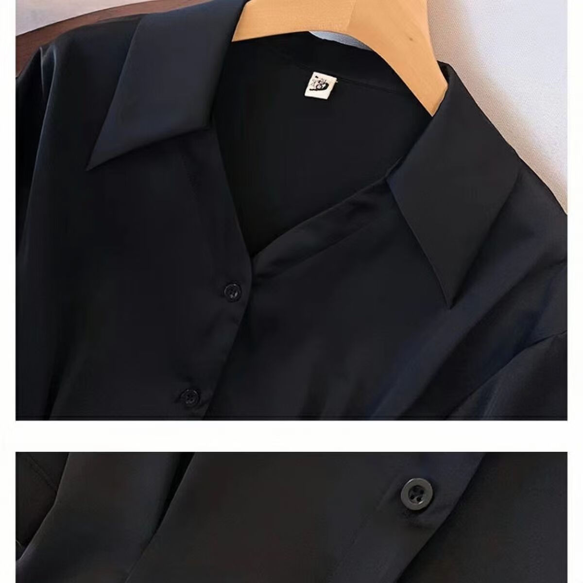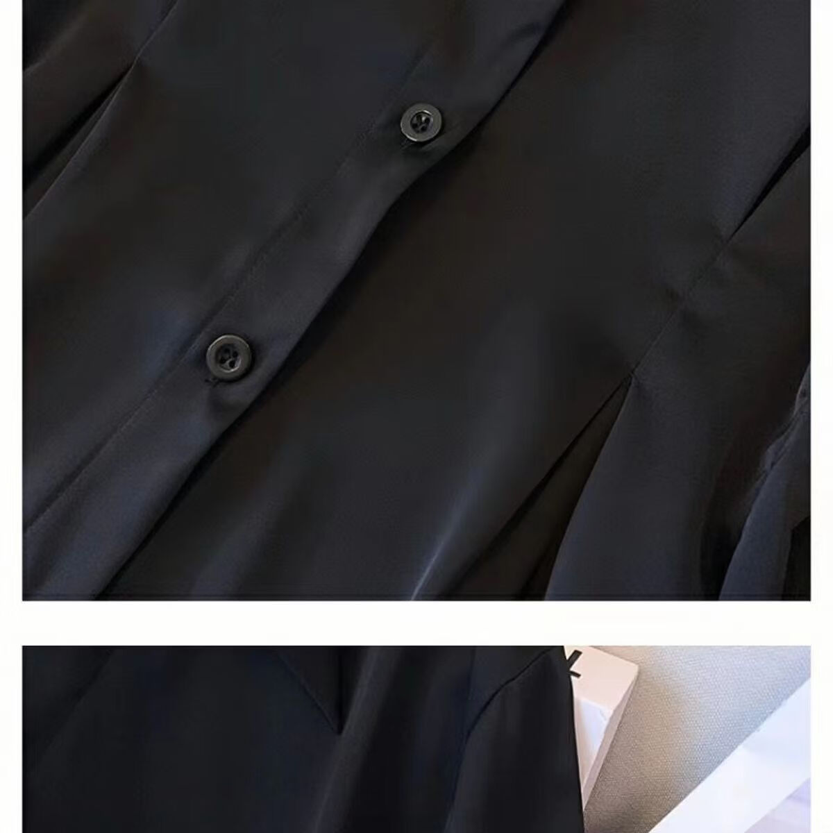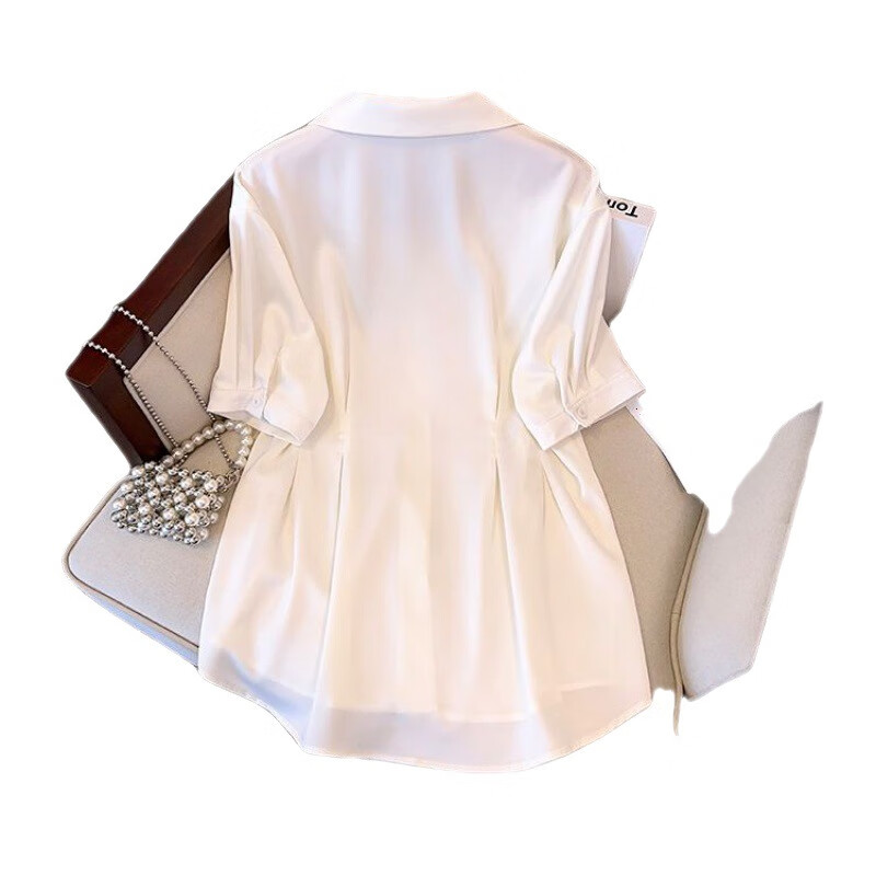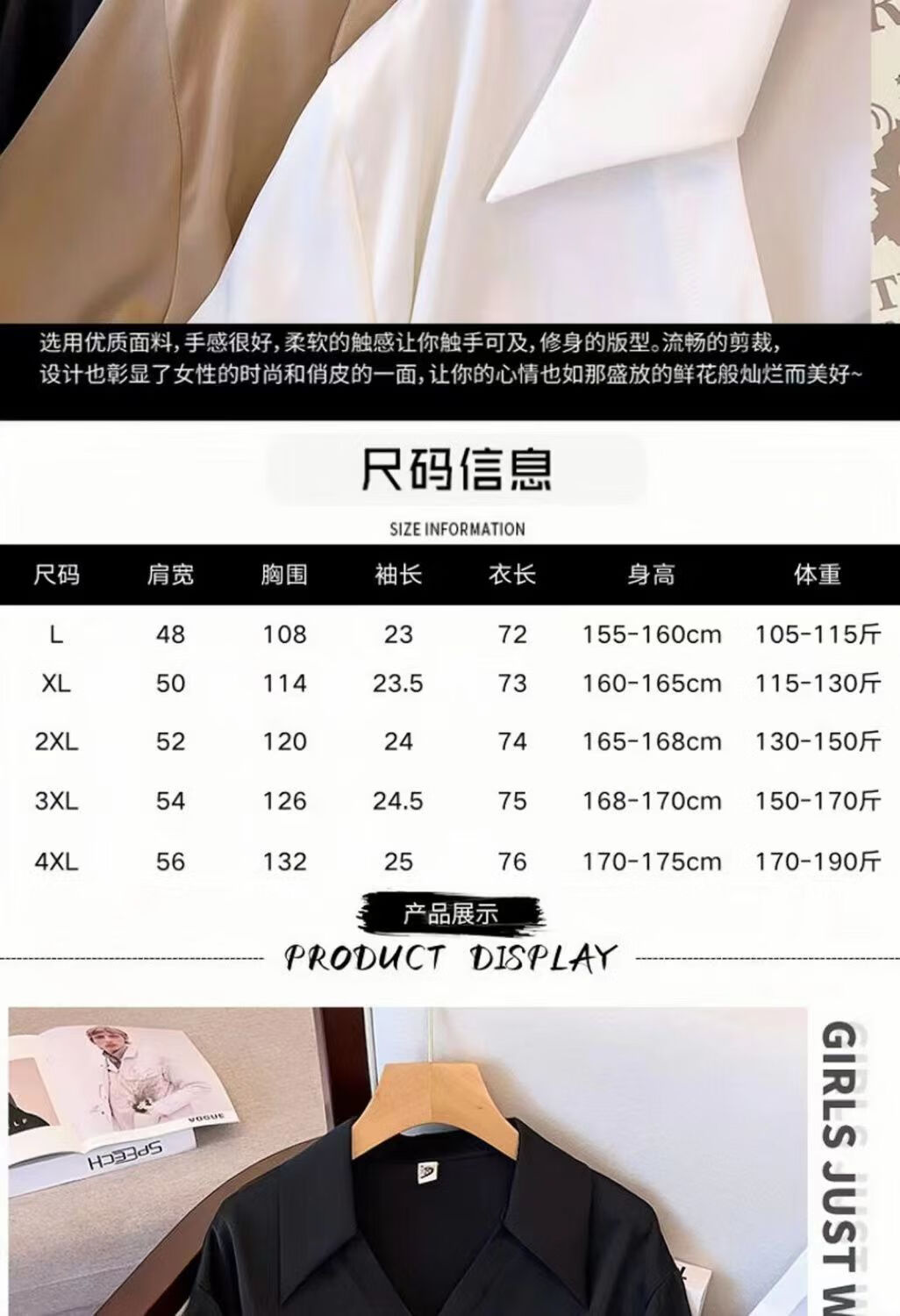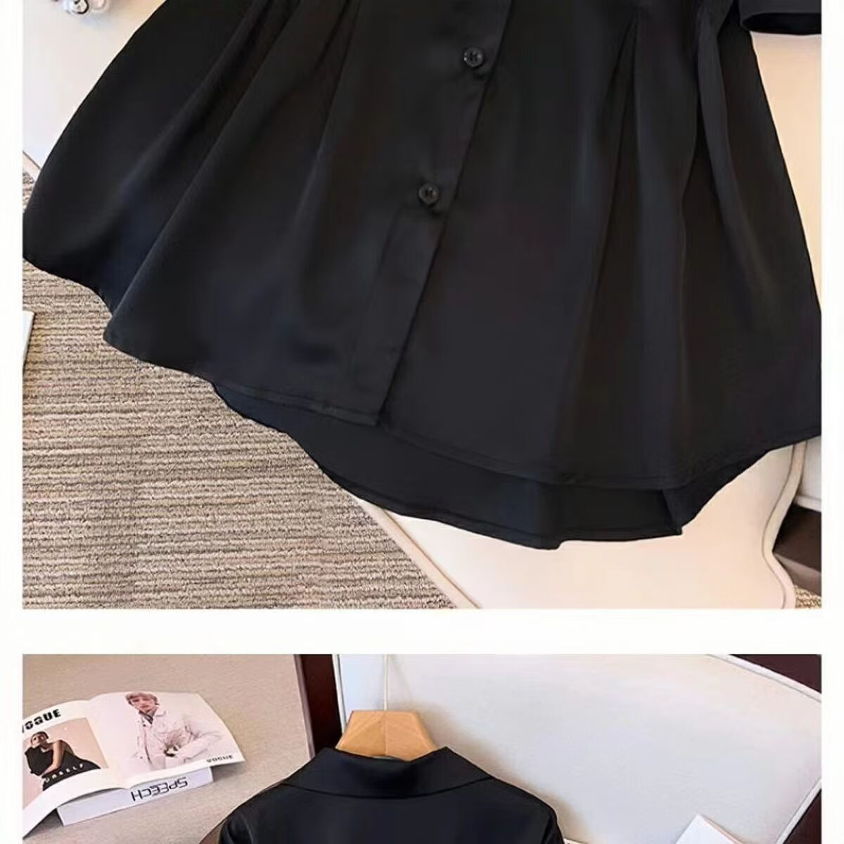 大码女装翻领收腰短袖衬衫女夏季新款胖妹妹时尚气质上衣潮妈妈装 黑色 L (115-130斤)