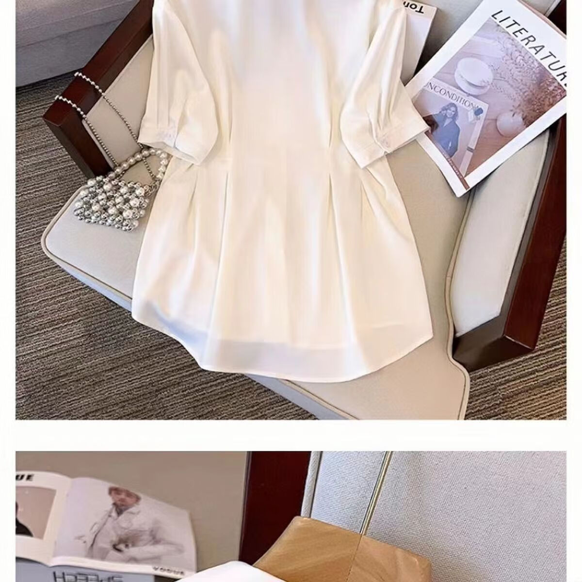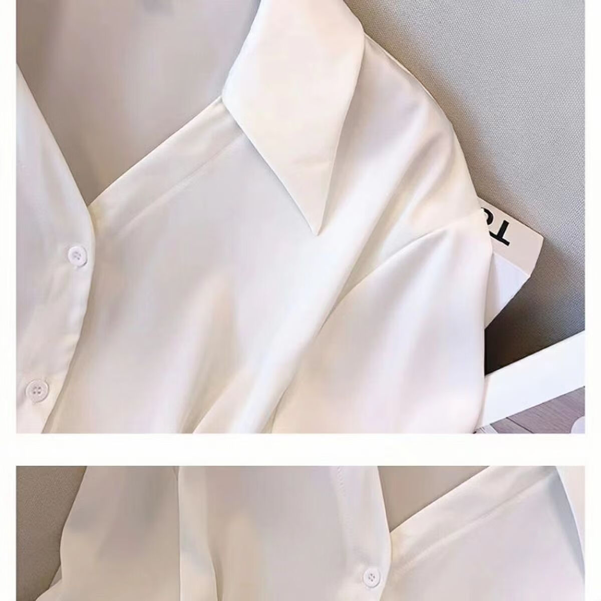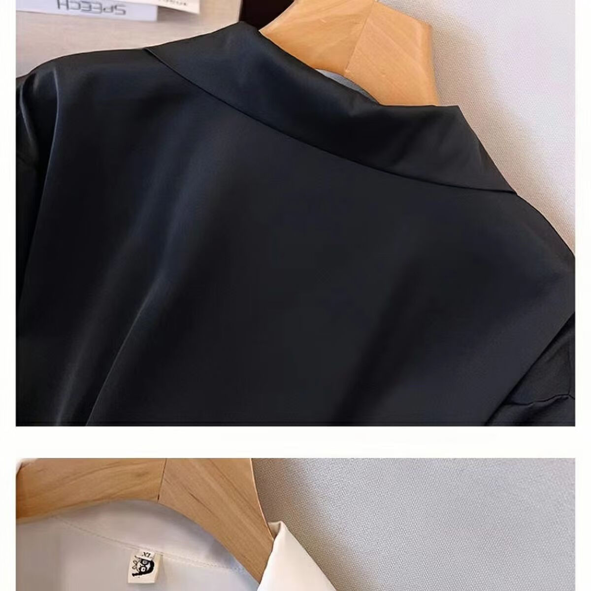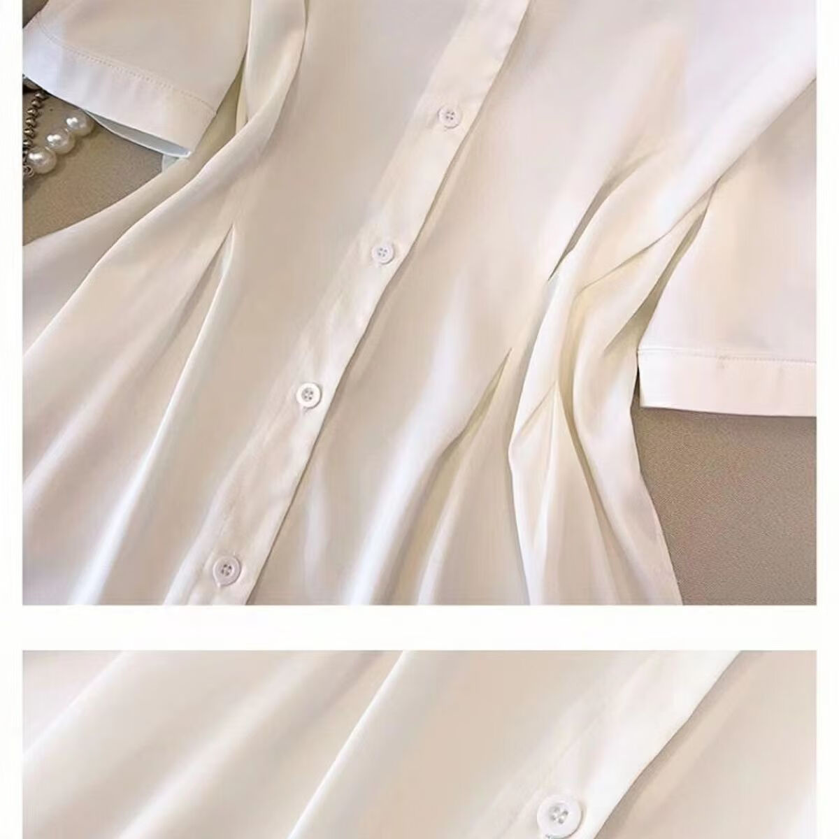 大码女装翻领收腰短袖衬衫女夏季新款胖妹妹时尚气质上衣潮妈妈装 黑色 L (115-130斤)
