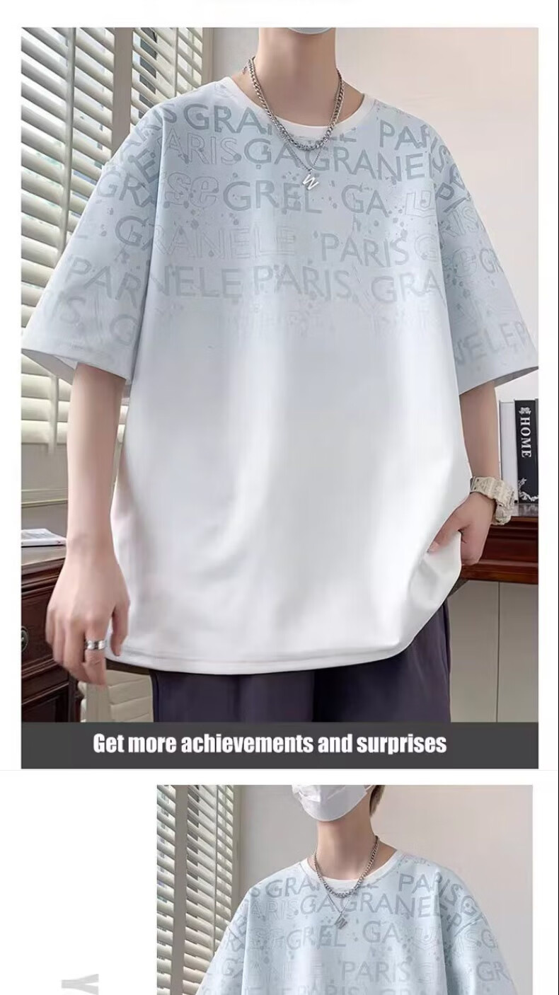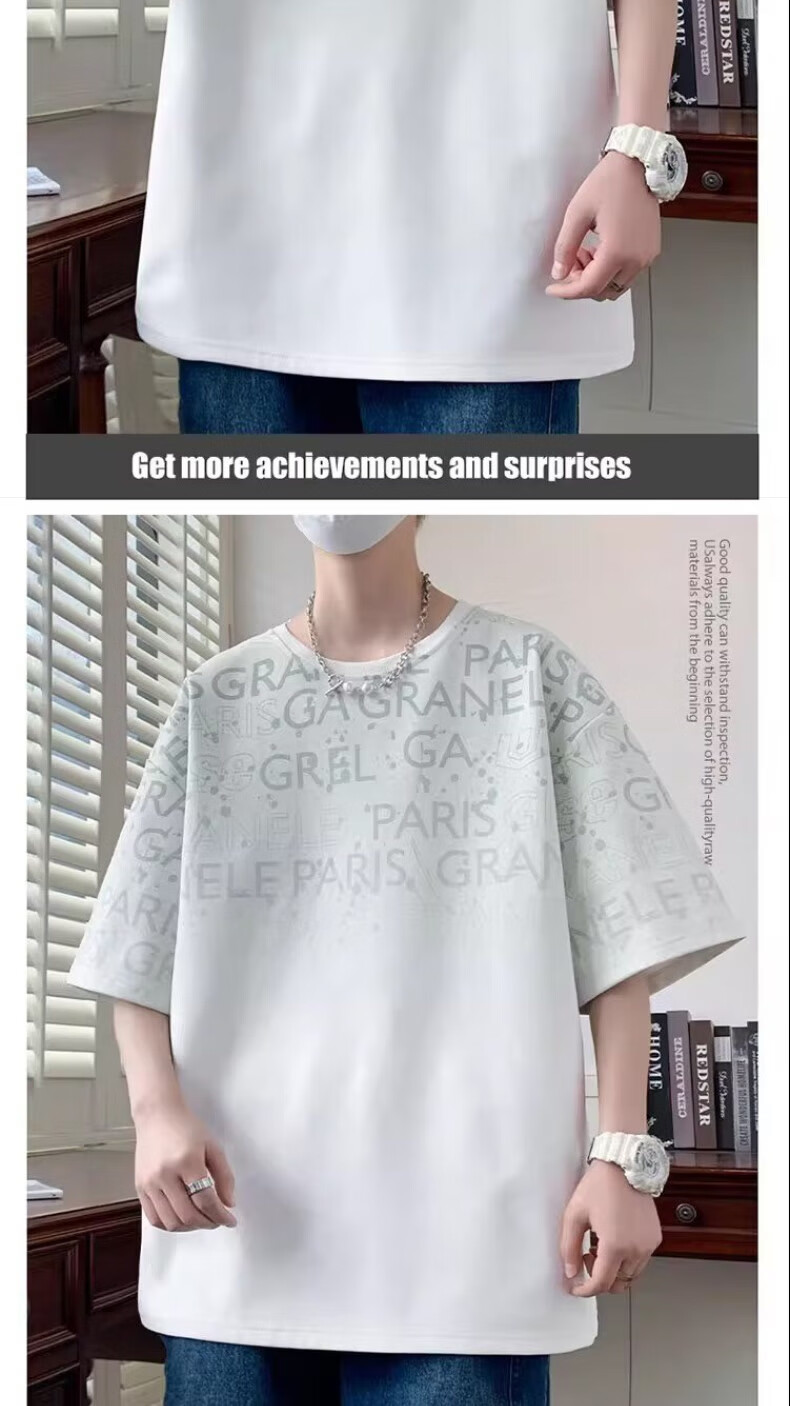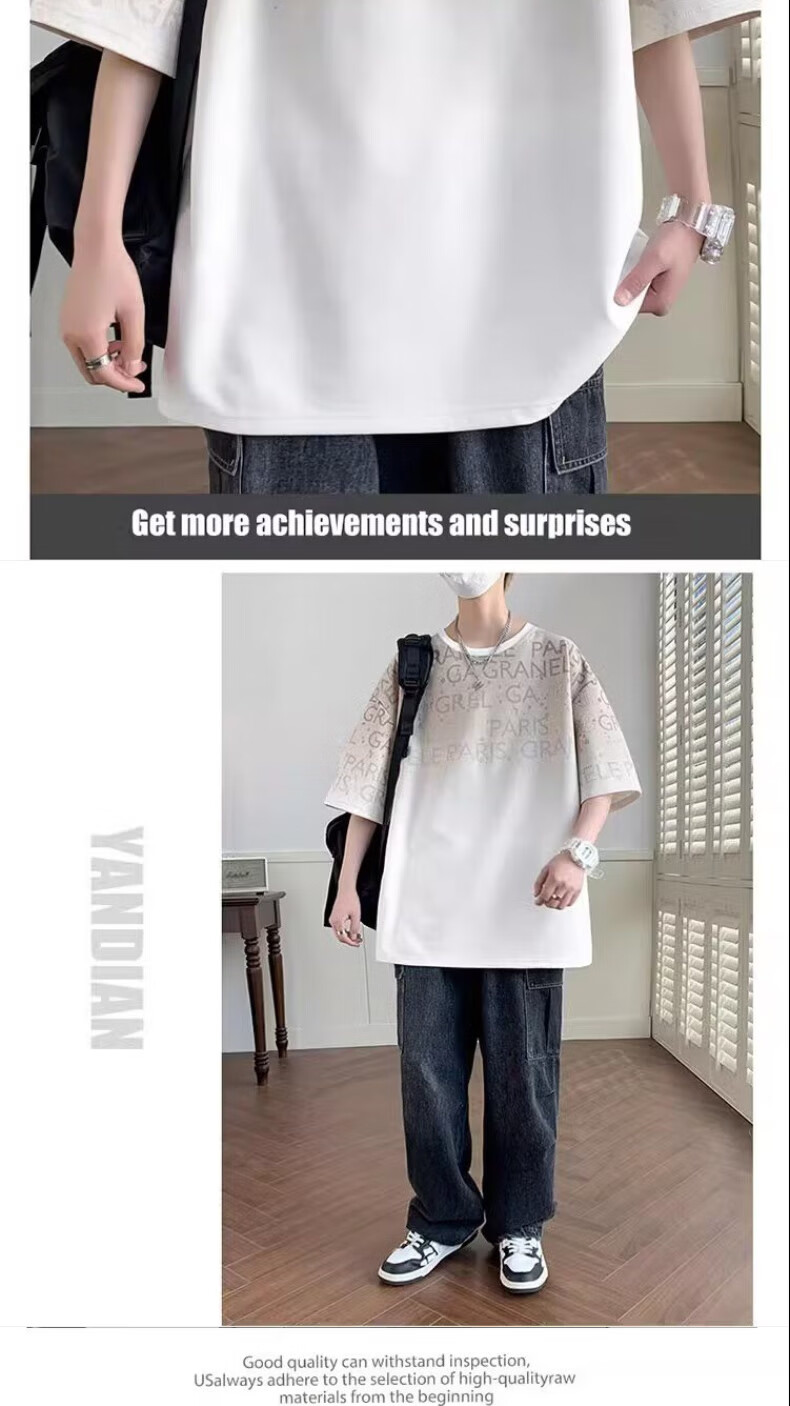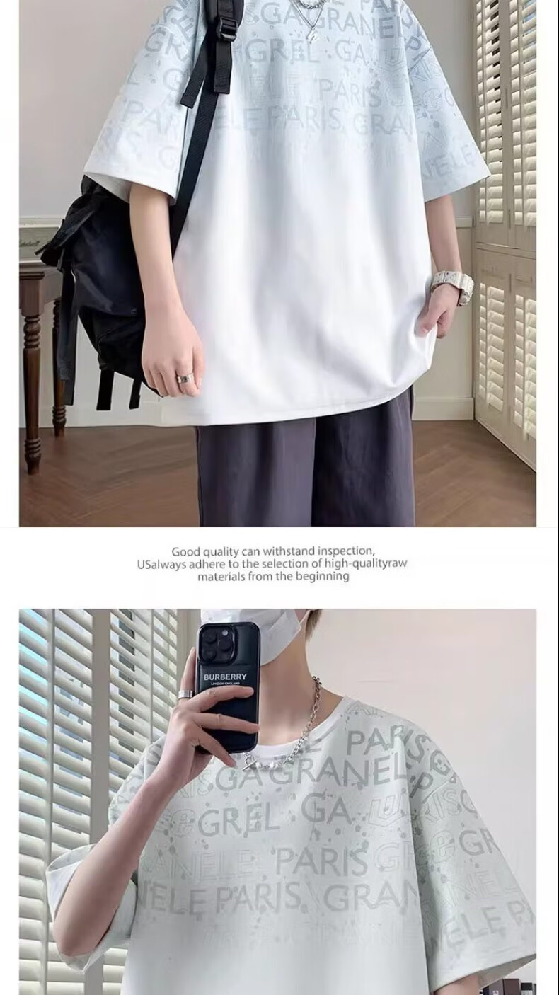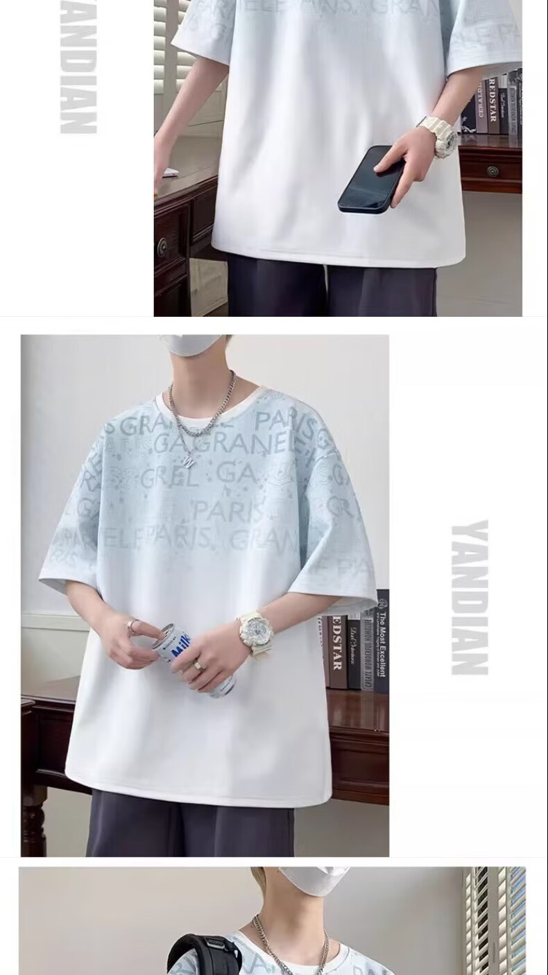 极巅【好物优选】短袖t恤男士2025夏季设计感青少年高中学生印花半袖 绿色 L