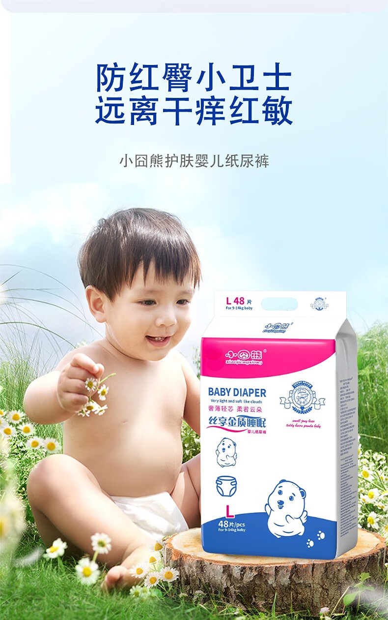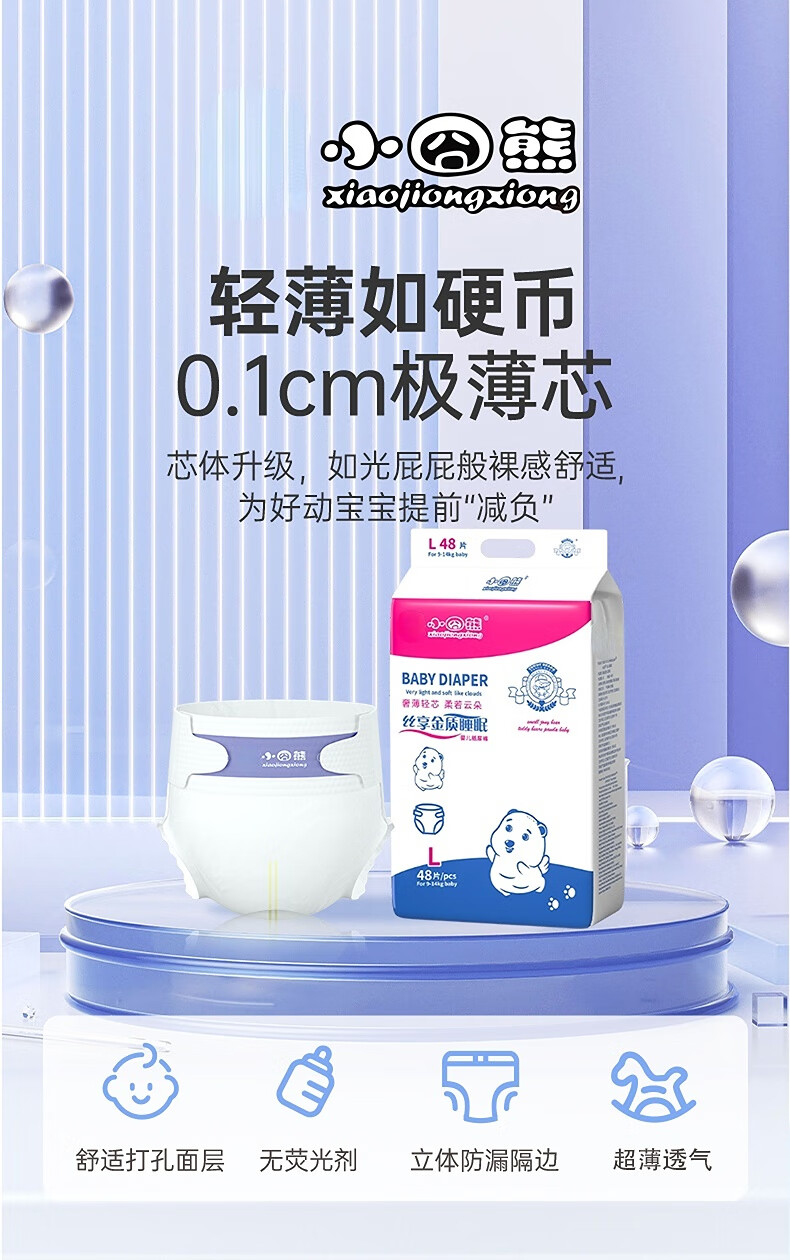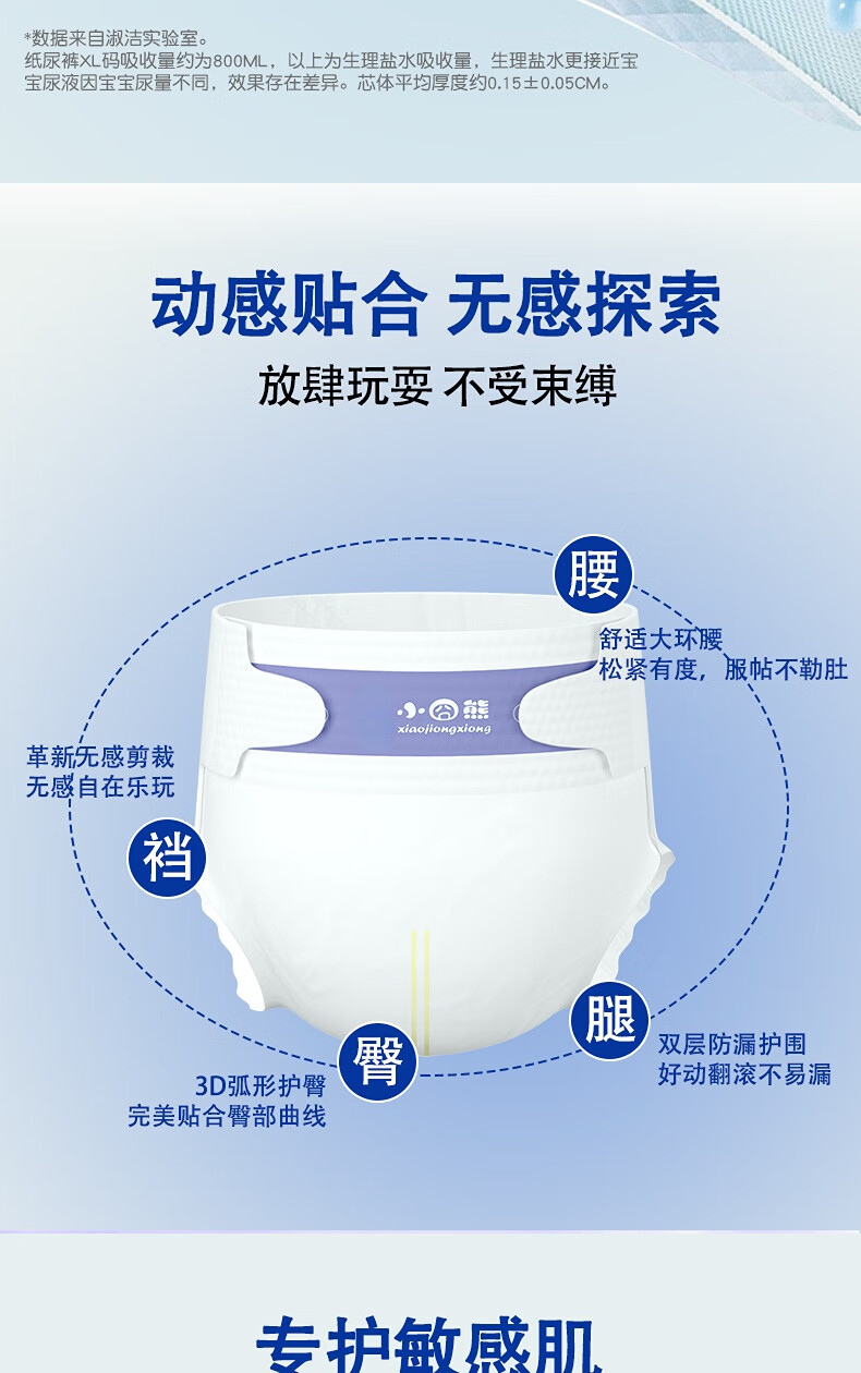 小囧熊薄款纸尿裤婴儿裤尿不湿超薄透气宝宝裸感腰围防敏防漏拉拉裤男女 拉拉裤XXXL号34片(32斤以上)