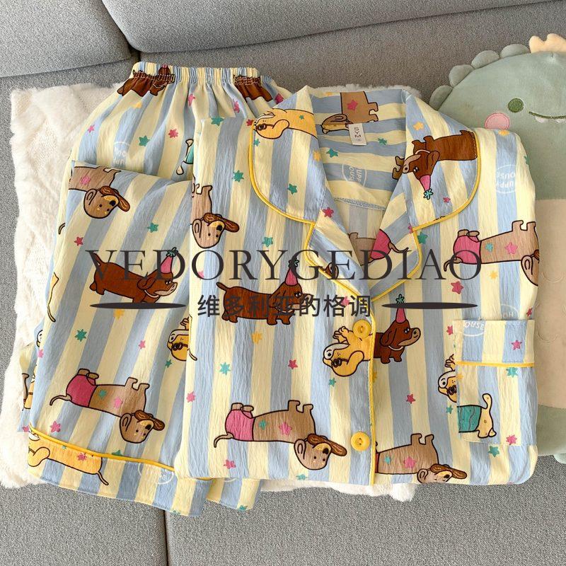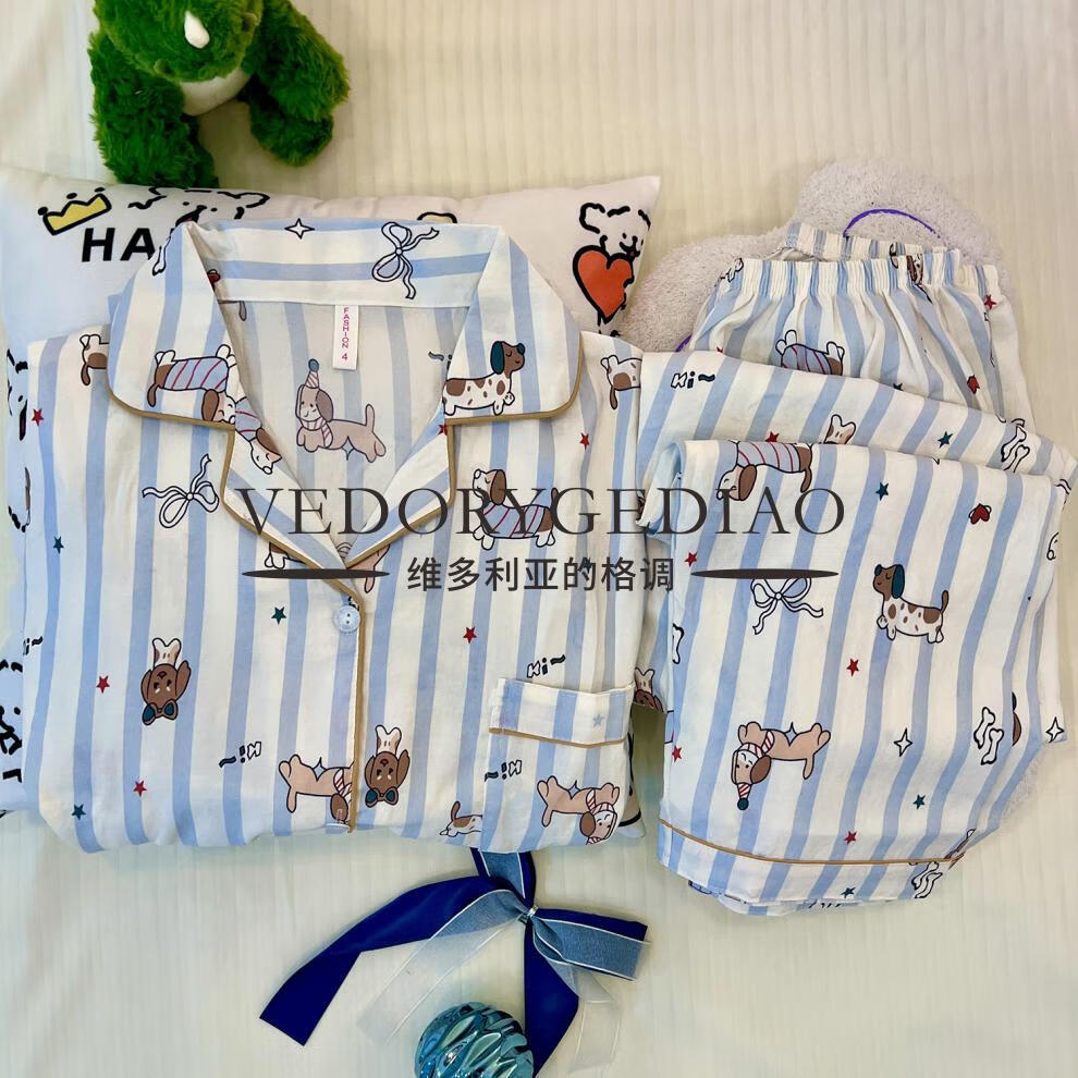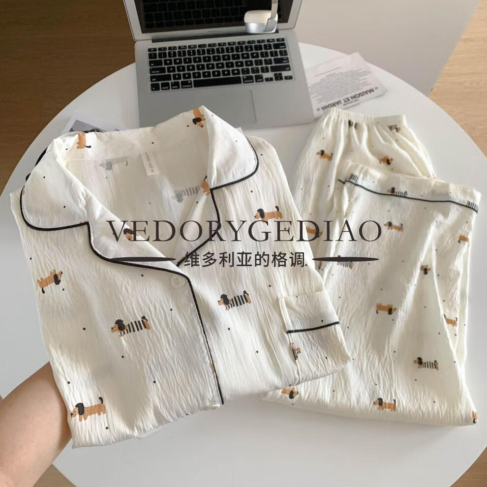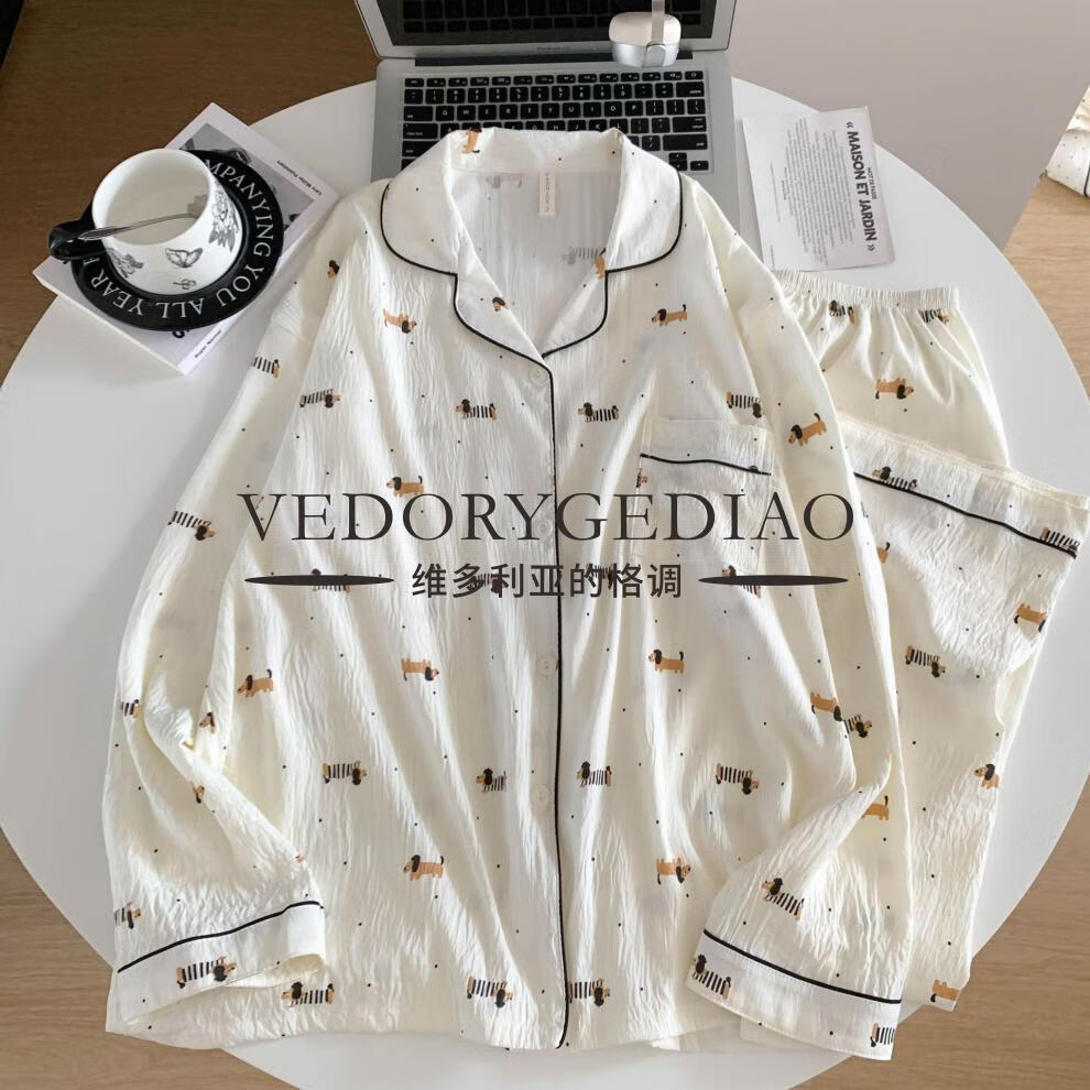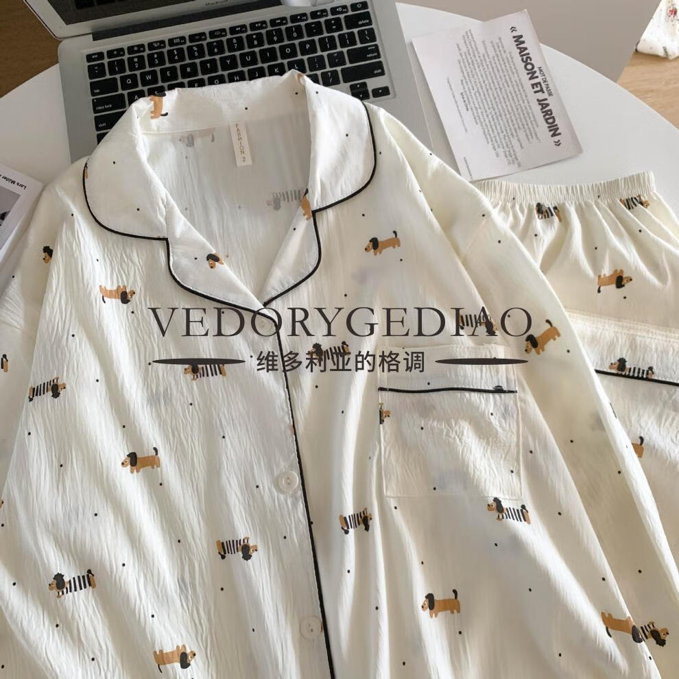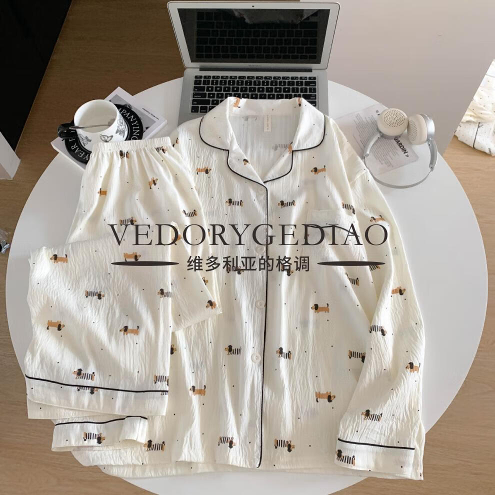 维多利亚的格调睡衣女春秋季长袖长裤2025新款云朵棉薄款可爱卡通夏天套装家居服 8835波点腊肠狗--云朵棉长袖长裤 M (80-95斤)
