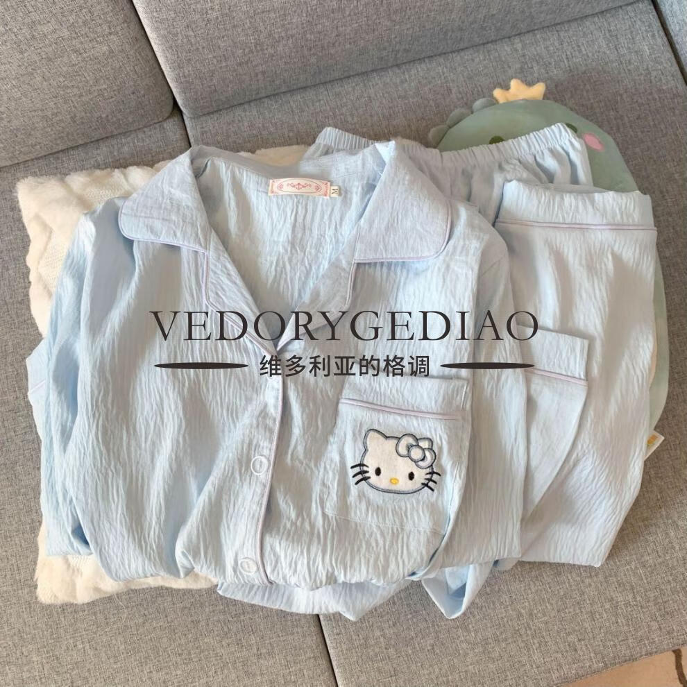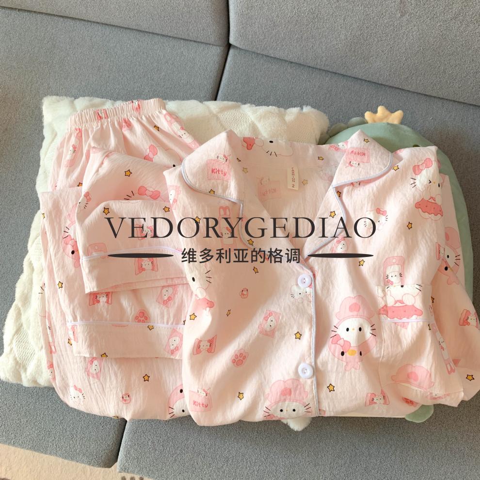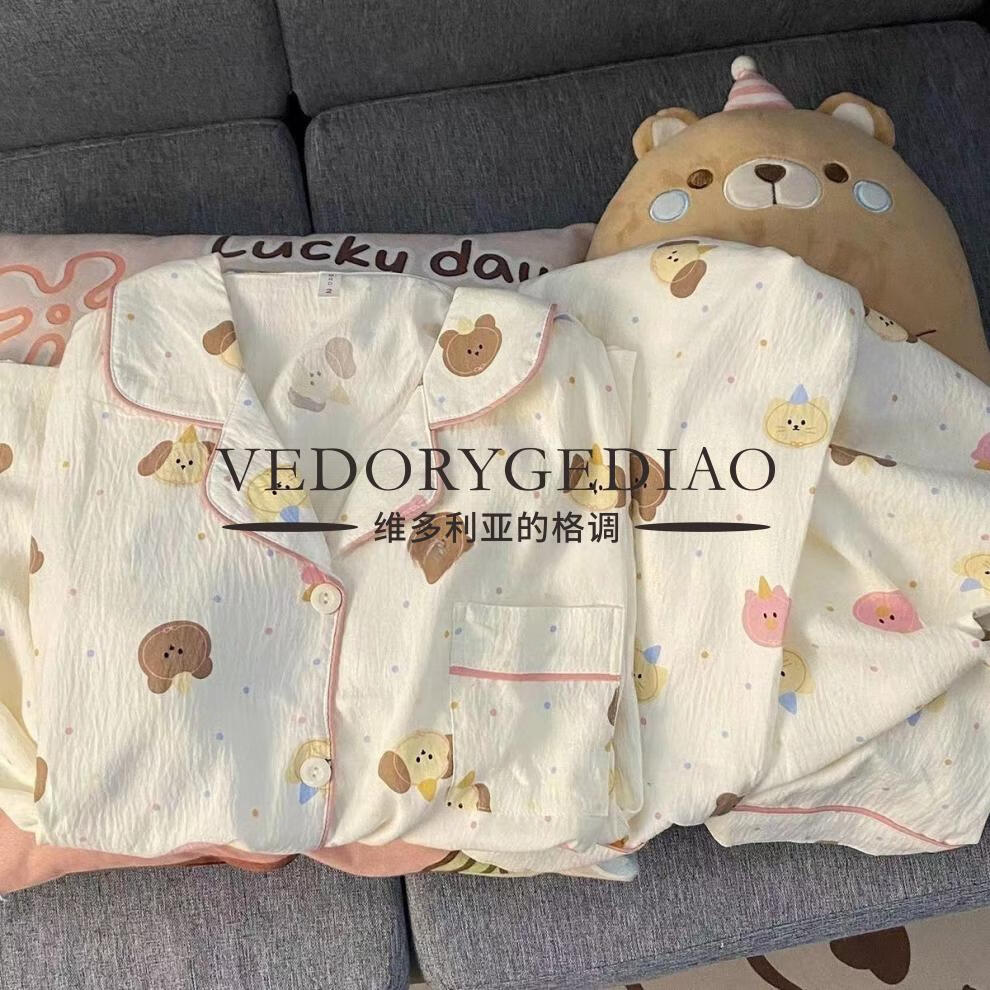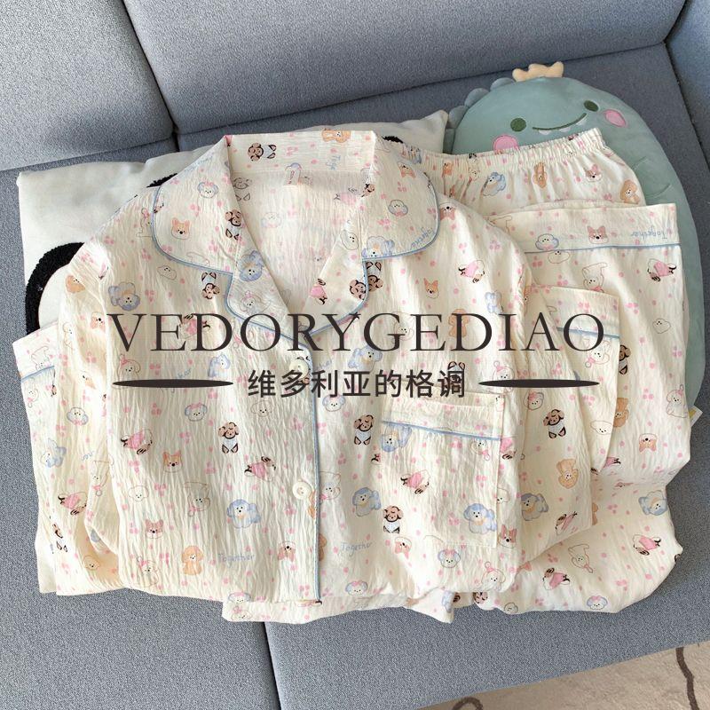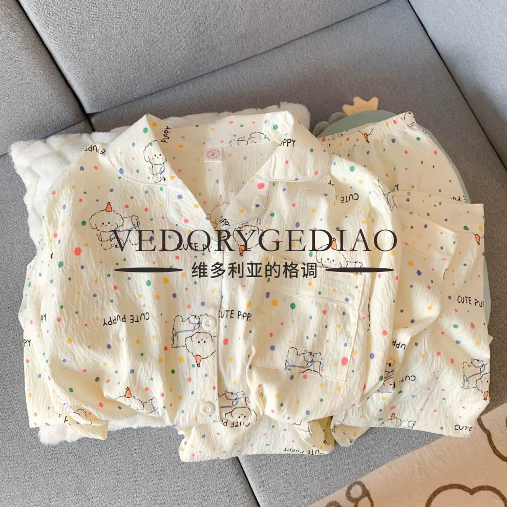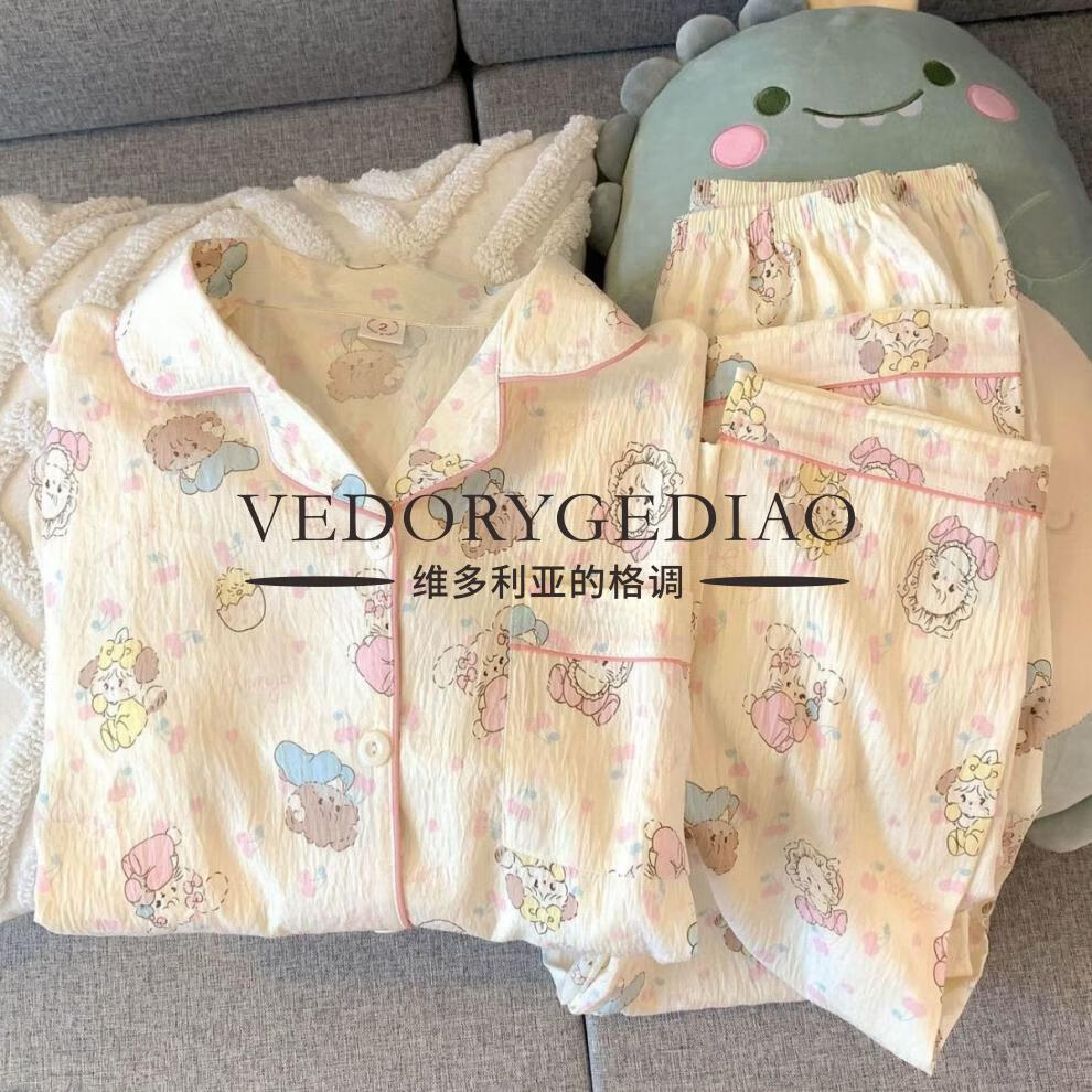 维多利亚的格调睡衣女春秋季长袖长裤2025新款云朵棉薄款可爱卡通夏天套装家居服 8835波点腊肠狗--云朵棉长袖长裤 M (80-95斤)