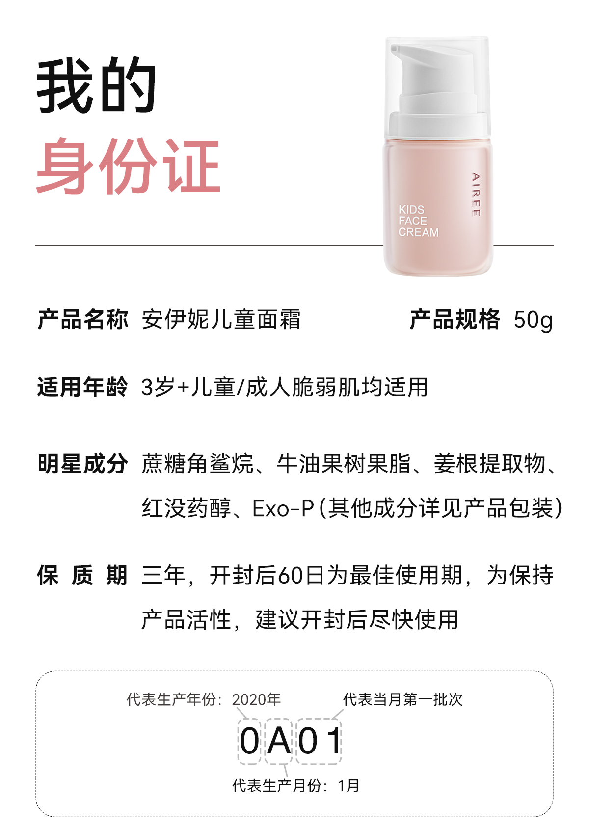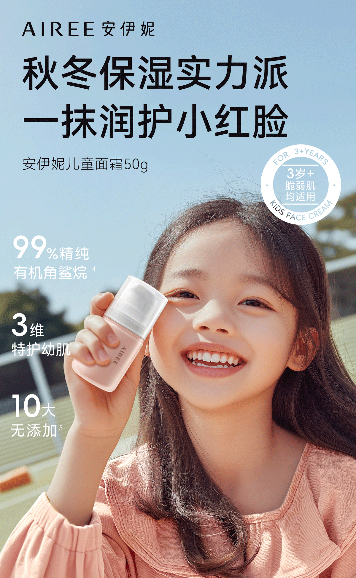 安伊妮(AIREE)儿童水感修护霜红痒敏急救48小时保湿不黏腻四季通用 【水润保湿】儿童面霜50g