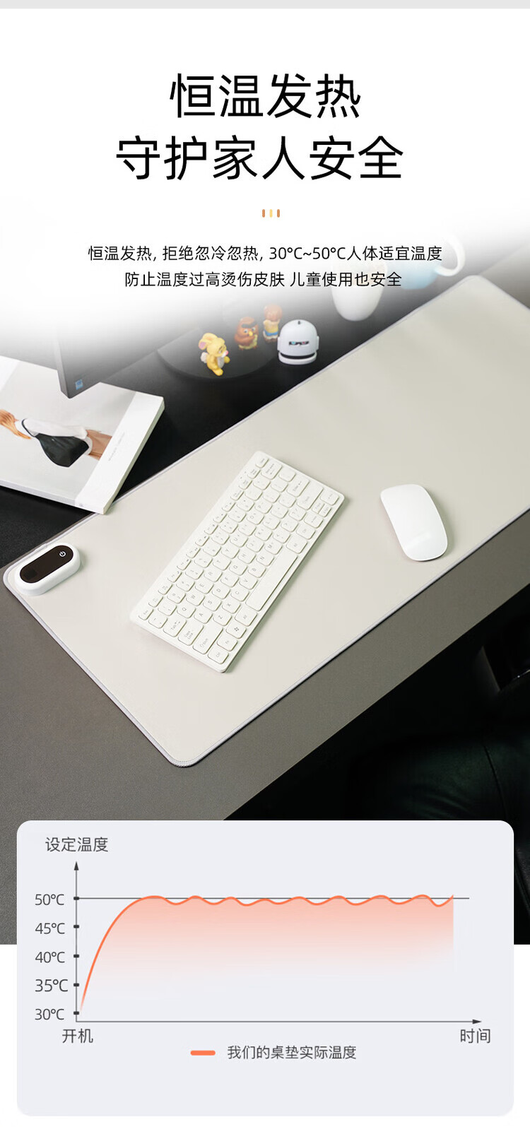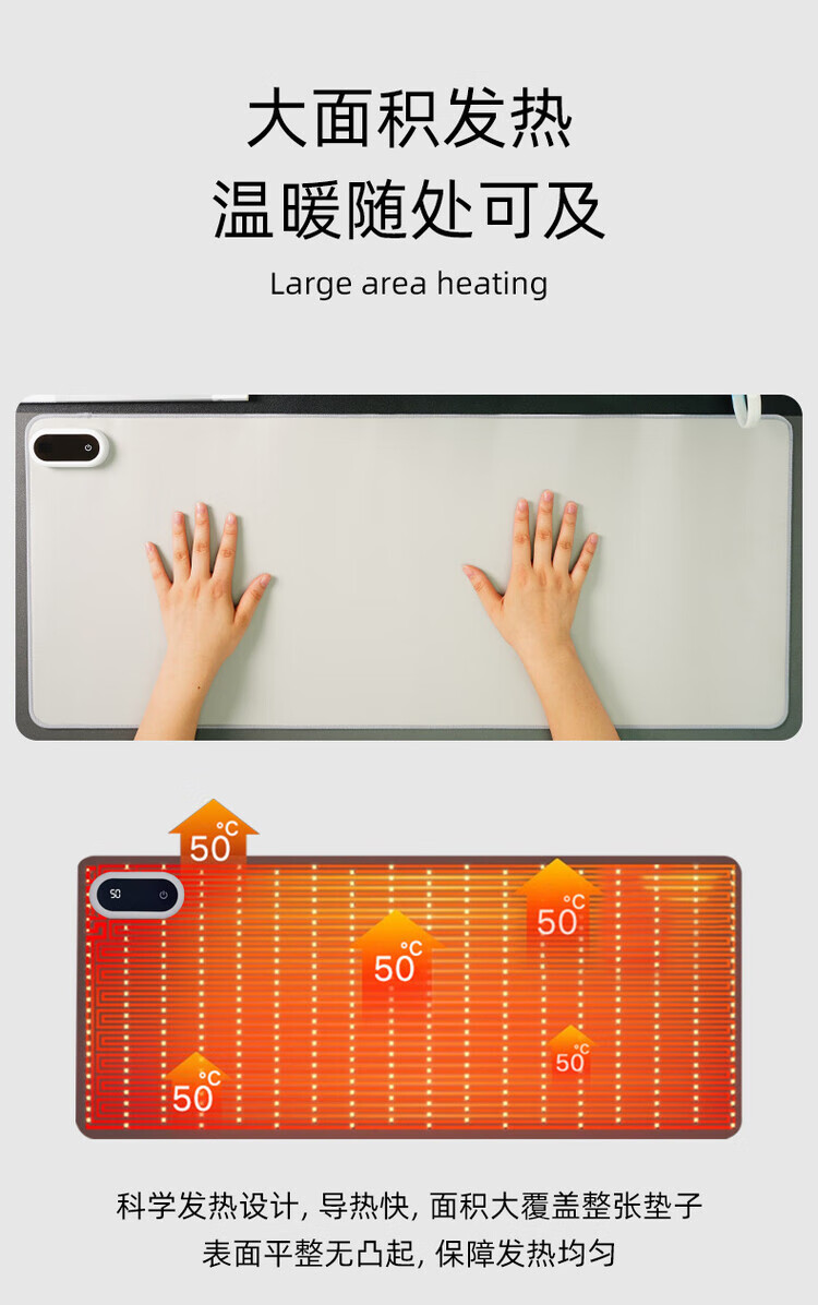 户璃德国鼠标垫加热大号办公室桌面发热桌垫发热垫学生办公室适用电脑桌面暖手超大暖桌垫 旗舰灰【80*33cm触控数显+5档调温+4h定时