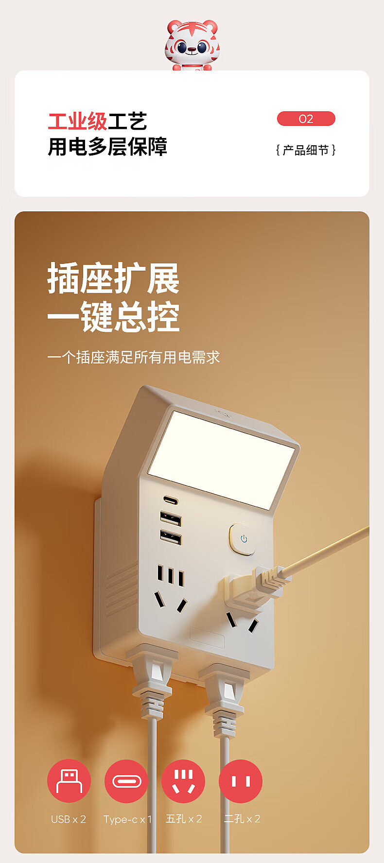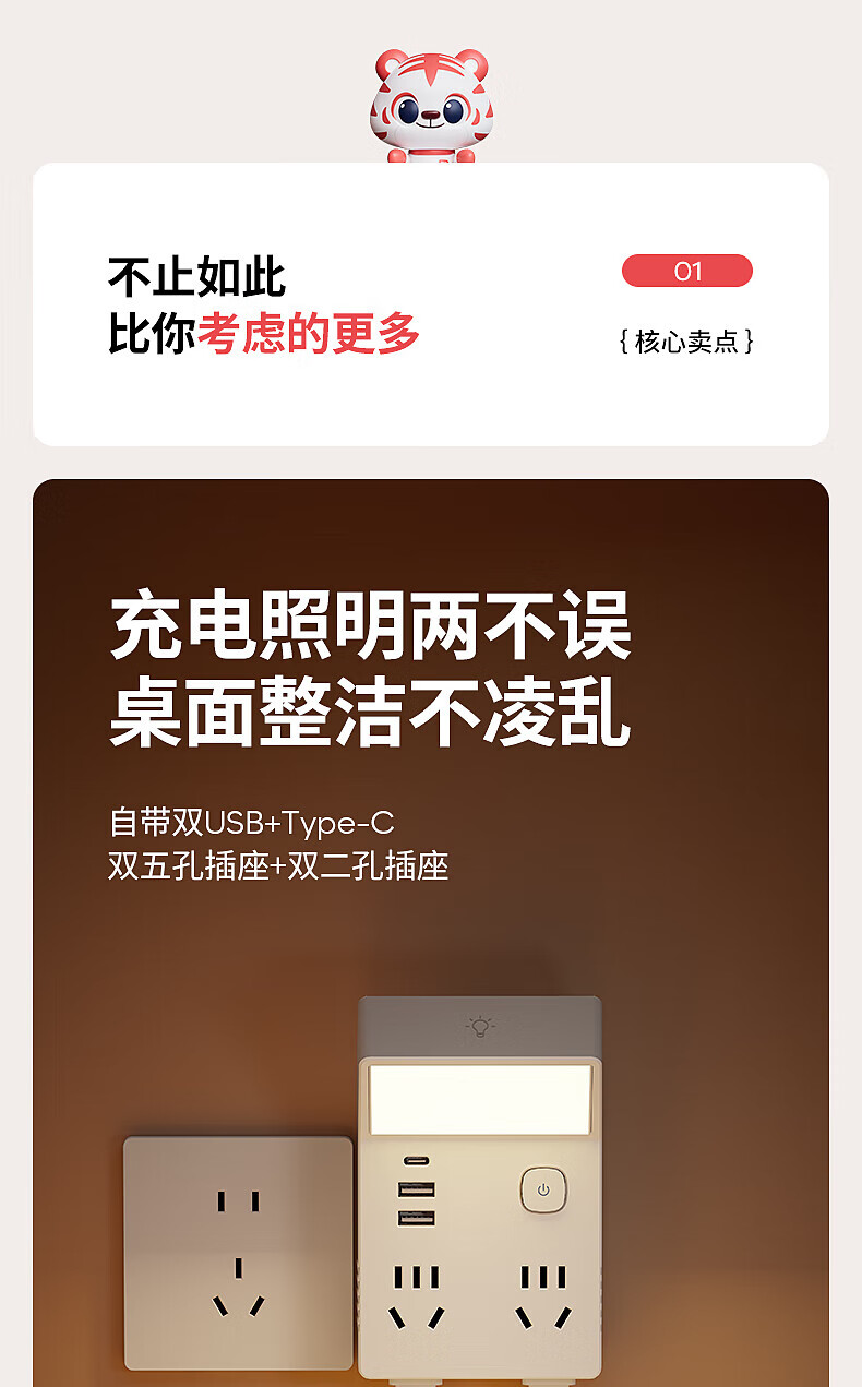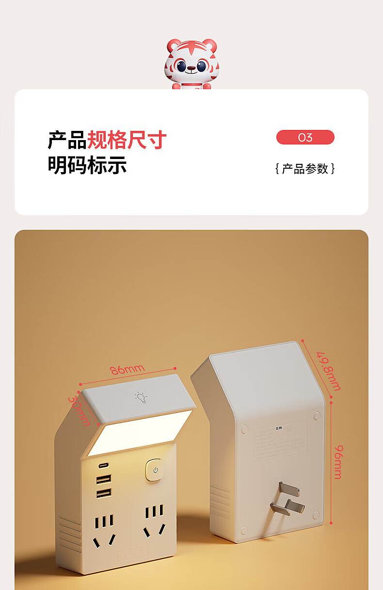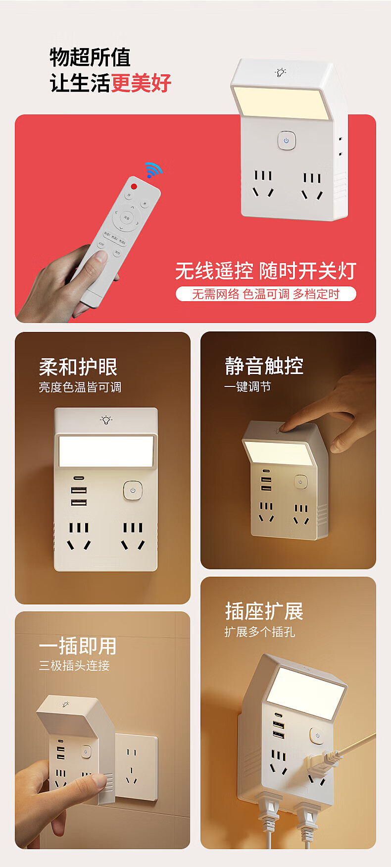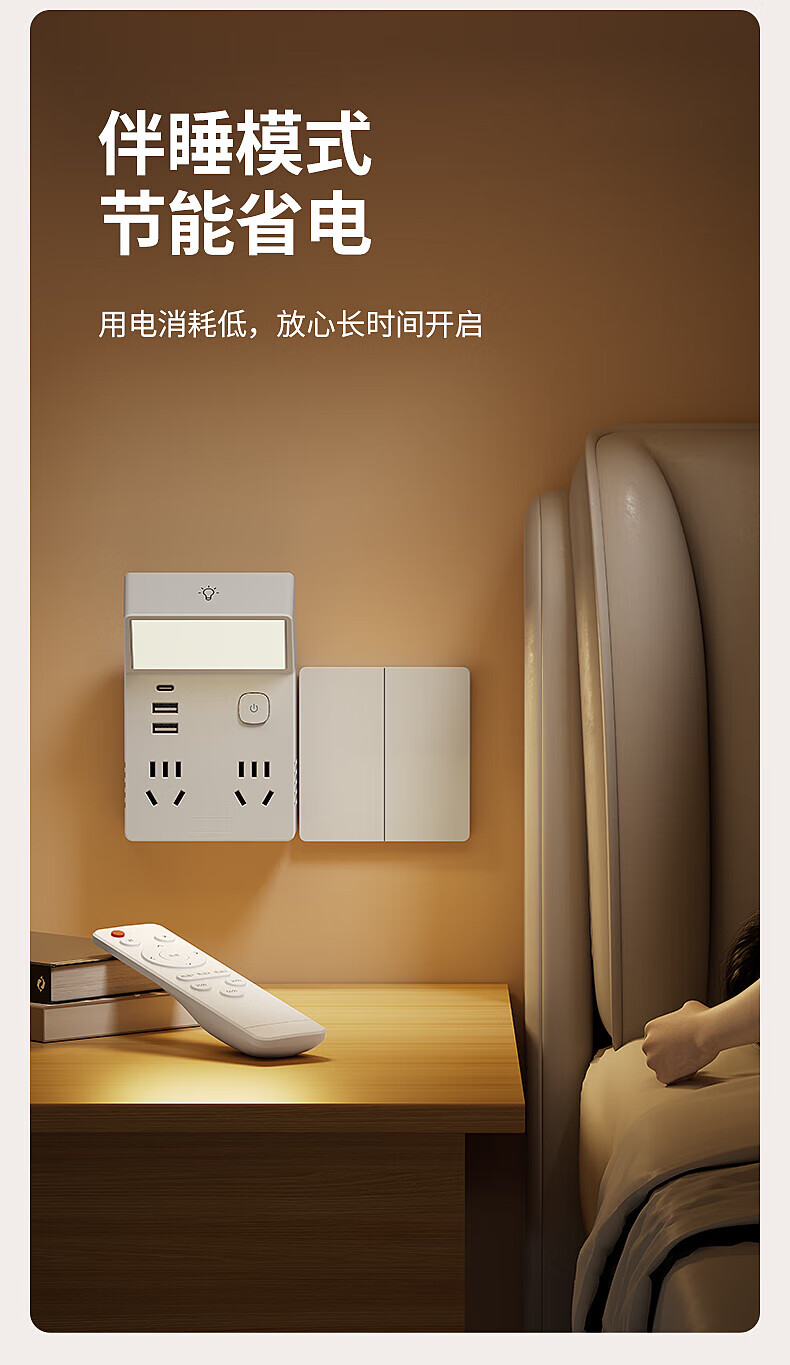 国际电工(FDD)86型直插式扩展插座一转四床头书桌多功能拓展插座带夜灯转换插头 白色一转四20W快充+普通遥控器
