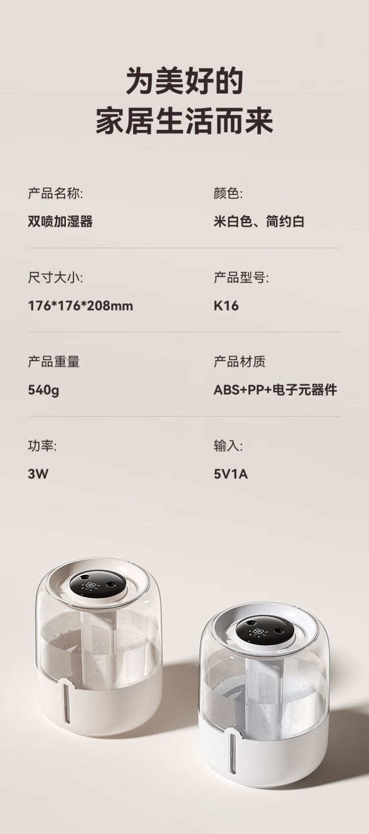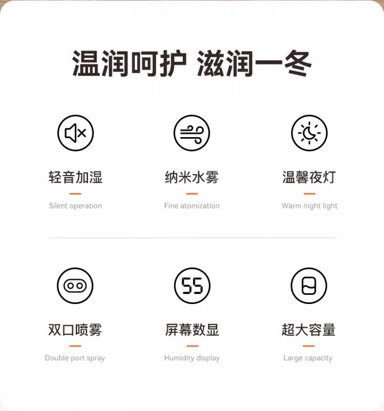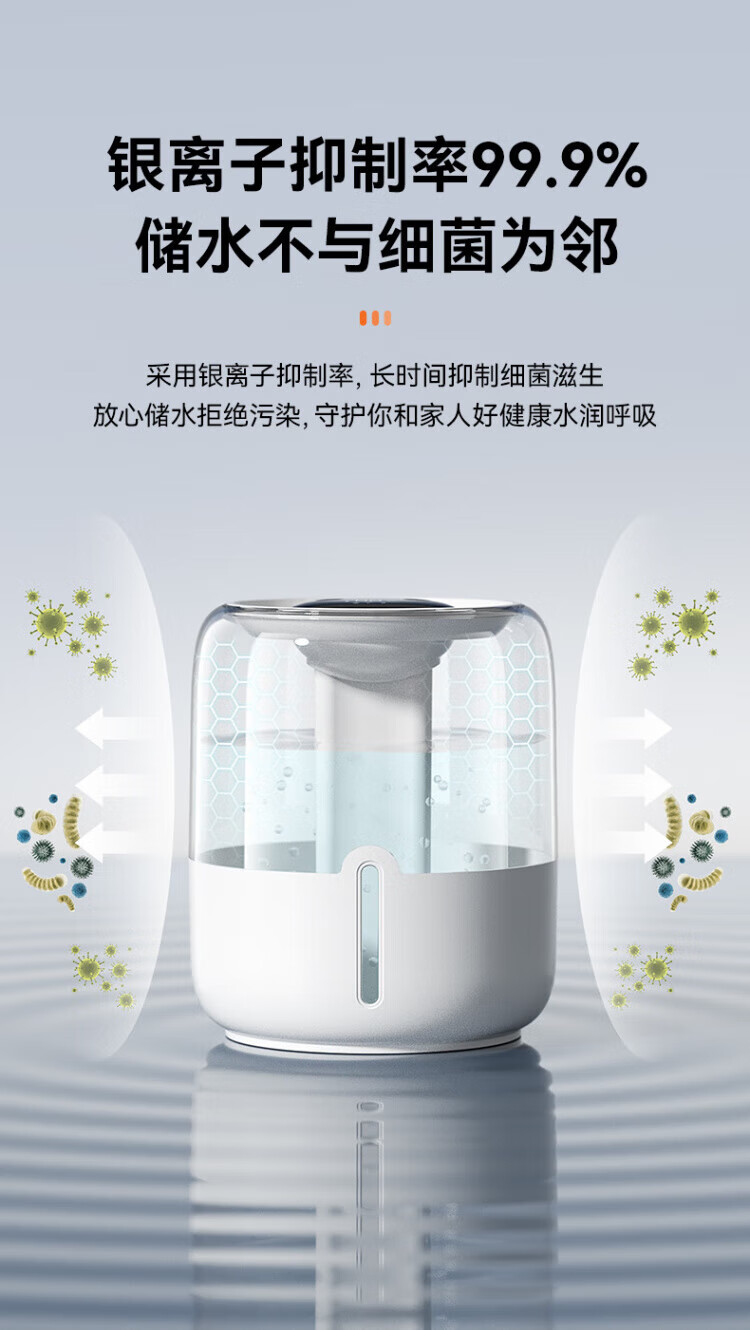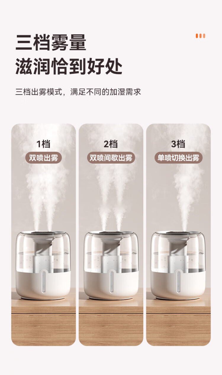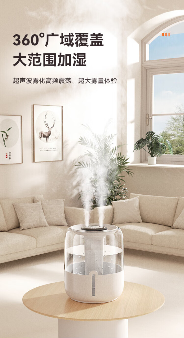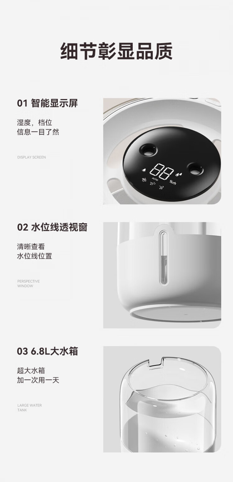 JFHSBS【德国】加湿器空气净化器一体鼻炎专用家用孕妇婴儿卧室超静音除菌USB大喷雾家用办公室桌面 【6.8L数显款-米白】负离子加湿 双喷出雾+夜灯+超大容量