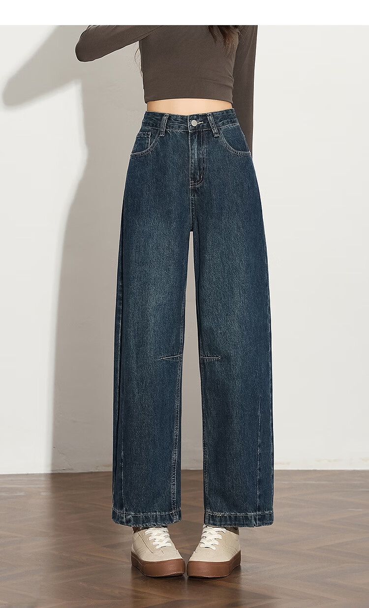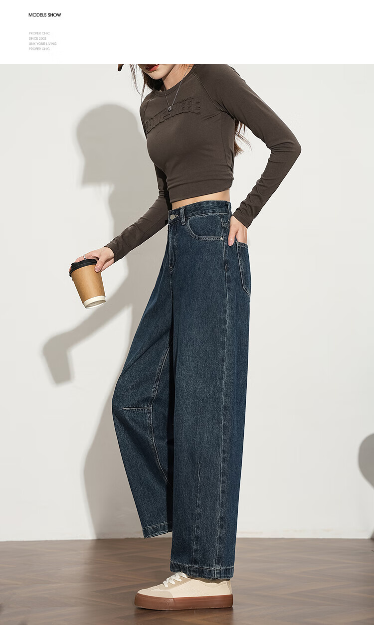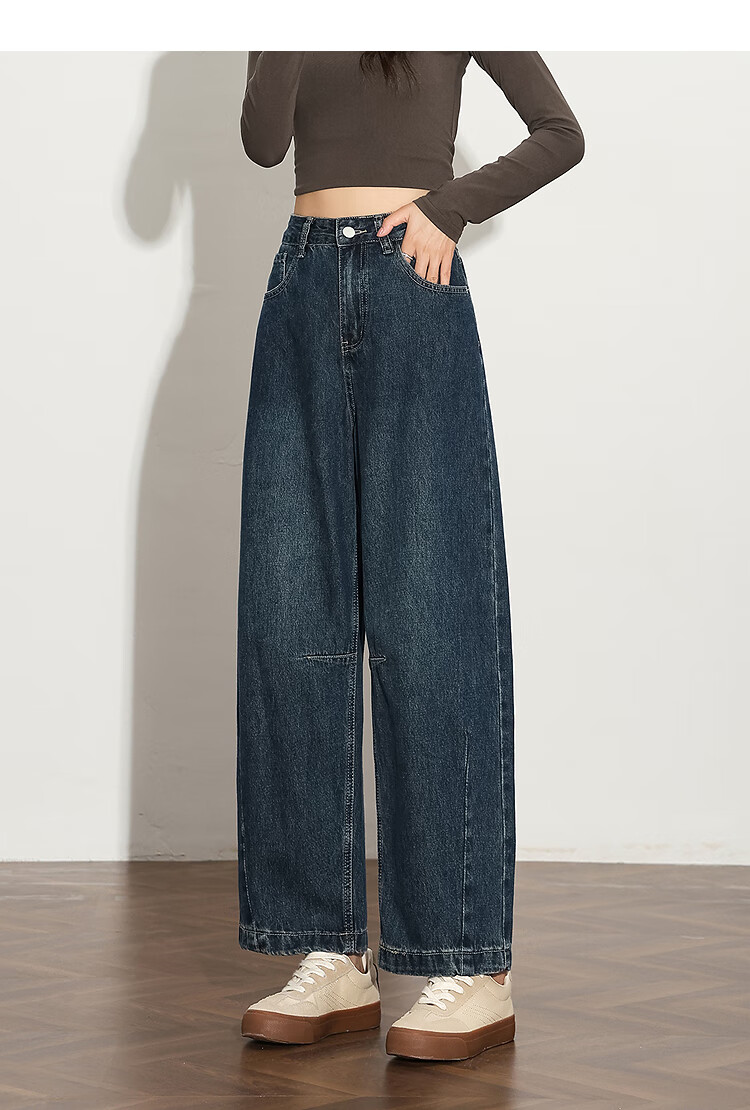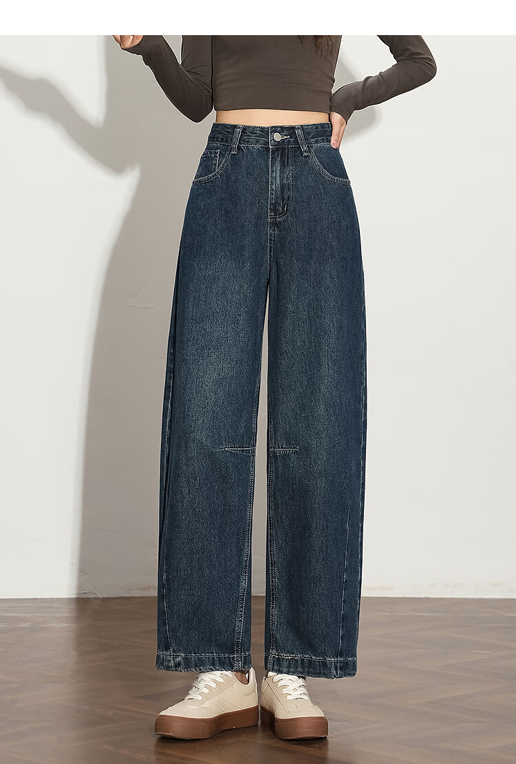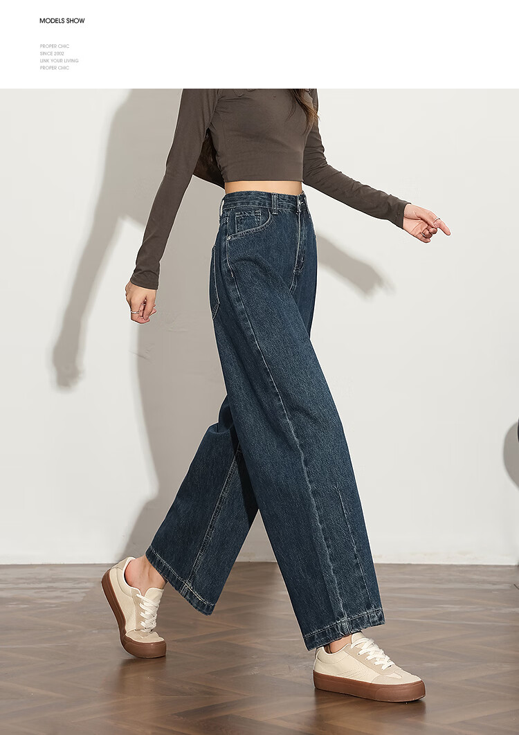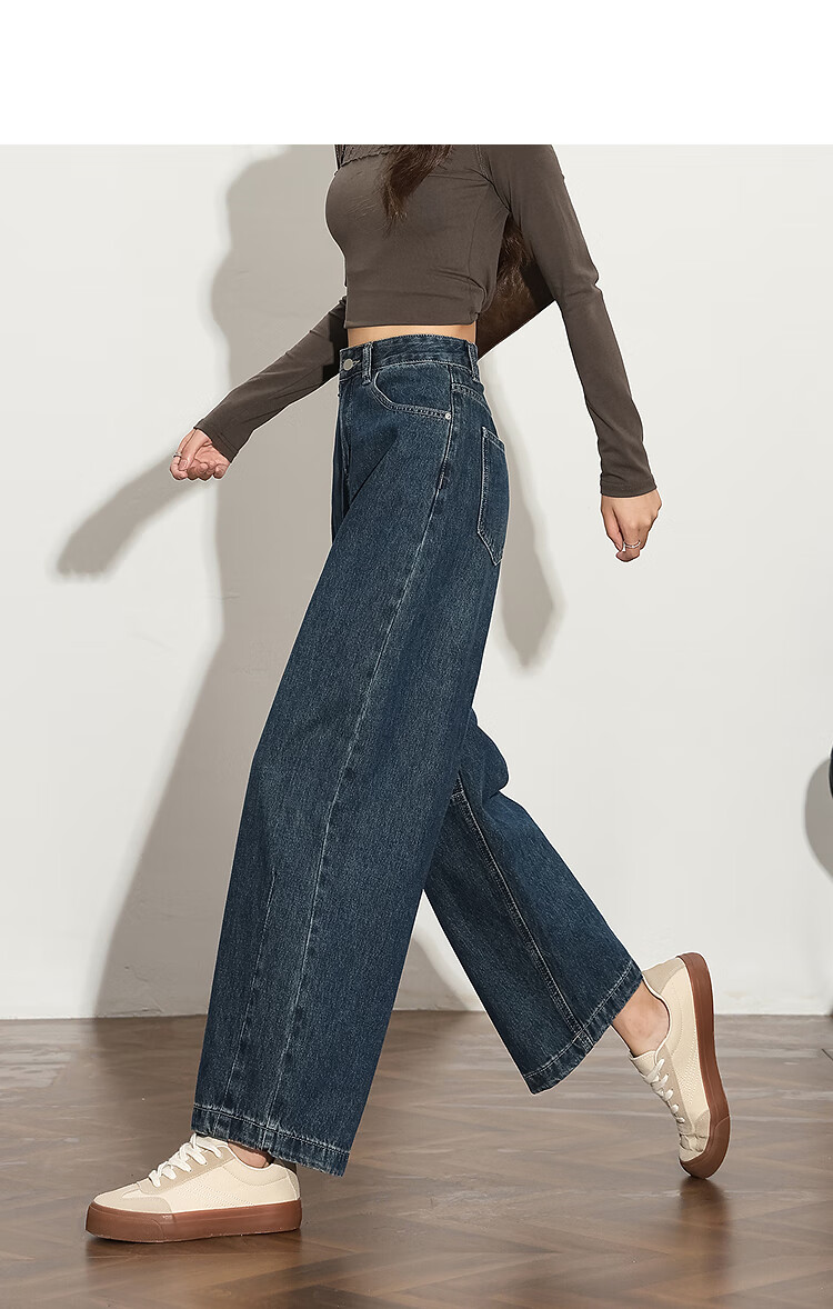 西遇(Westlink)复古拼接水洗牛仔裤女宽松阔腿裤 深蓝色(H0051280) 26 (155)