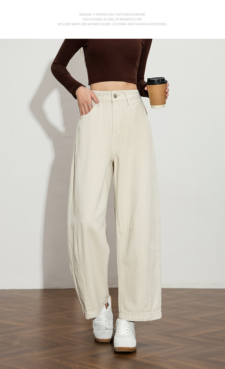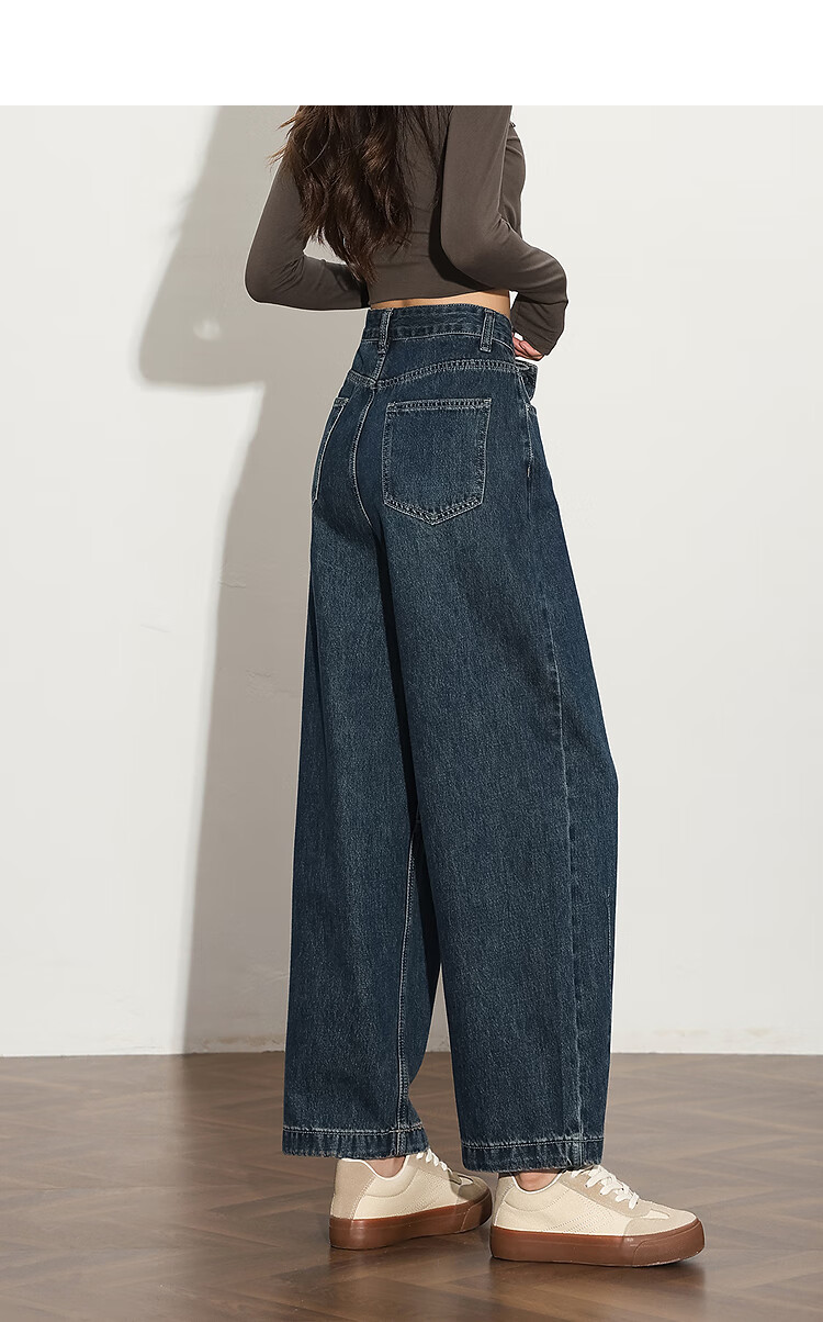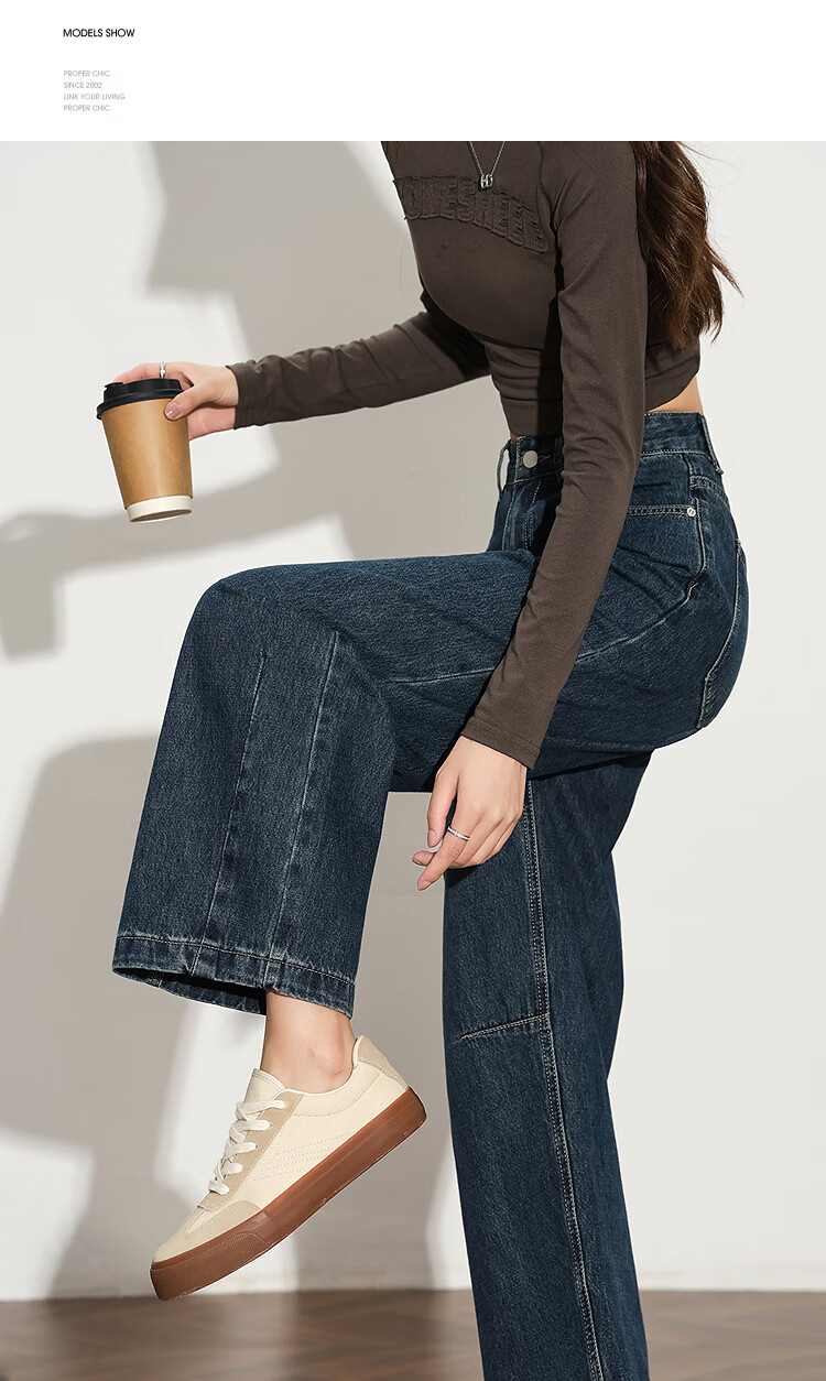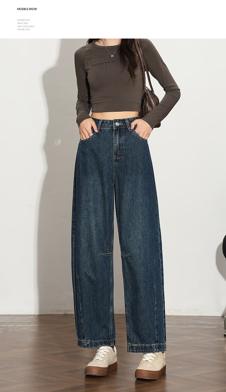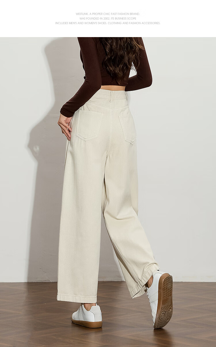 西遇(Westlink)复古拼接水洗牛仔裤女宽松阔腿裤 深蓝色(H0051280) 26 (155)