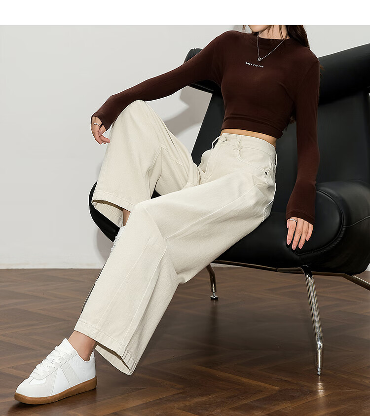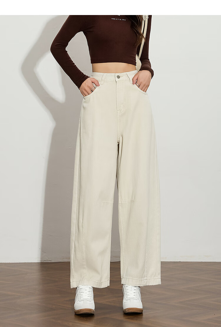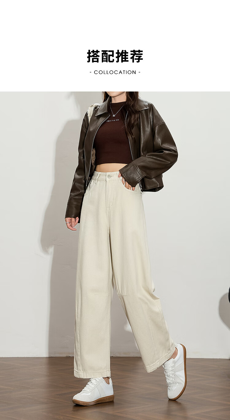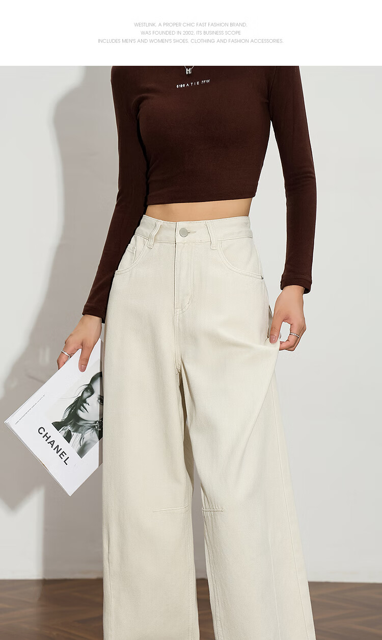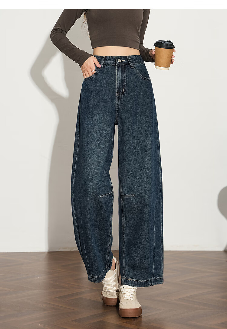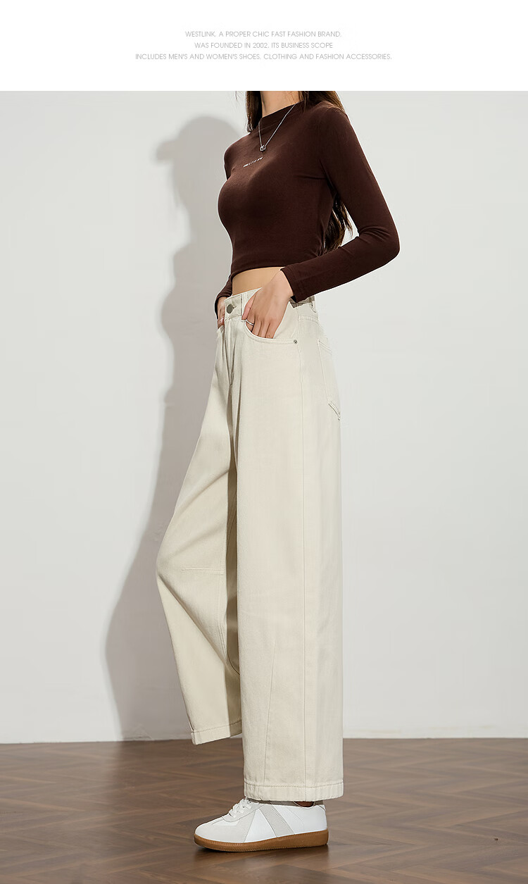 西遇(Westlink)复古拼接水洗牛仔裤女宽松阔腿裤 深蓝色(H0051280) 26 (155)