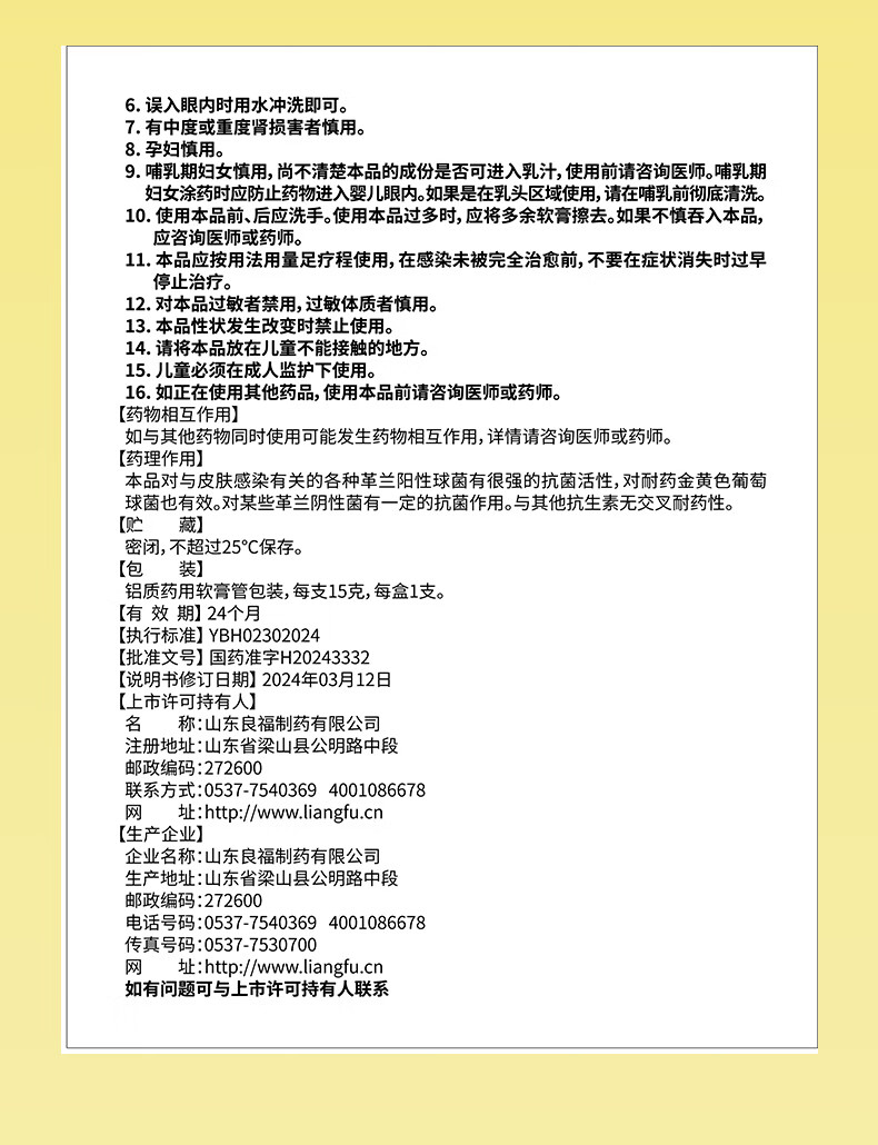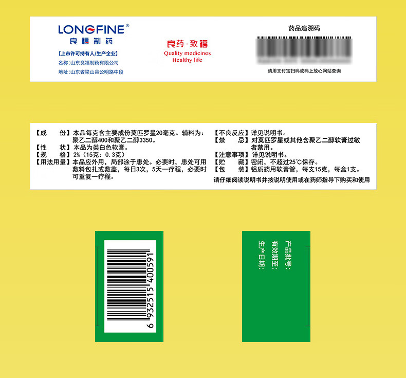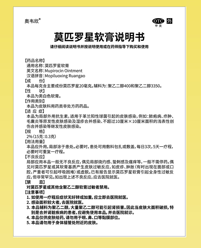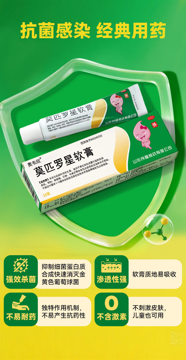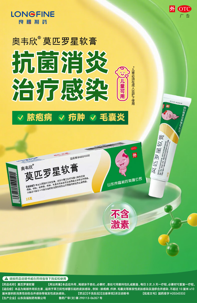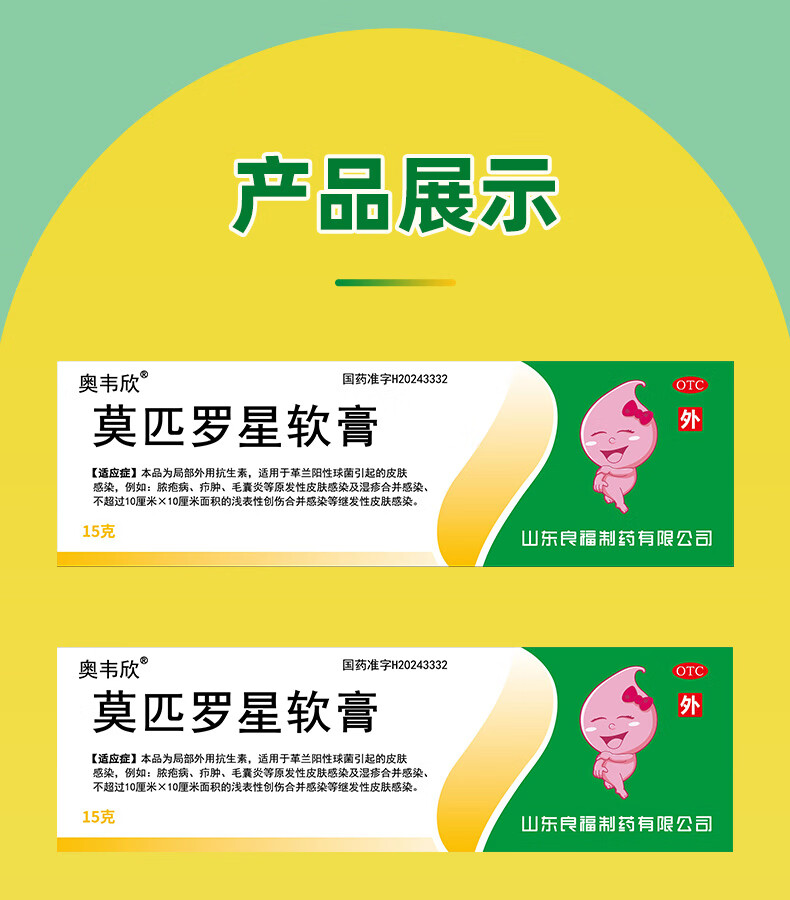 良福制药 良福制药 奥韦欣 莫匹罗星软膏2%*15g 脓疱病、疖肿、毛囊炎等原发性皮肤感染及湿疹合并感染