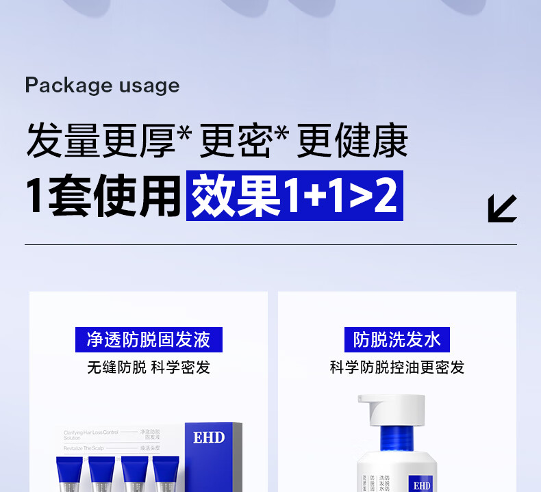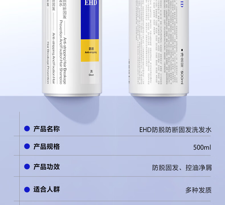 EHD防脱洗发水防断固发柔顺控油蓬松去屑男女通用500ml*2