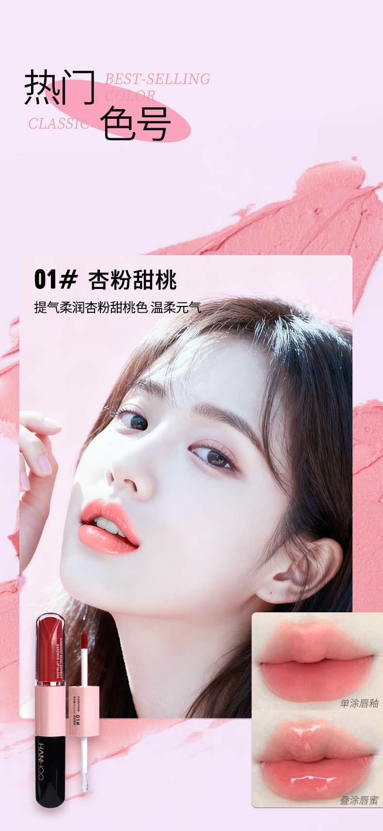 韩后(Hanhoo)唇釉水光精华保湿唇蜜不沾杯素颜显白口红丝绒镜面双效唇彩 03#纯欲山楂