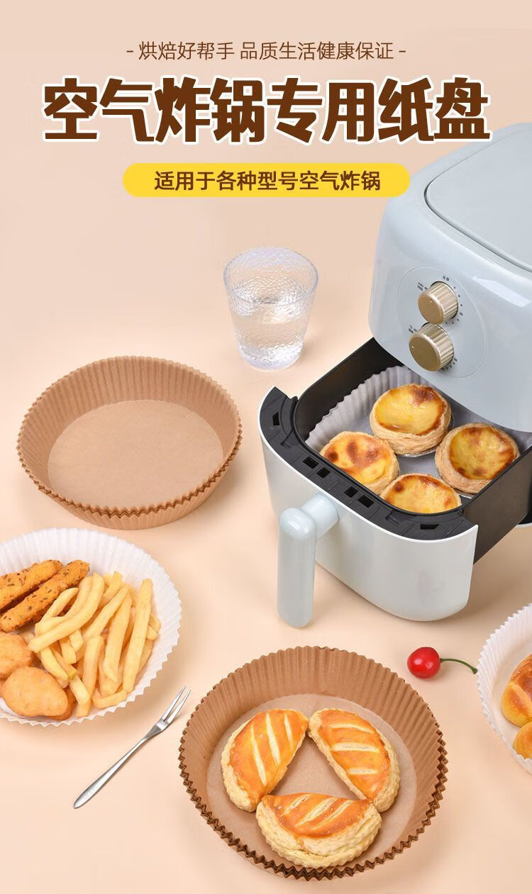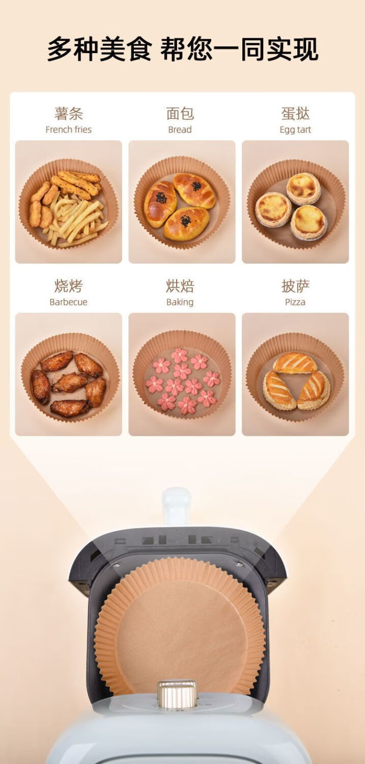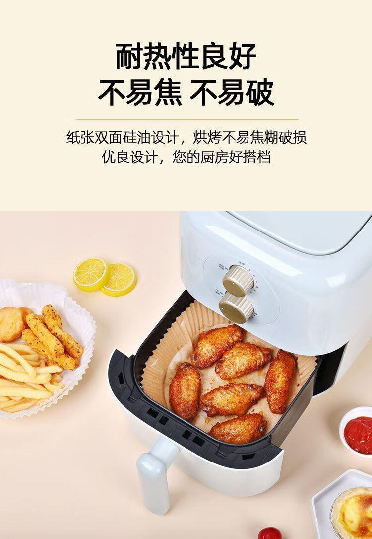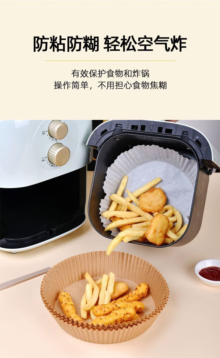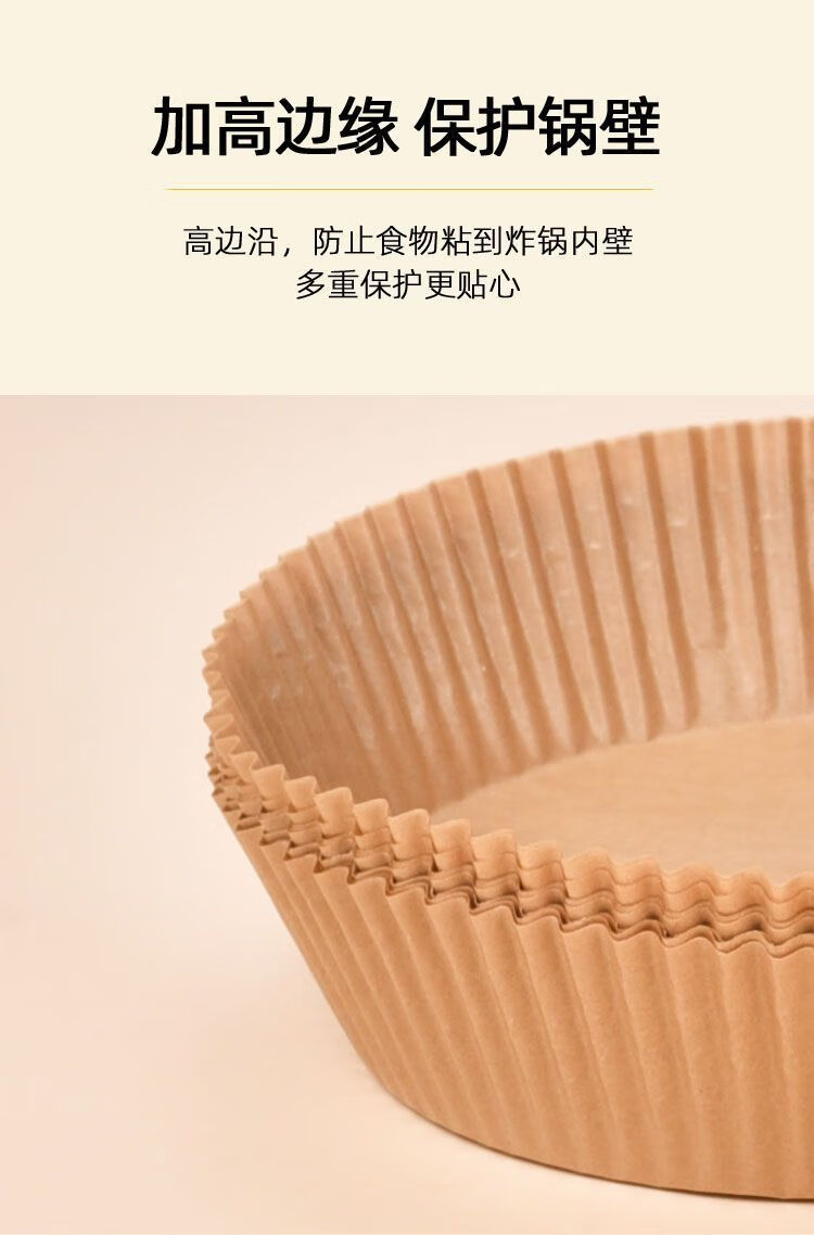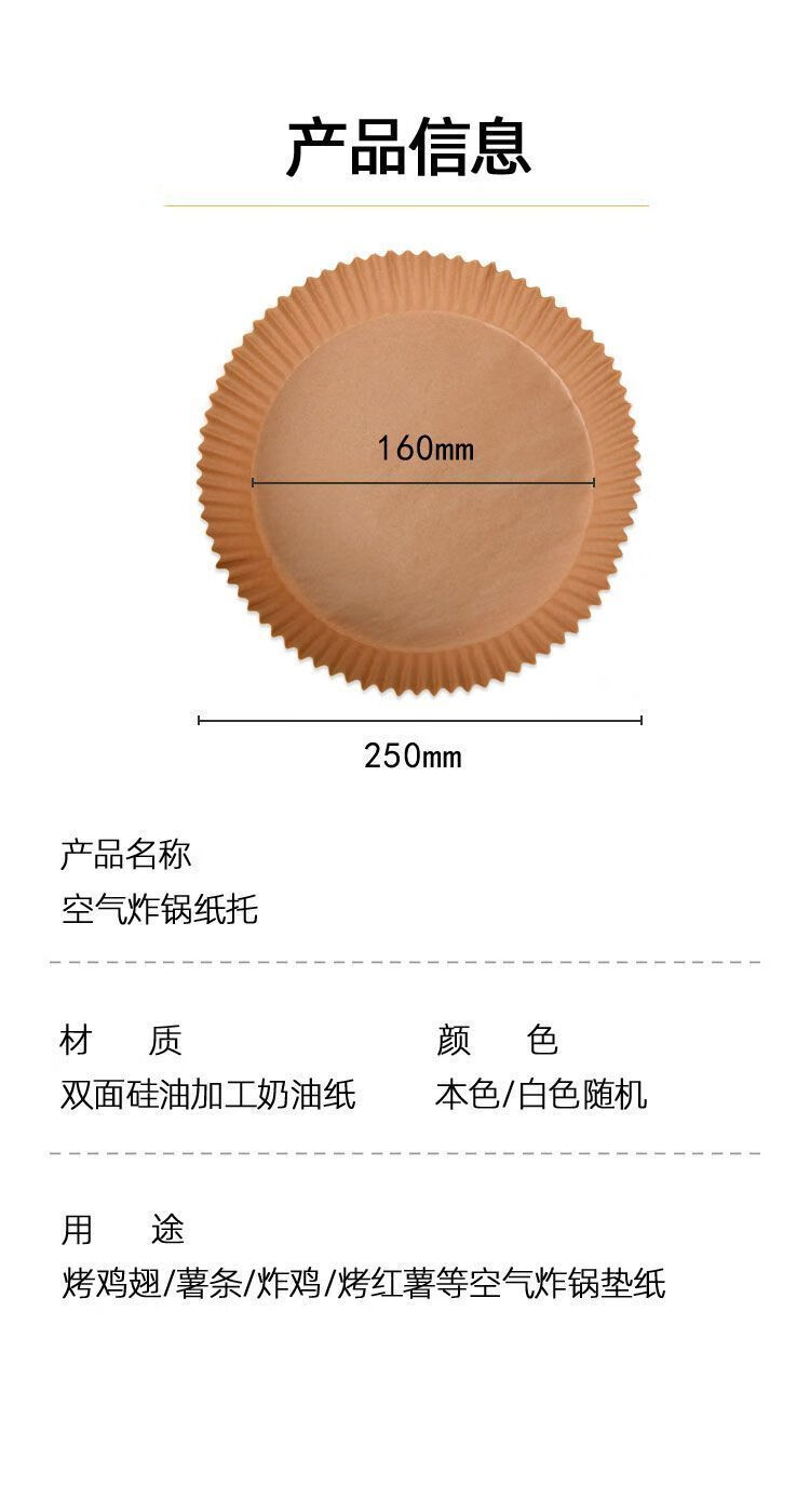 DEATKN空气炸锅家用纸盘吸油纸垫食物烤箱烘焙硅油纸垫烧烤通用型 升级加厚:【圆形原木色】纸浆 升级款:特厚*4盒装【纸浆】