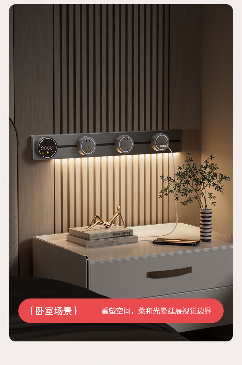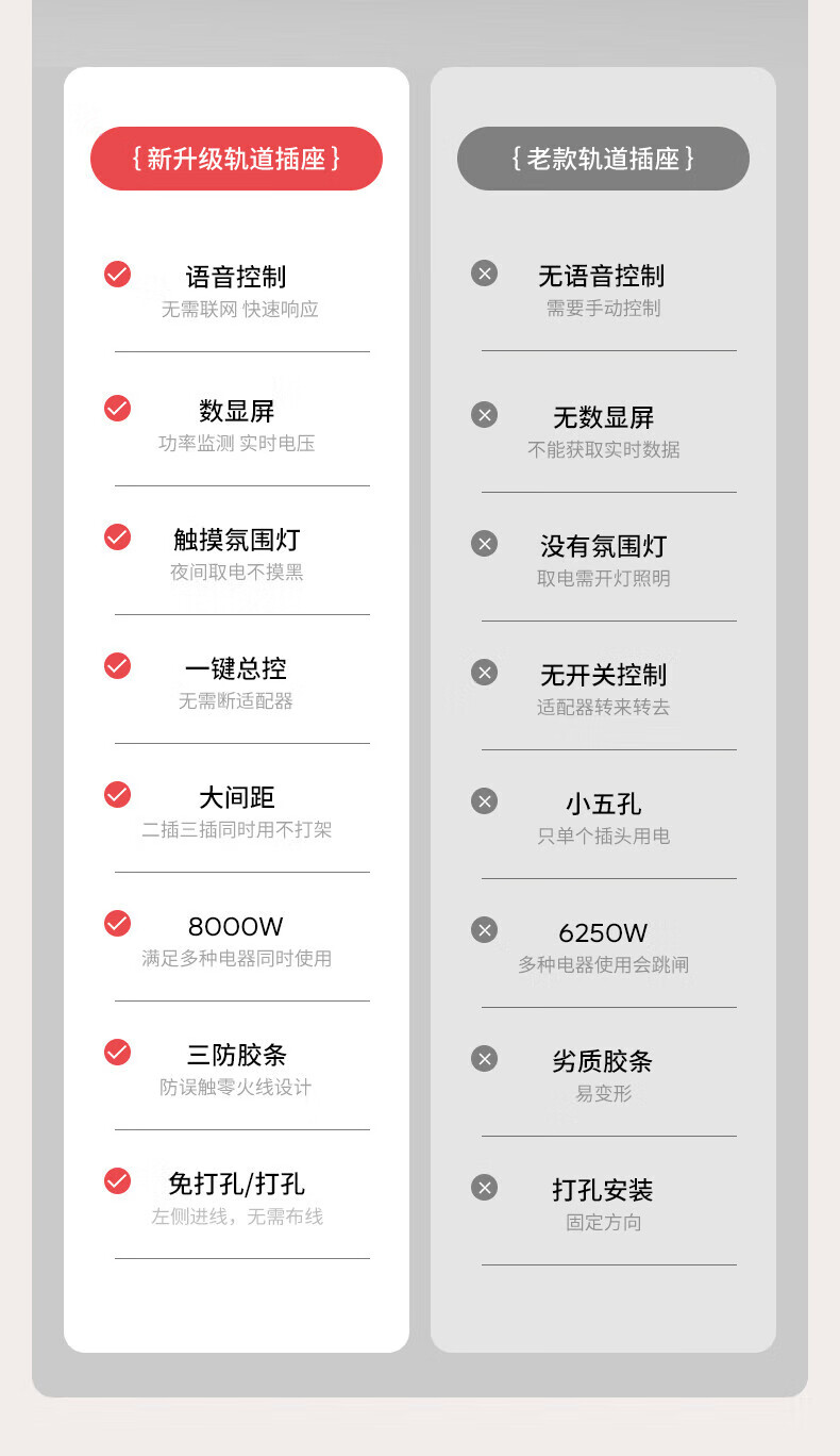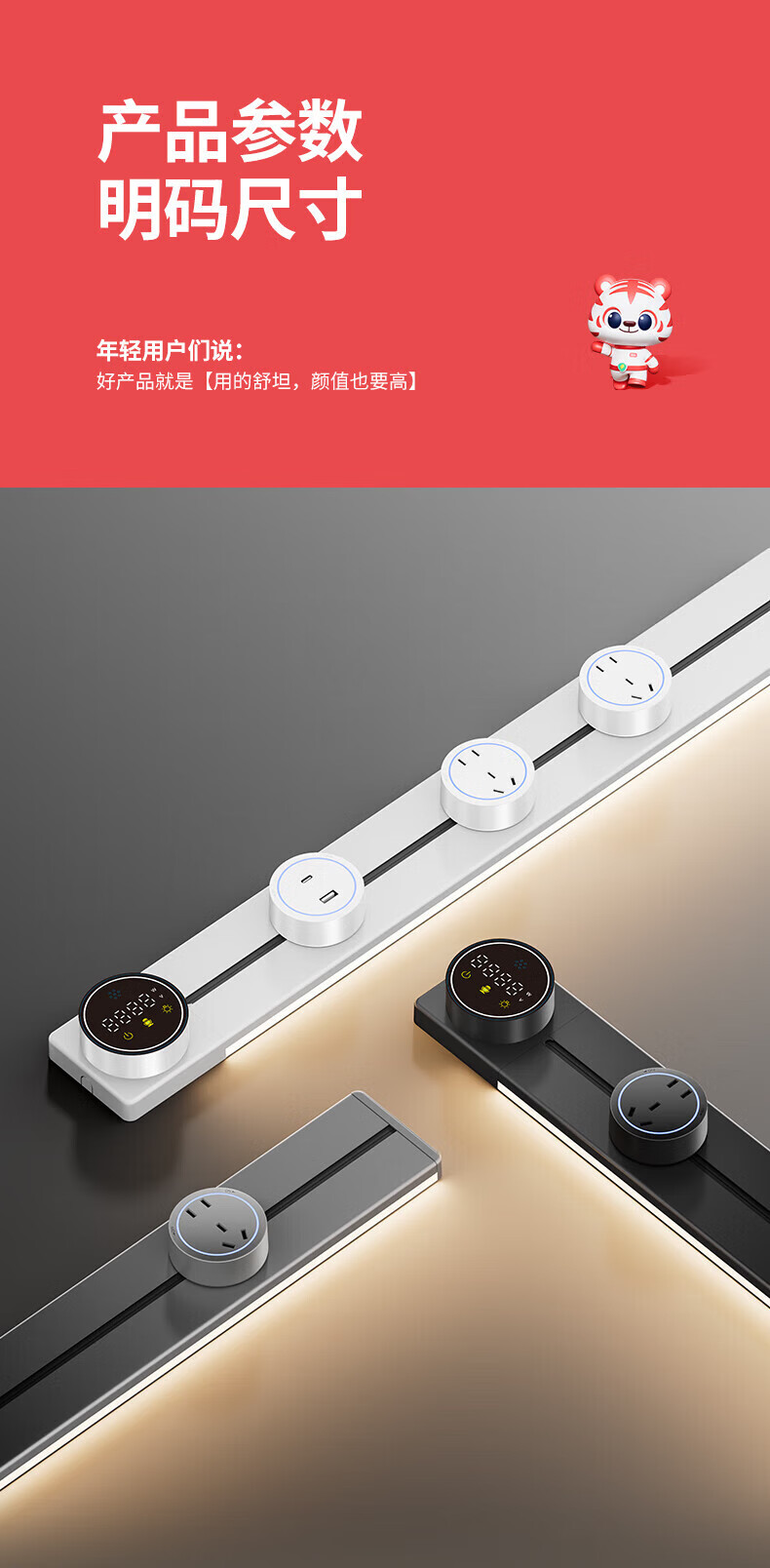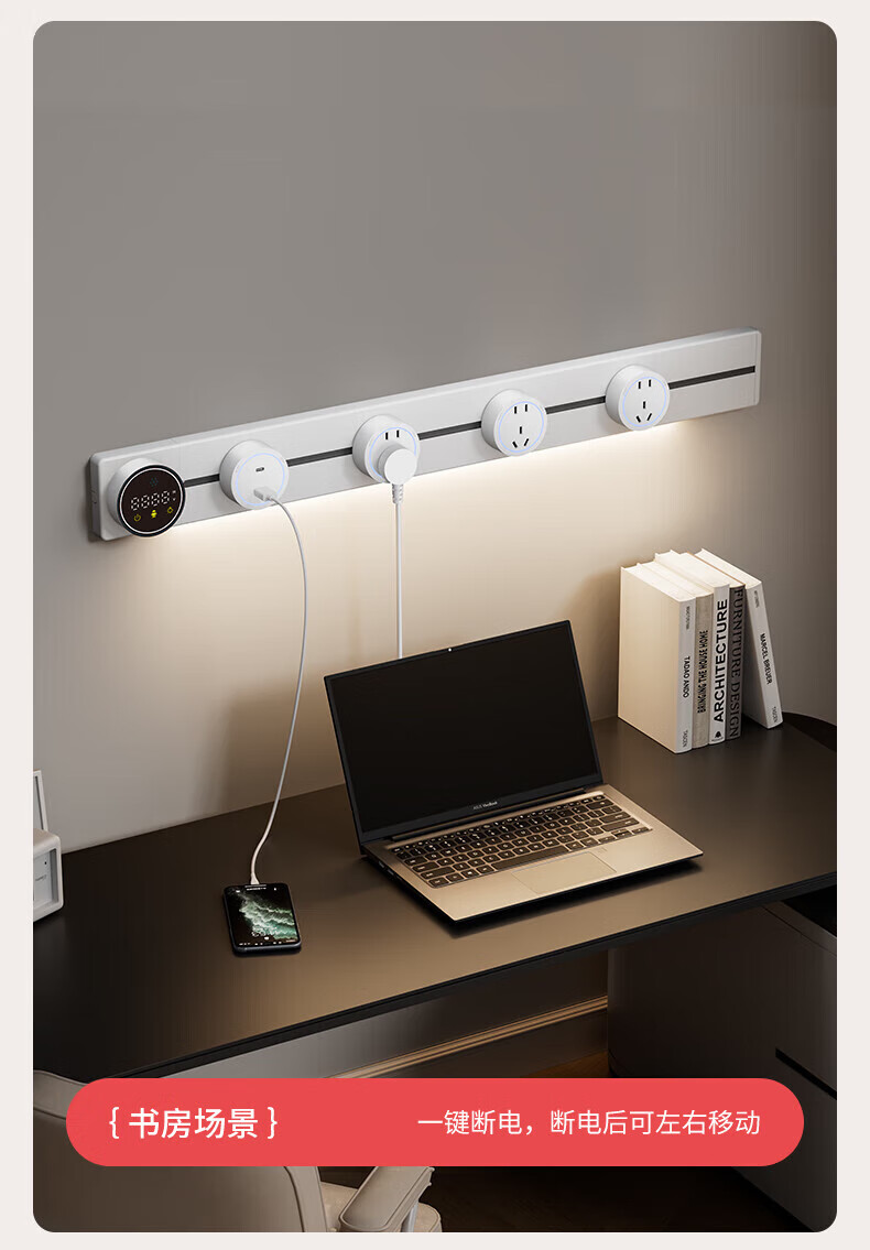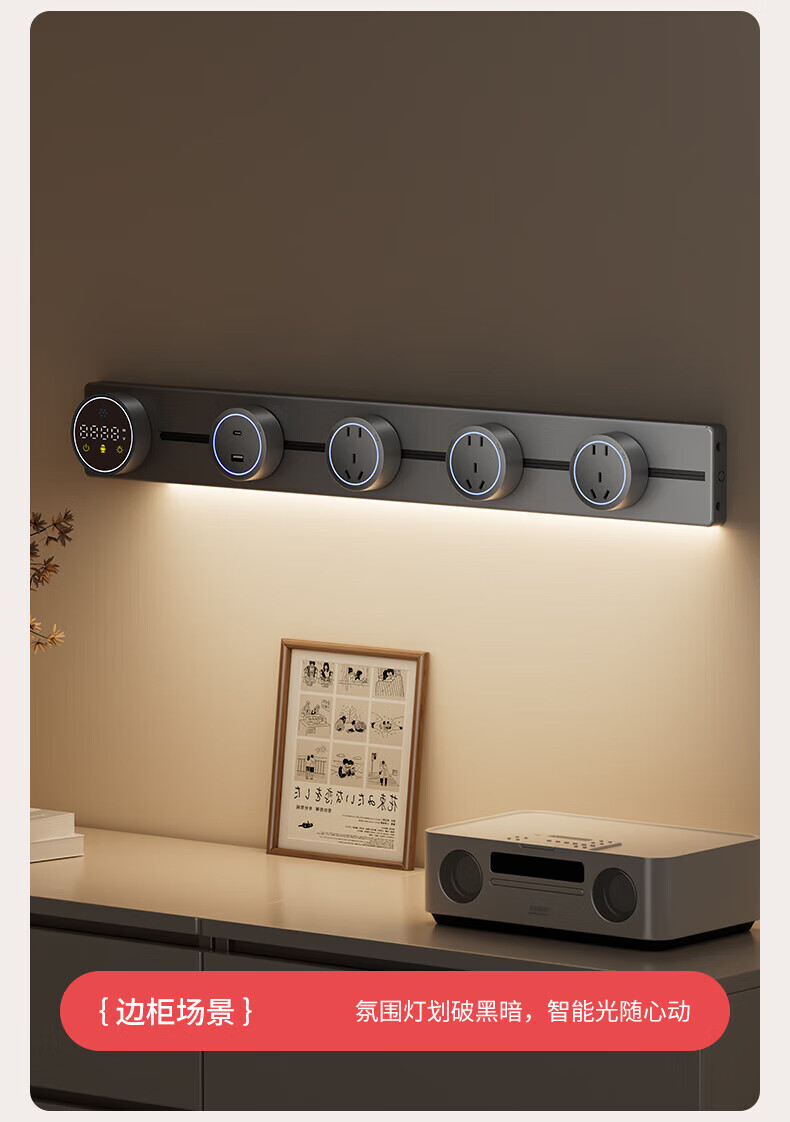 国际电工智能语音控制显示屏轨道插座家用厨房餐边柜移动带灯数显滑动插排 数显语音控制-40cm+2大五孔(带灯)