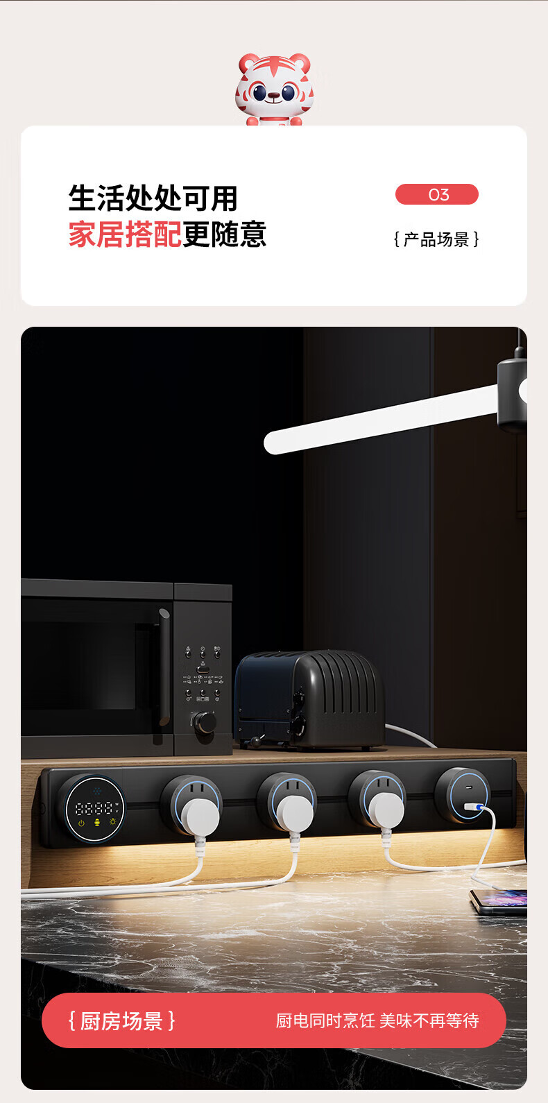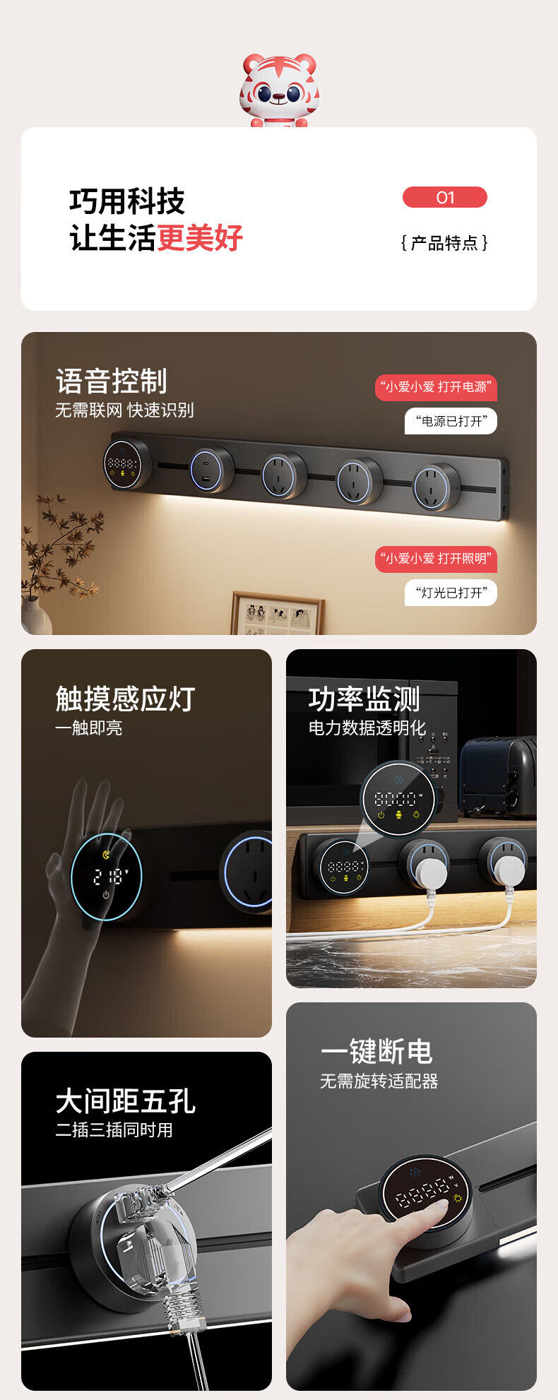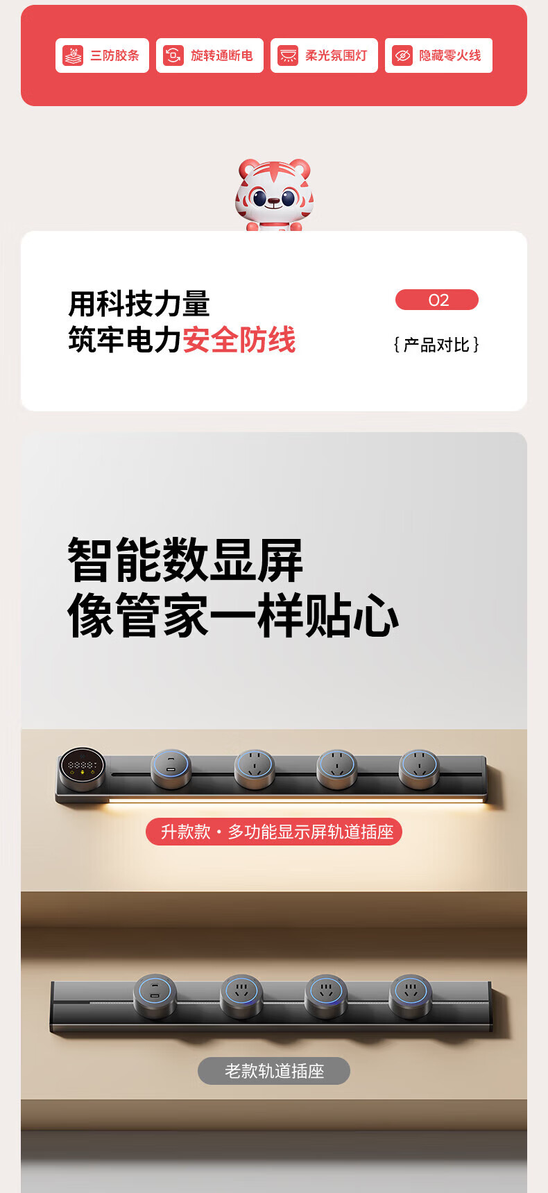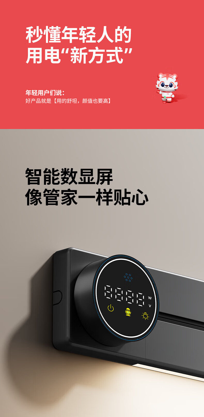 国际电工智能语音控制显示屏轨道插座家用厨房餐边柜移动带灯数显滑动插排 数显语音控制-40cm+2大五孔(带灯)