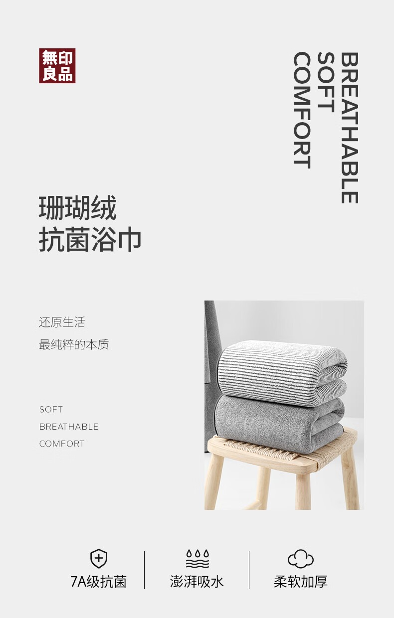 无印良品浴巾7A抗菌亲肤柔软吸水速干A类不易掉毛男士女生洗澡情侣大浴巾