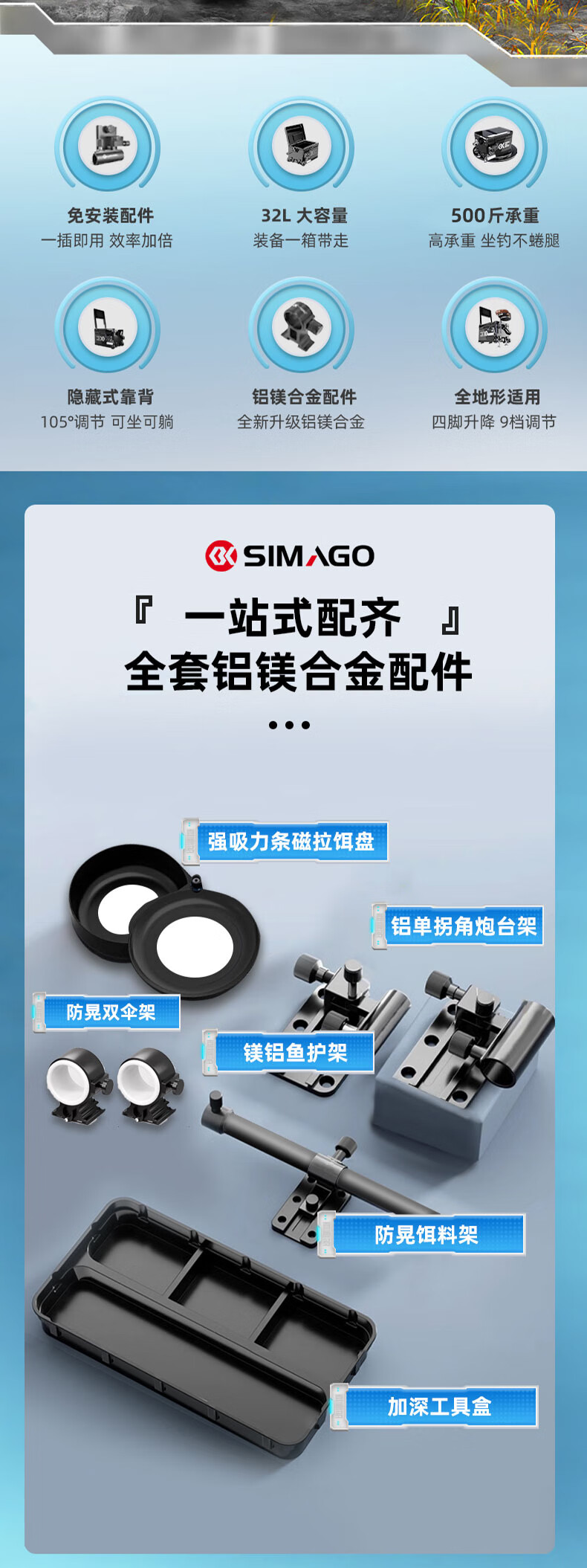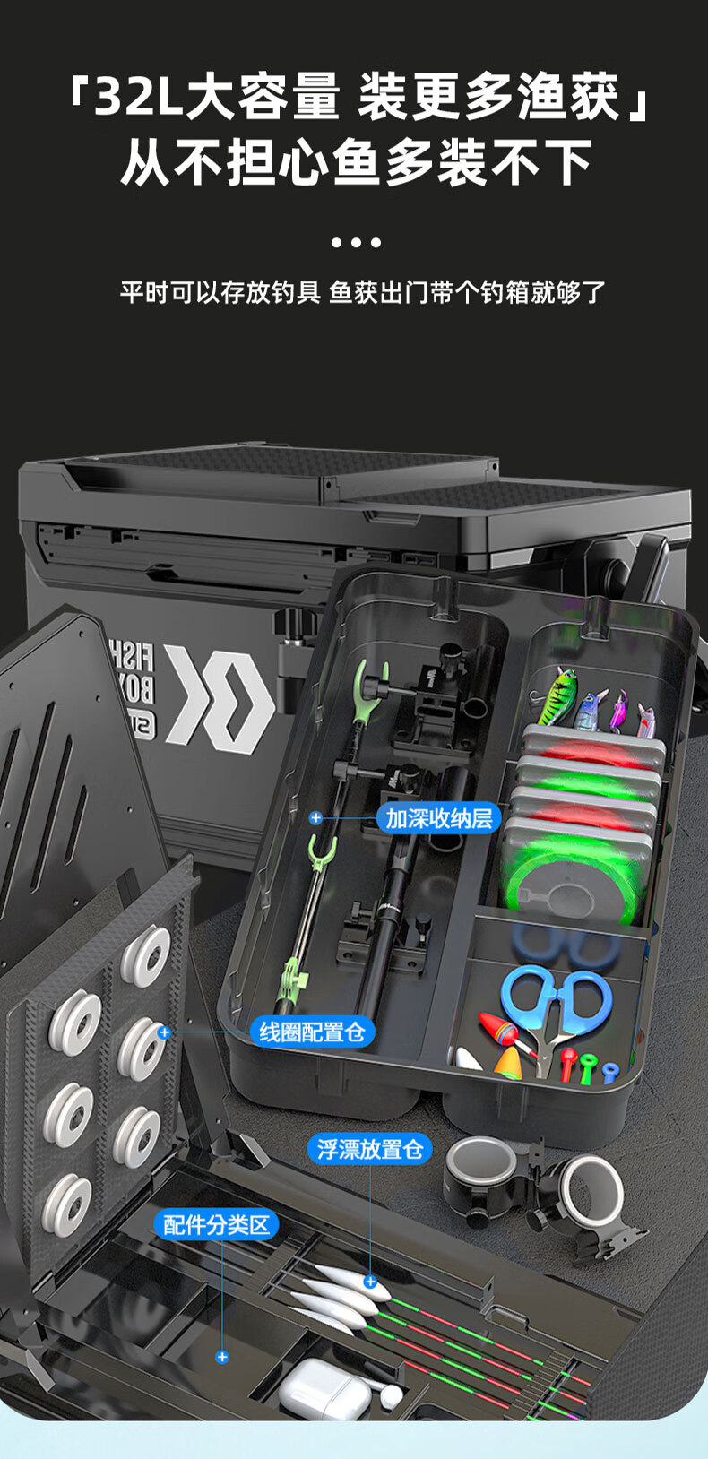 SIMAGO钓箱全套满配新款台钓箱钓鱼箱多功能超轻量化免安装 32L 满配豪华版(升级防刮花)