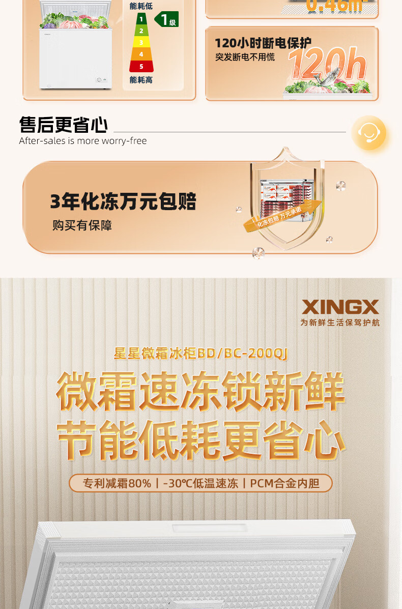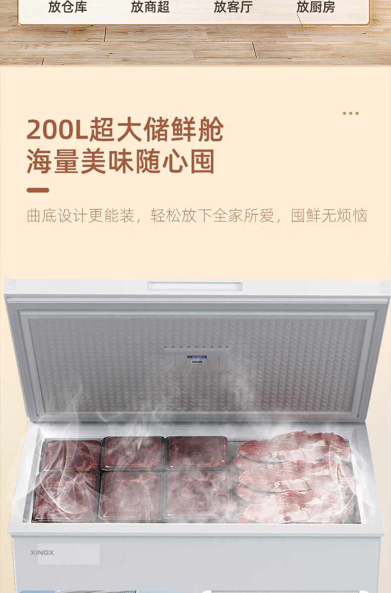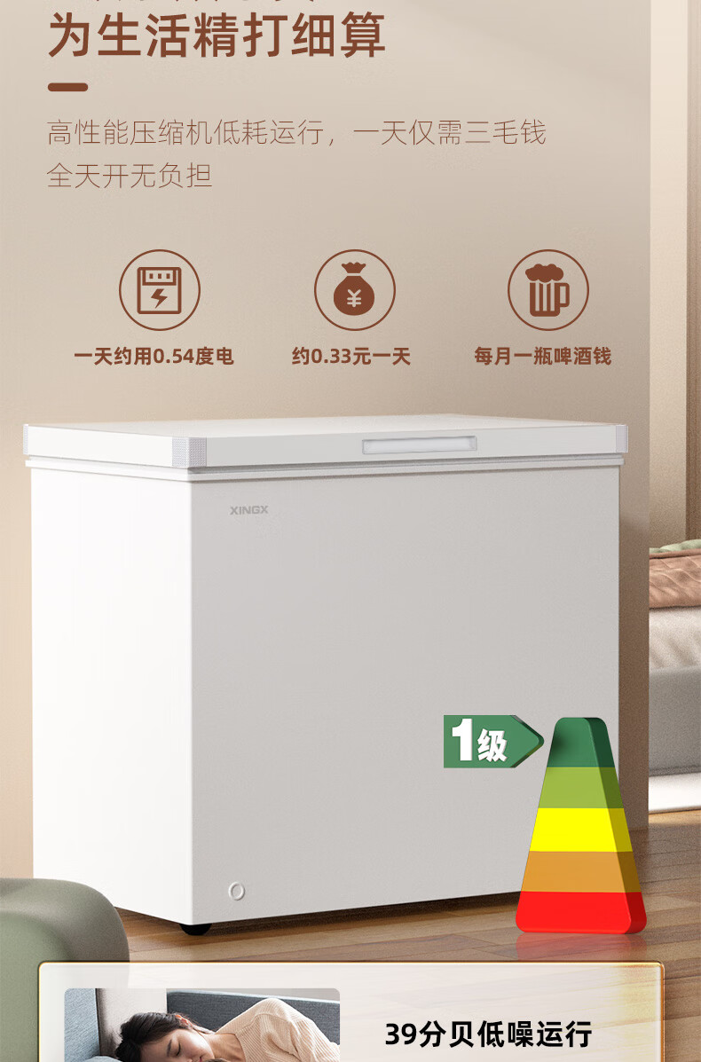 星星(XINGX)200L单温家用小型冰柜 大容量减霜保鲜净味节能一级能效冰箱冷藏冷冻两用冷柜BD/BC-200QJ国家补贴