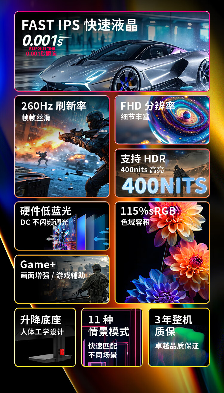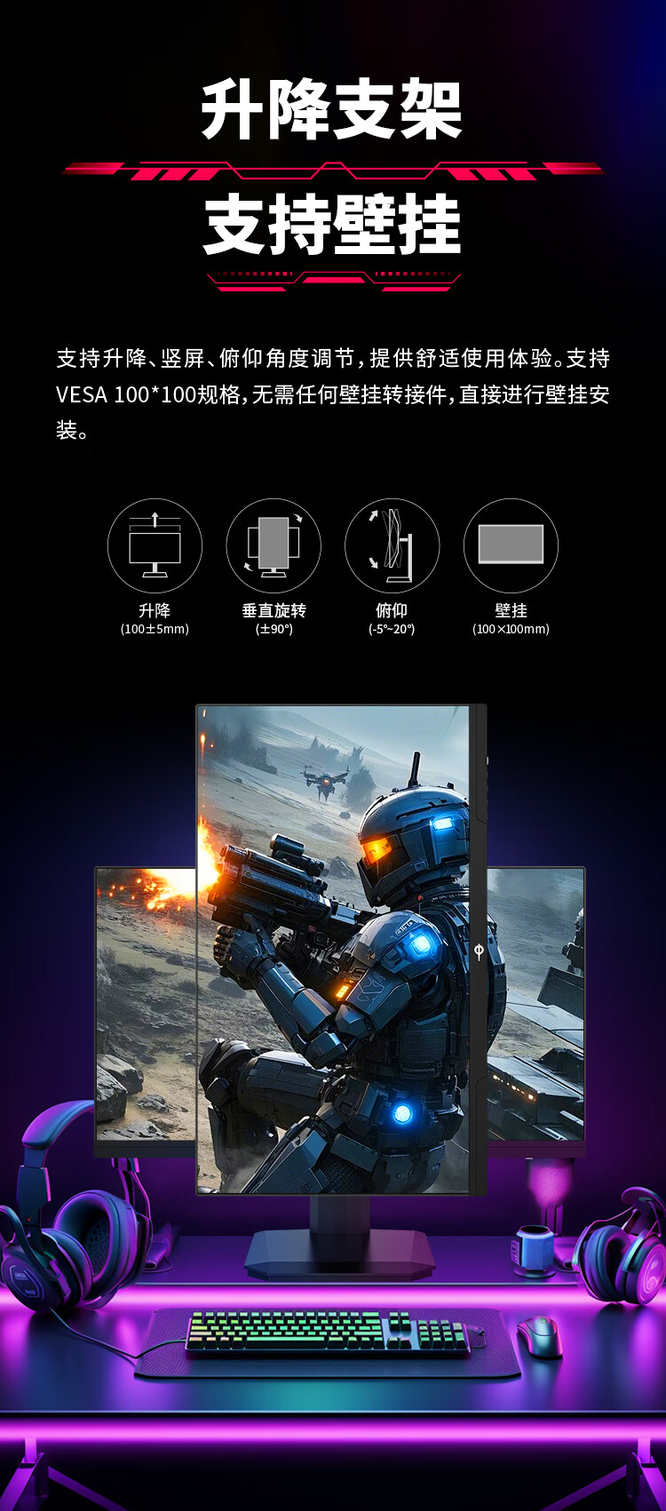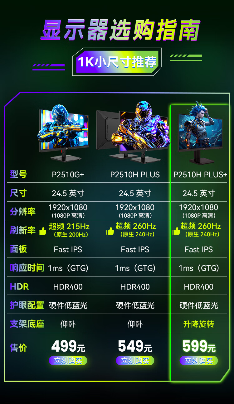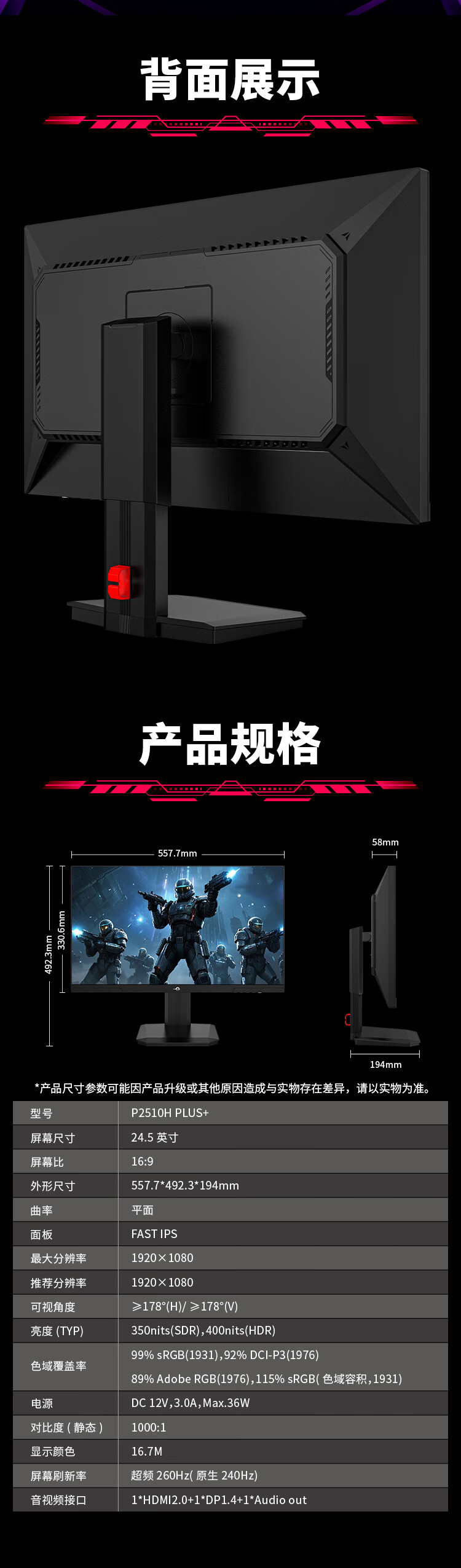 泰坦军团24.5英寸 260Hz超高刷新率 FastIPS硬件低蓝光HDR400广色域 旋转升降 PS5电竞显示器 P2510H PLUS+