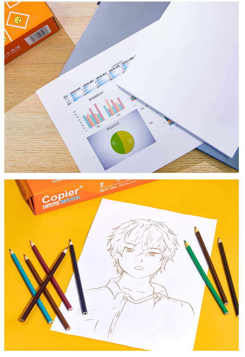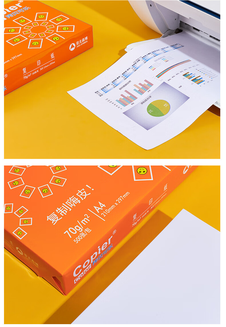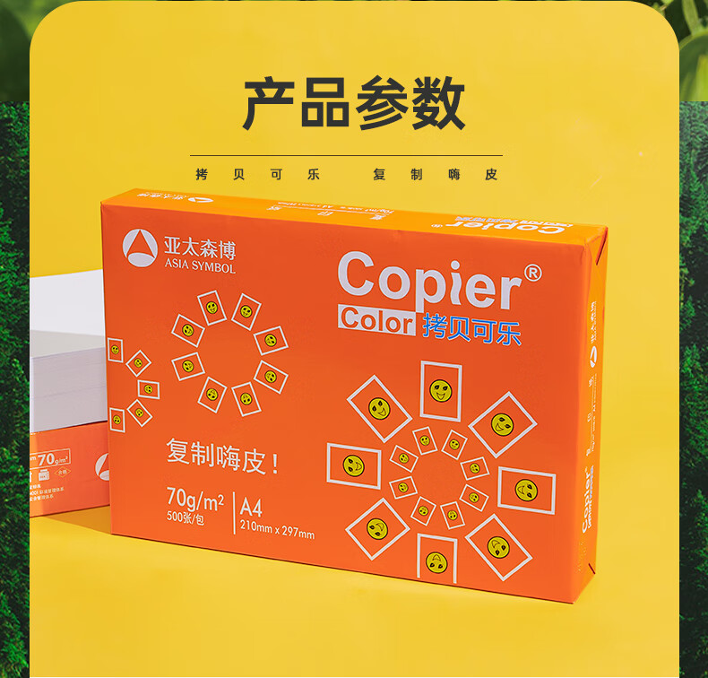 亚太森博 拷贝可乐 橙可乐 A4纸A4打印纸A4复印纸 多功能双面打印办公用纸木浆纸草稿纸画图琴谱打包邮 【橙可乐A4-80g-1包 500张】加固外盒