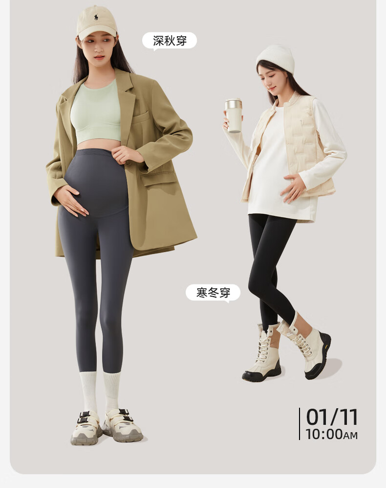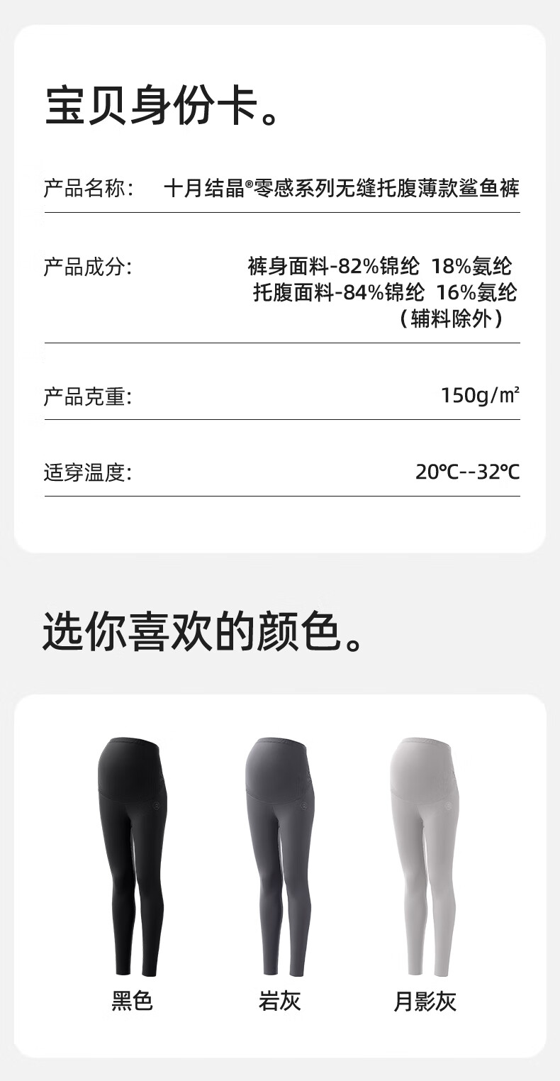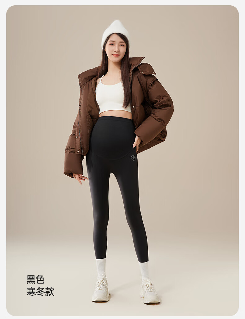 十月结晶孕妇打底裤子春秋冬款新款外穿瑜伽鲨鱼裤 【寒冬款带调节扣】黑色 XL(推荐140-170斤)