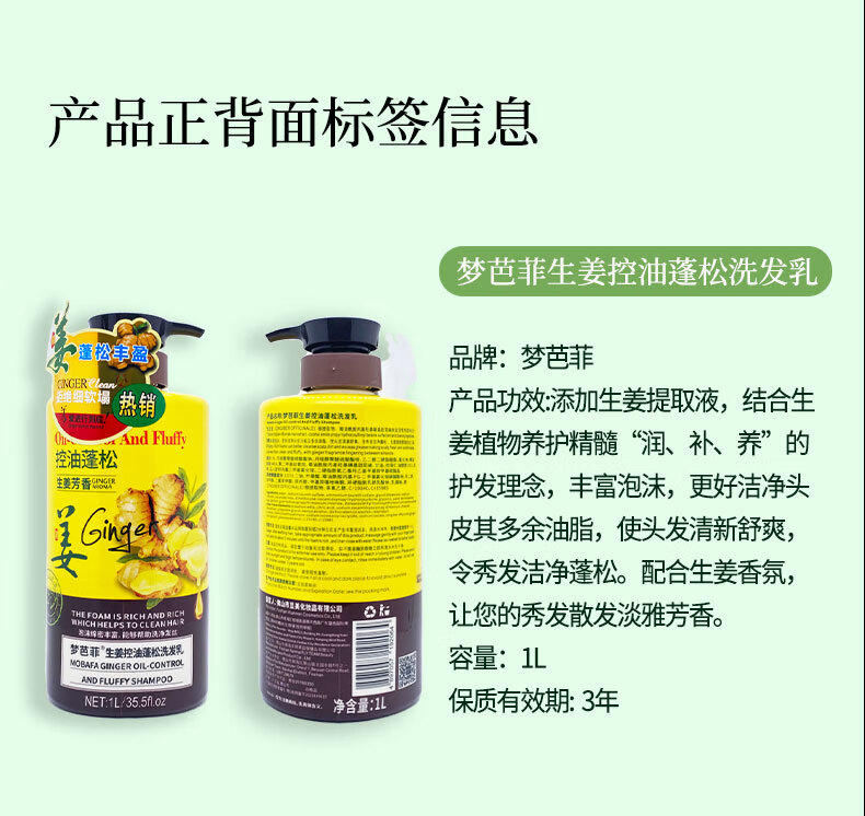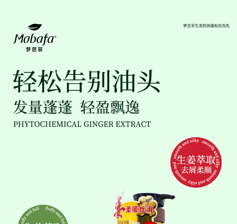 梦芭菲生姜控油蓬松 生姜萃取柔顺发质 洗发乳1000ml