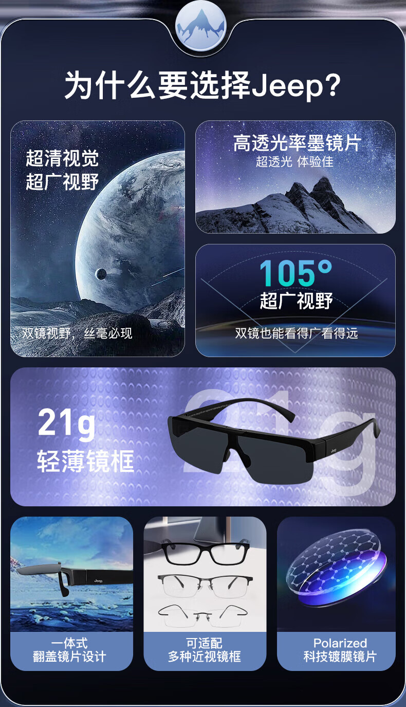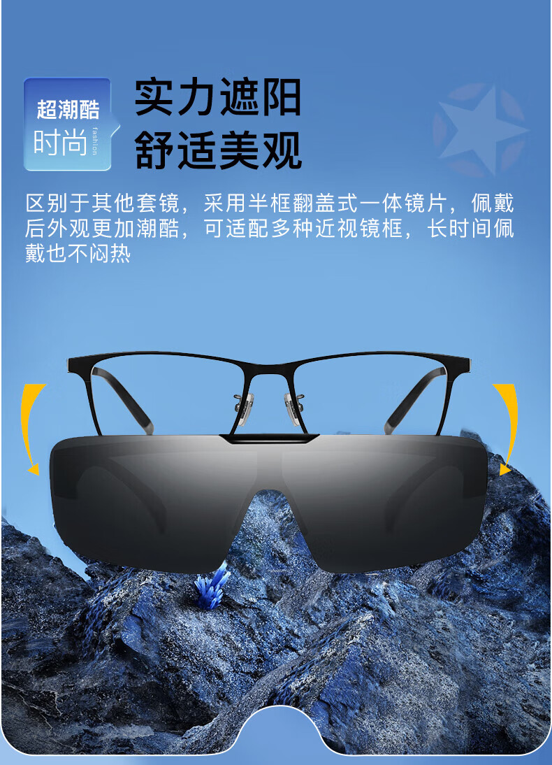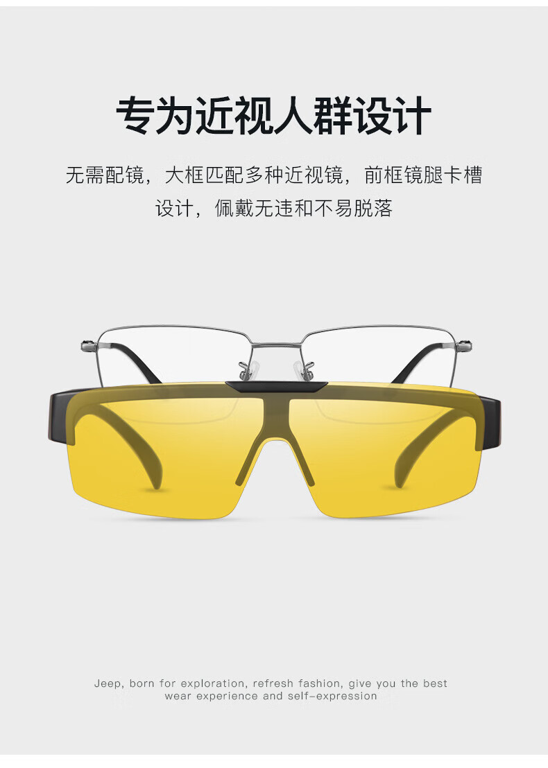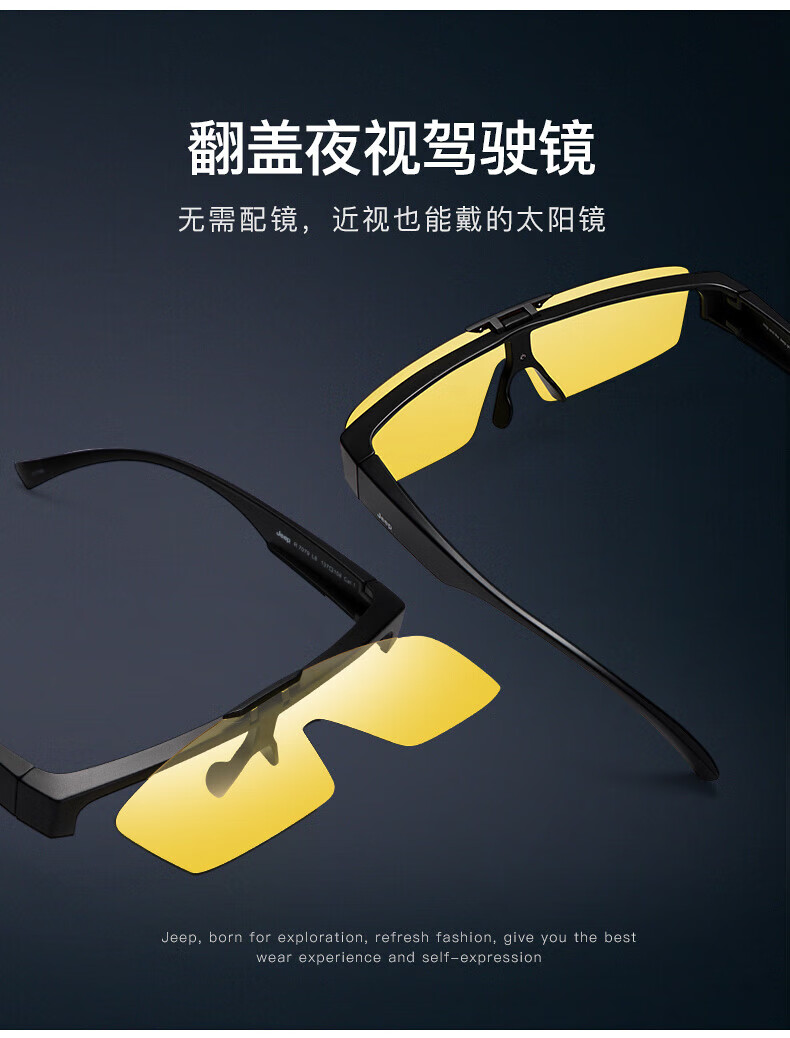 Jeep近视套镜太阳镜翻盖高清偏光墨镜夹片开车防晒钓鱼眼镜R7079