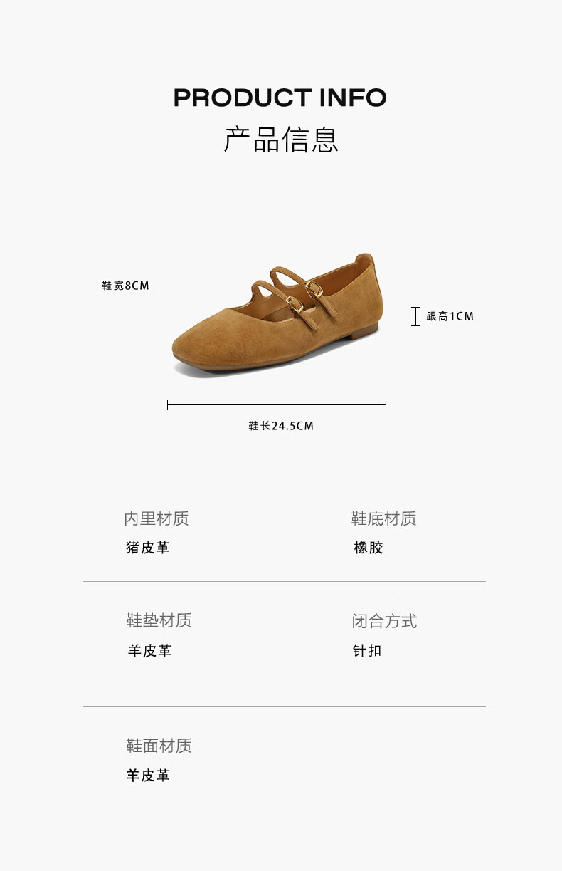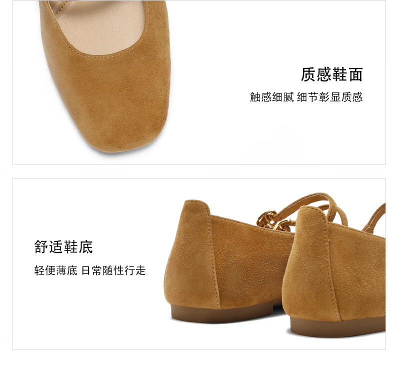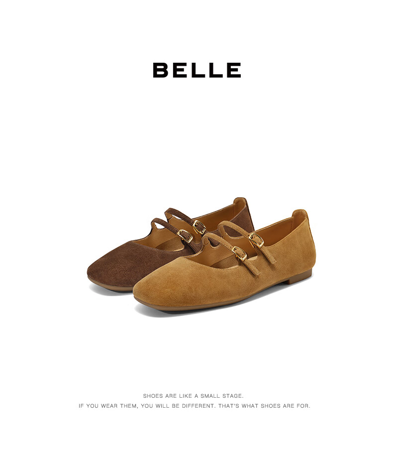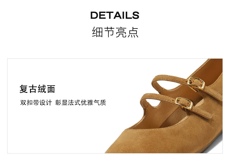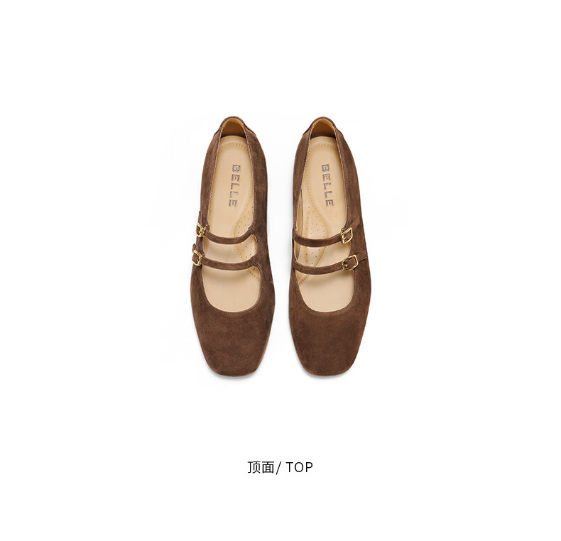 百丽(Belle)羊皮复古气质玛丽珍鞋女2025秋新商场同款浅口单鞋BFK02CQ5预售 棕色 36 (230mm)