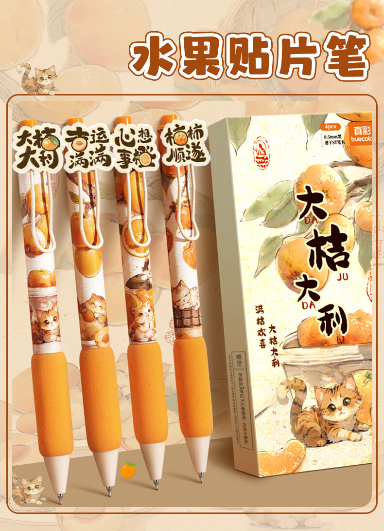 真彩0.5黑色按动中性笔高颜值速干祝福语ST头学生考试专用刷题笔顺滑水性签字笔碳素水笔4支装0316A