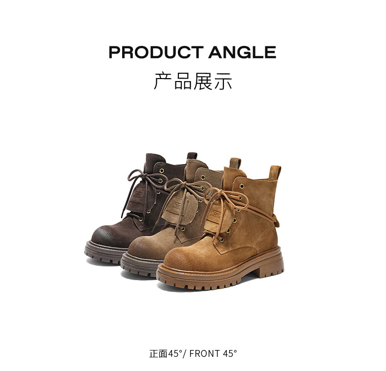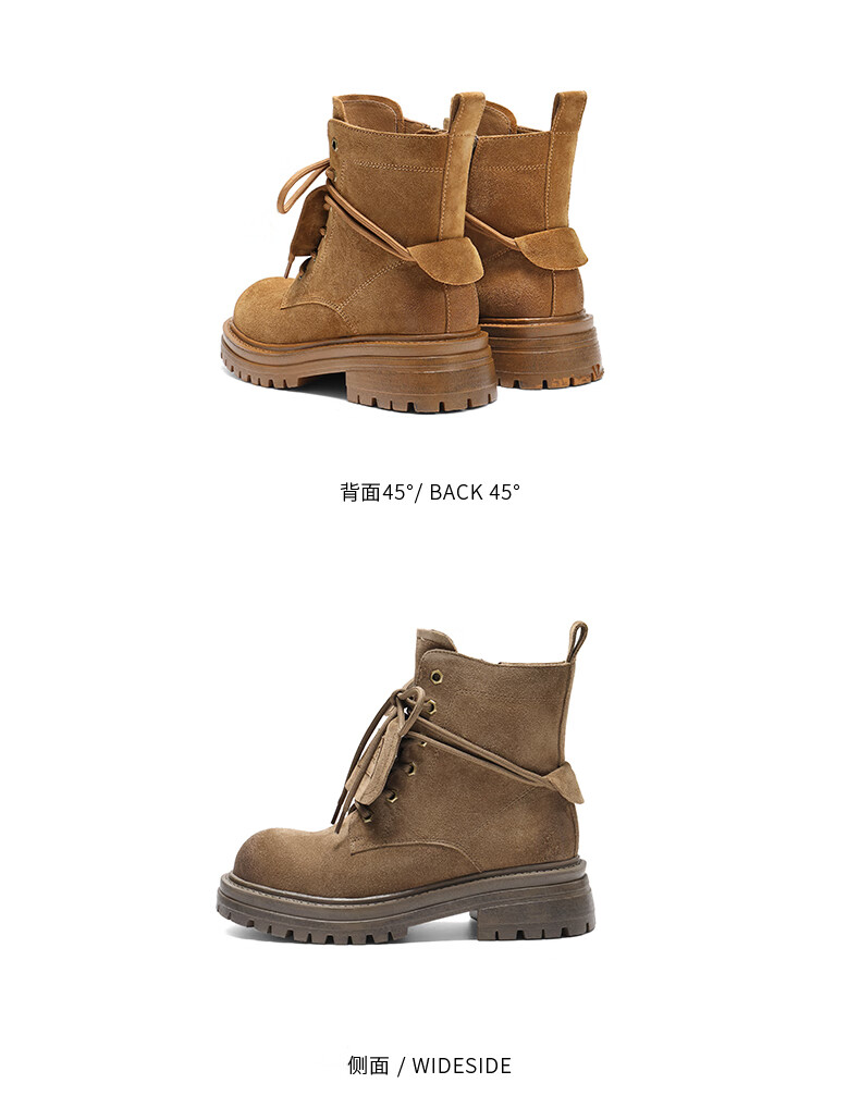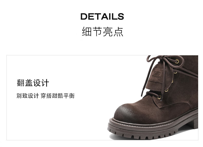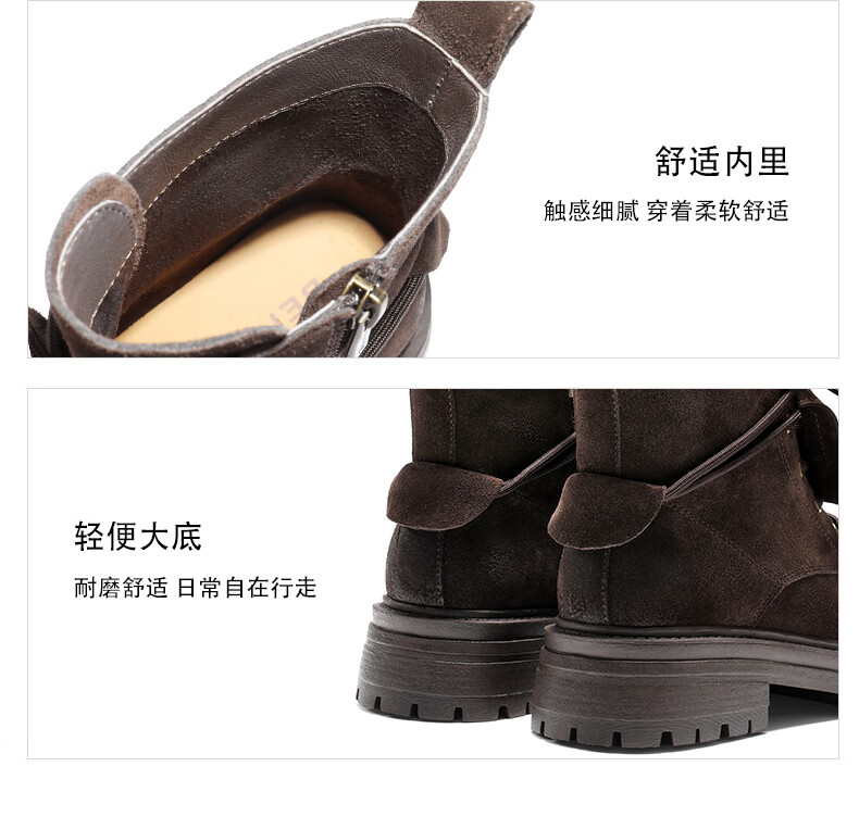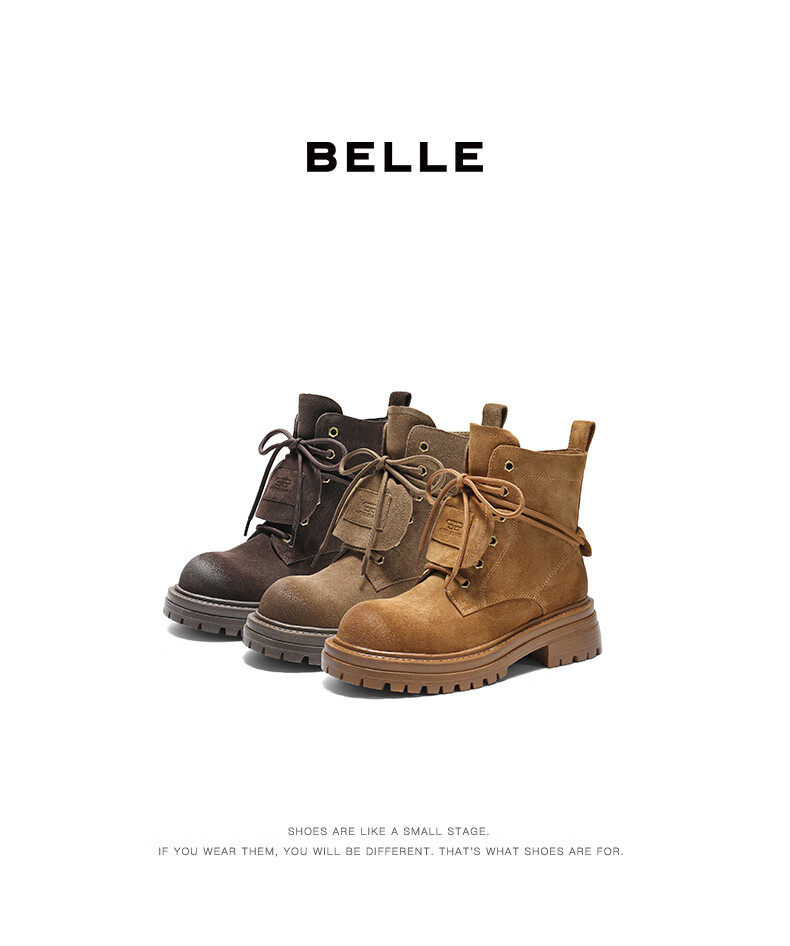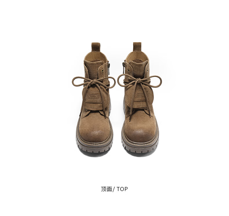 百丽(Belle)复古鞋头擦色马丁靴女2025冬新厚底增高休闲绑带短靴B2912DD5预售 卡其色 38