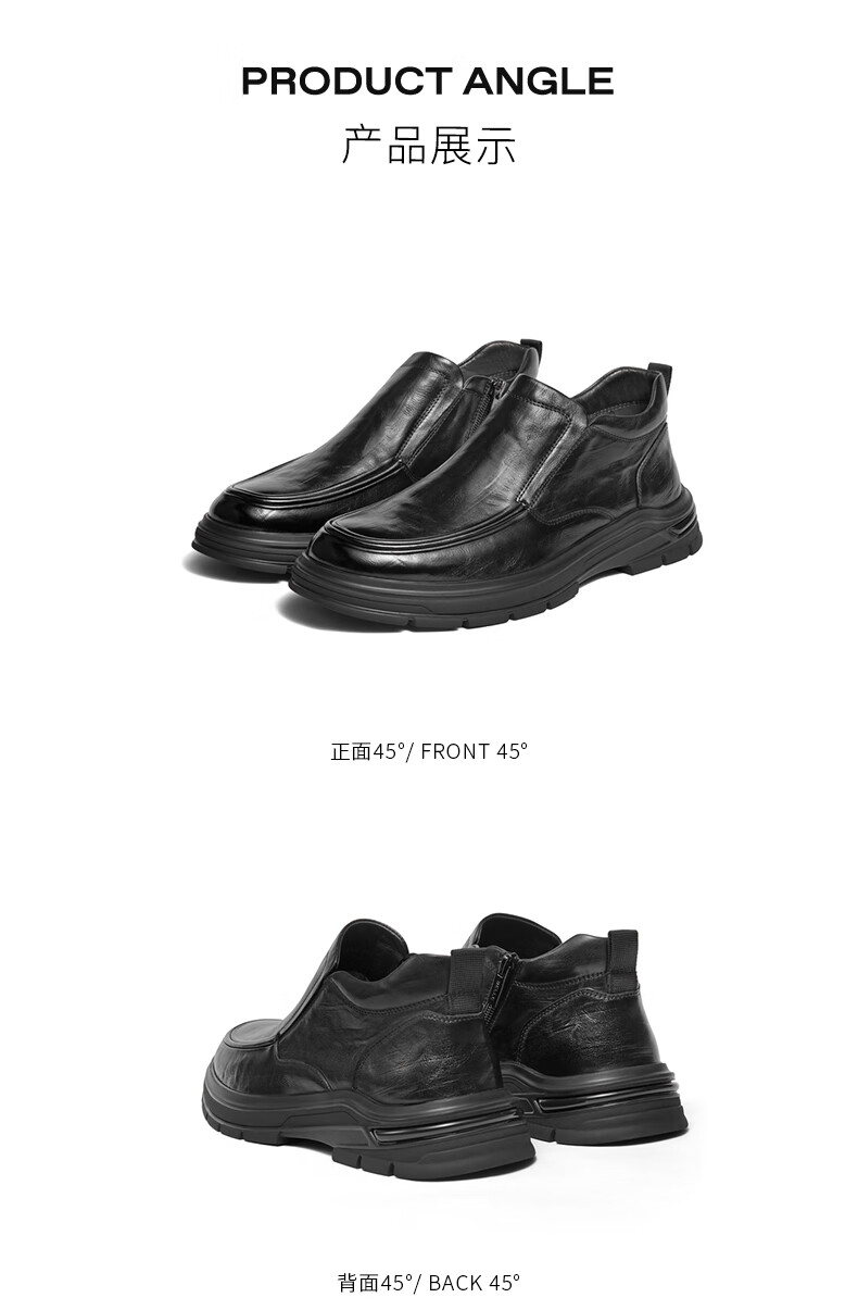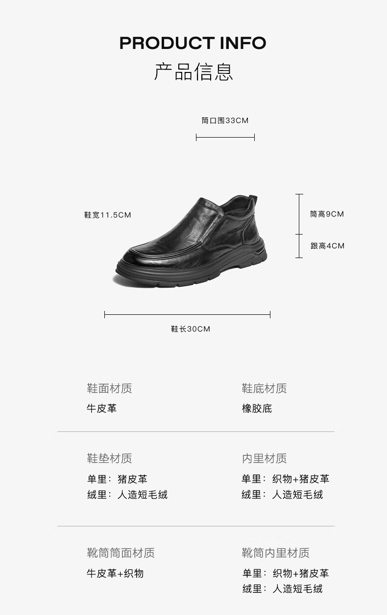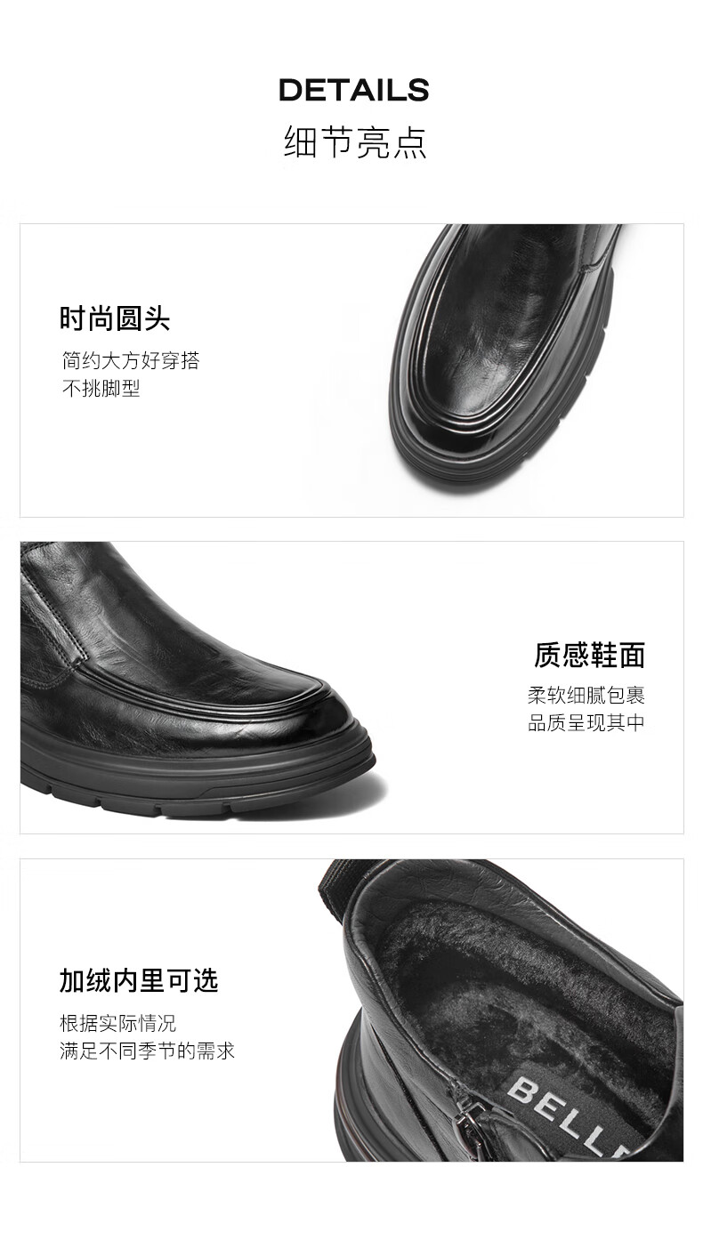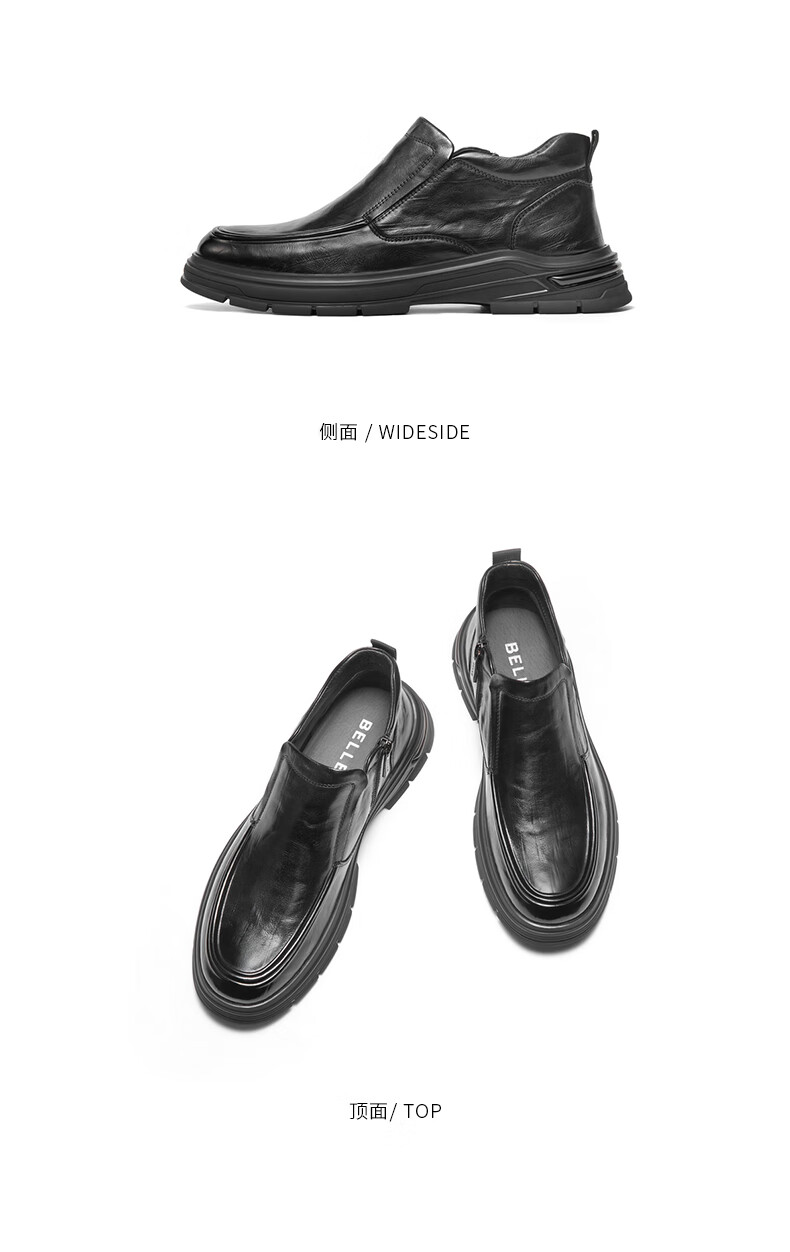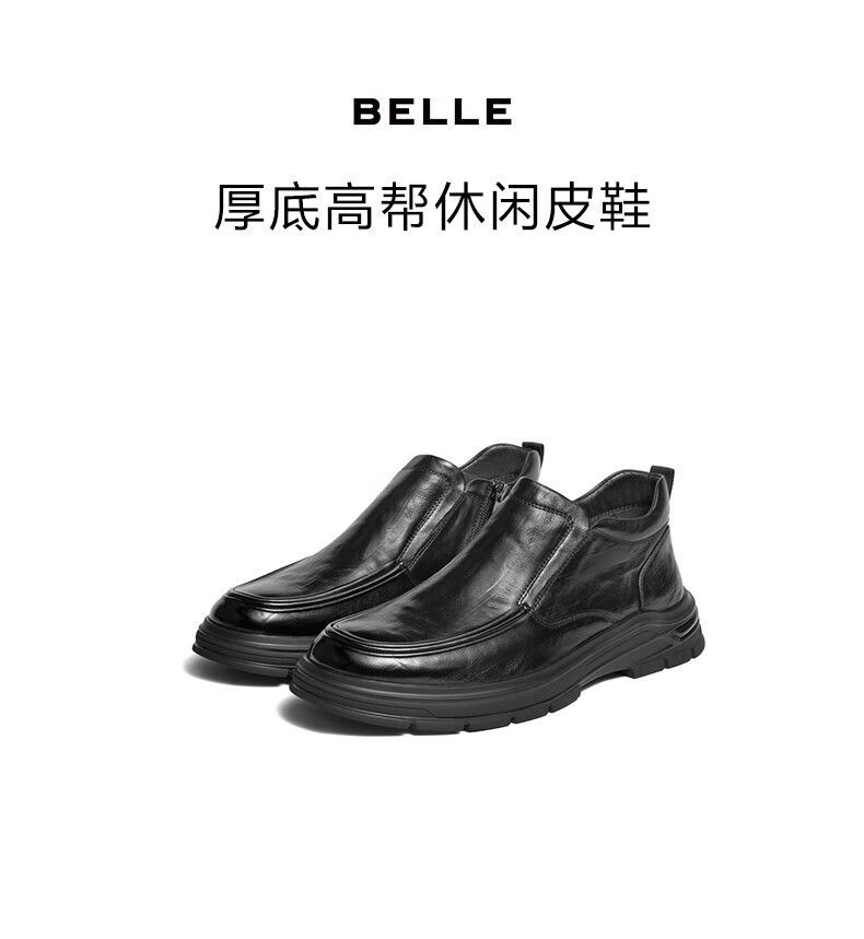百丽(Belle)高帮休闲皮鞋男2025新款冬商场同款牛皮革厚底商务靴加绒8VY02DD5 黑单里 42 (260mm)